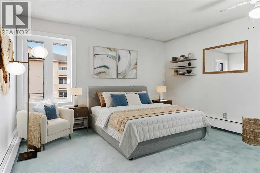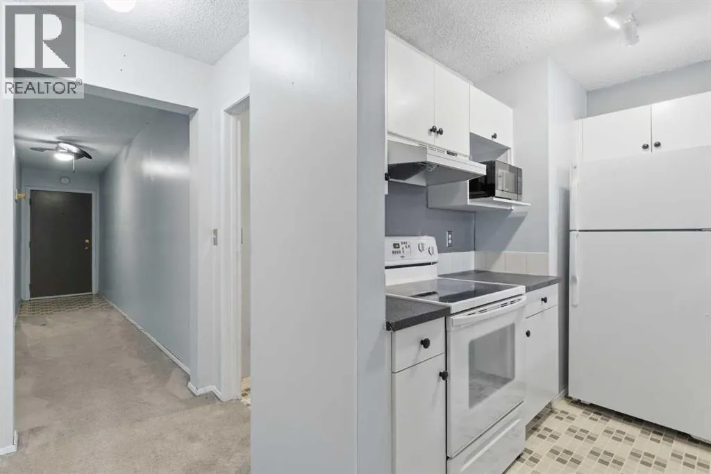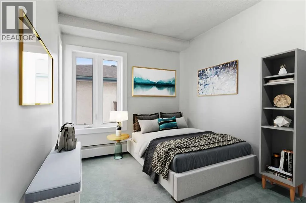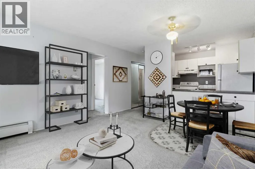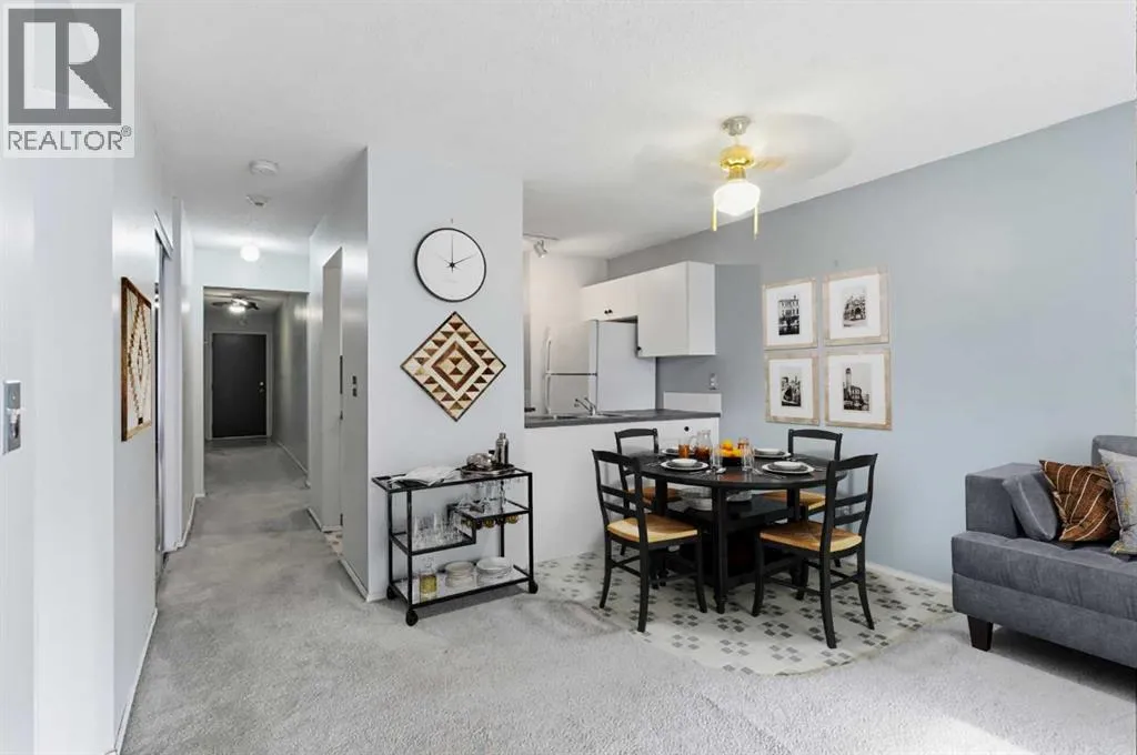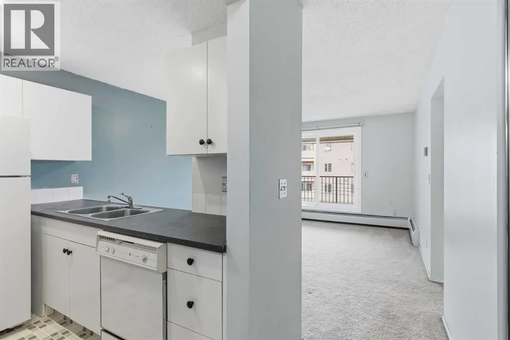 This prime Bridgeland location is blocks from the Bow River pathways, directly by Edmonton Trail, for easy access to Memorial, Deerfoot, the Downtown Core and East Village, AND with both assigned underground and loads of street parking available, enjoys all the shopping, dining and activities anyone could want or need! With Walk and Bike scores between 96 and 99, Transit nearby, and being the TOP floor of a Low-Rise 47 Unit apartment, life at Waterford is beautiful. This 723.32 square foot open concept apartment includes virtually staged photos for the listing, iGuide 3D tour, detailed floor plans, and offers its new owner thick plushy carpet in great shape, and easy-to-care for lino that can be updated with vinyl easily if desired. The plan is flexibly open, bright, includes TWO Bedrooms (the Primary is 12.25' wide, easily holds a king!) with large windows, and is listed for an incredible value price - the affordability cannot be beaten, and this home will not last long! 408 647 1 Avenue NE faces East, with a 12.75' x 6' Balcony for sunrises and morning coffees, plus comfortable temperatures inside while remaining naturally light. The large Storage and Laundry Room can double as a combination Pantry to the contemporary-white Kitchen, complete with a nice eating bar overlooking the Dining and Living Room combination. There is a washing machine included in the appliances, and carpets have been professionally cleaned with enviro-safe products prior to listing. Documents are available in supplements for agents, or upon request for previewing. The very secure building has fob access for BOTH security entry doors, a large welcoming Entry and lots of seating, additional fob security required to access the Parkade level, interior mail and package delivery, 1 hour parking for visitors, and street parking behind the building - so many conveniences! Management is responsive, and the building receives regular attention and maintenance. Looking forward to a quick purchase befo re the holiday enjoyments! (id:27476)