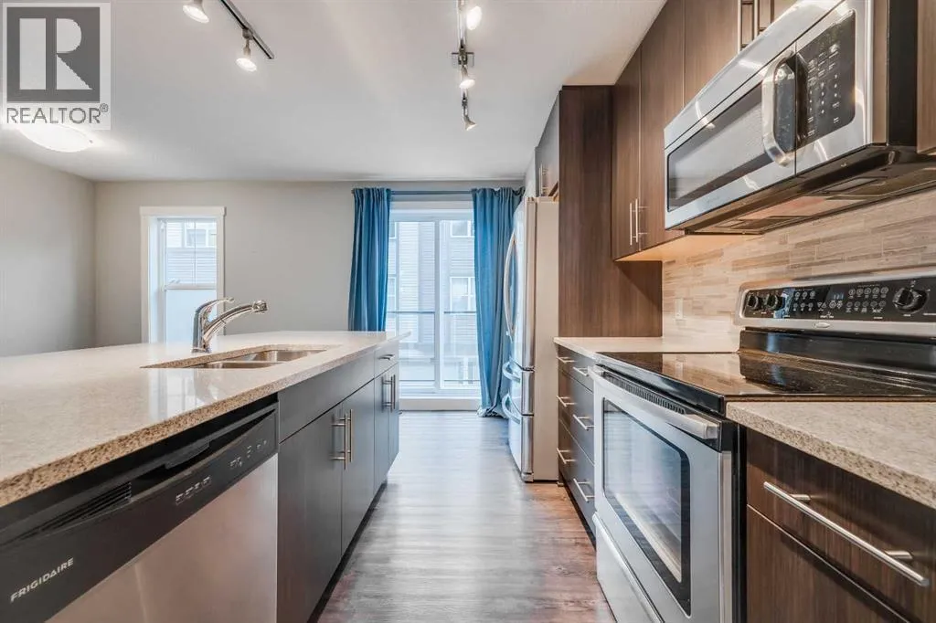 Meticulously maintained and move-in ready, this townhome offers unbeatable walkability to nearby shops, restaurants, parks, and scenic walking trails. The main level features an open-concept layout with a spacious living and dining area, a stylish 2-piece powder room, and a well-appointed kitchen complete with a large quartz island, quality cabinetry, stainless steel appliances, and access to an upgraded deckâperfect for everyday living and entertaining. Upstairs, you'll find a bright flex space ideal for a home office or reading nook, along with two generous primary bedrooms, each offering walk-in closets and private ensuites featuring quartz countertops and tub/shower combos. The lower level includes a laundry area, storage space, and direct access to the double attached garage. With plenty of extra parking right out front, low-maintenance living. McKenzie Towne offers charming architecture, parks, schools, and a vibrant community with many amenities and access to nature. Schedule your private showing today! (id:27476)