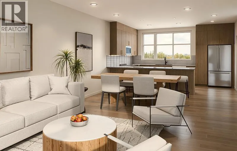 Discover Kamira, a townhome community that truly feels like home. Tucked away from the busy corridor in Livingston, Kamira offers a peaceful, prime setting backing onto scenic walkways, a municipal reserve, and a charming playground just steps from your door. With upper-end single-family homes and a park behind, plus a planned school across the street, Kamira provides the privacy and serenity of a residential enclave, not the density of a typical townhome development.This thoughtfully designed JUNIPER unit offers 1579 sq.ft. (RMS) of well-planned living space, featuring 3 bedrooms with an option to add a 4th bedroom on the entry level, 2.5 bathrooms, a double attached side by side garage, and a modern open concept kitchen, dining, and living area that is perfect for family living and entertaining. Enjoy a private patio offering a peaceful setting and plenty of room to relax outdoors. Every home is thoughtfully designed side-by-side, so you enjoy the privacy, peace, and independence from your neighbours. Durable, low-maintenance Hardie Board exteriors ensure your home and community remain beautiful for years to come, regardless of Albertaâs weather.Kamira also makes everyday life effortless: every home includes double or tandem attached garages, true private yards for outdoor play or relaxation (Cedar units), and thoughtfully designed balconies/patio space with solid privacy walls, not just glass panels, so you can enjoy your outdoor space in comfort and seclusion.The interiors feature sophisticated finishes, including quartz countertops, a designer tile backsplash, luxury hard surface flooring, full-height custom cabinetry (to bulk head), stainless steel appliances, and in-suite laundry. Kamira offers three townhome designs (Cedar, Juniper, Sage) ranging from 3 to 4 bedrooms (with options to do a dual master suite) and from 1,199 sq.ft. to 1,925 sq.ft. (RMS). There are four designer selection packages to choose from and a variety of upgrades available, inclu ding air conditioning and floor plan modifications to suit your needs. Built by Kalamoir Homes, one of Calgaryâs most trusted townhome developers, known for their commitment to quality, craftsmanship, and attention to detail. Contact your agent today to book a private tour during our sales centre hours and learn more about available floor plans, lots, standard finishing packages, and upgrade options.This unit is not yet built. Construction is tentatively scheduled to begin in winter 2026, with completion and possession anticipated in summer to late fall 2026. Final legal plans, lot sizes, and property taxes are yet to be confirmed. Square footage is based on architectural plans. Pricing includes GST. Photos are artist renderings of the community and interiors. Please note that RMS measurements are larger than the architectural/floor plan marketing measurements. (id:27476)