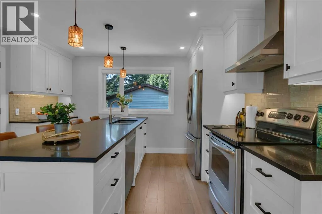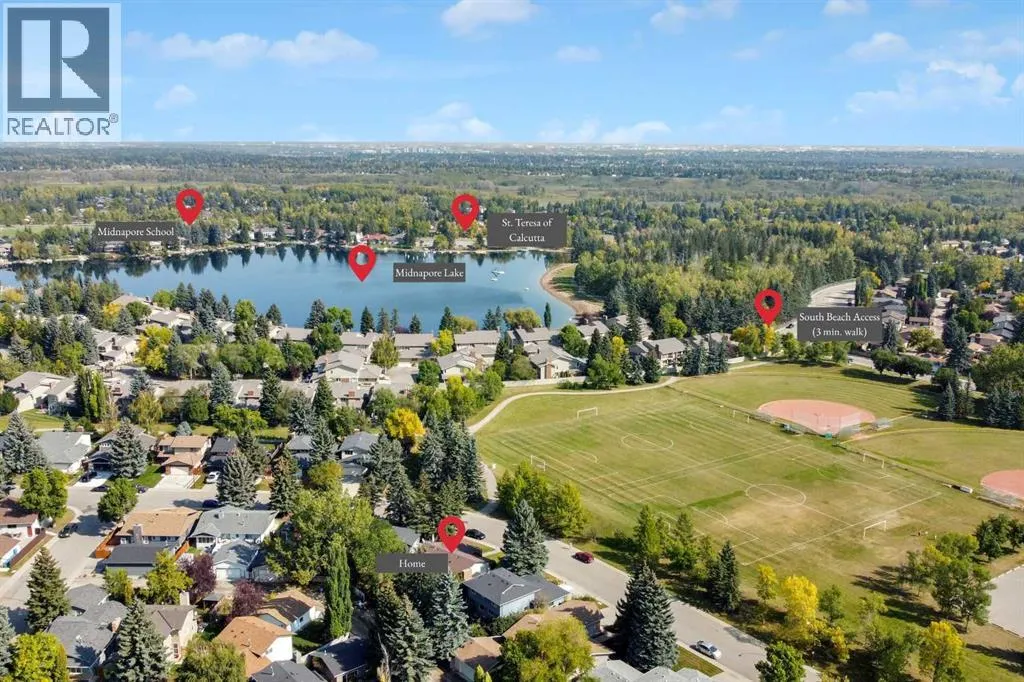 Welcome to 39 Midpark Close, a thoughtfully laid out and beautifully renovated bungalow in the highly sought-after lake community of Midnapore. This home offers a lifestyle thatâs hard to match. Located on a quiet street just a short three-minute walk to the south entrance of Midnapore Lake, where residents enjoy year-round private lake access. Summer days can be spent swimming, paddle boarding, or relaxing at the beach, while winter invites skating, hockey, and fireside gatherings. With Fish Creek Provincial Park also steps away, youâll have endless pathways and natural beauty at your doorstep. The curb appeal is immediate with durable Hardie board siding, a front deck that feels like a private retreat, and an exposed aggregate walkway leading to your front door. Morning coffee or evening wine on the front deck offers peaceful views of mature trees and open fields across the street where kids can play within earshot. Out back, youâll find another impressive outdoor living space with an exposed aggregate patio, a pergola, and a double detached garage, making the yard both functional and perfect for entertaining. Inside, nearly every detail has been thoughtfully updated. The open concept main floor features new flooring throughout, fresh interior paint, and modern ceilings finished with recessed pot lighting and designer fixtures. The living room showcases a beautifully redone fireplace, framed by oversized windows that flood the space with natural light and connect you to the outdoors. The kitchen is both stylish and functional, offering ample storage, breakfast bar seating, and easy flow into the dining and living areas, making it ideal for entertaining. Bathrooms have been fully renovated with modern tile finishes, contemporary vanities, and matte black hardware. Every door, trim, and handle has been updated for a fresh, cohesive look, while new carpet adds comfort where it matters most. Mechanical updates mean peace of mind with a new furnace (2023) and air cond itioning (2023) for efficient, year-round comfort. A new washer and dryer are also included. The finished lower level extends the living space with a large recreation room, perfect for movie nights, a play area, or a home gym with the same bright, modern finishes carried through. The location is ideal for families with excellent schools nearby including Midnapore School, Midsun Junior High, Trinity Christian School, Centennial High School, and St. Teresa of Calcutta Catholic School. Shopping, dining, and daily conveniences are minutes away at Midnapore Mall and Shawnessy Centre. Quick access to MacLeod Trail and major routes makes commuting throughout Calgary simple and efficient. This is more than a move-in ready home, itâs a lifestyle. With extensive upgrades, a quiet and established location, and unbeatable access to both lake and park, 39 Midpark Close offers a rare opportunity to enjoy the very best of Calgary living. (id:27476)