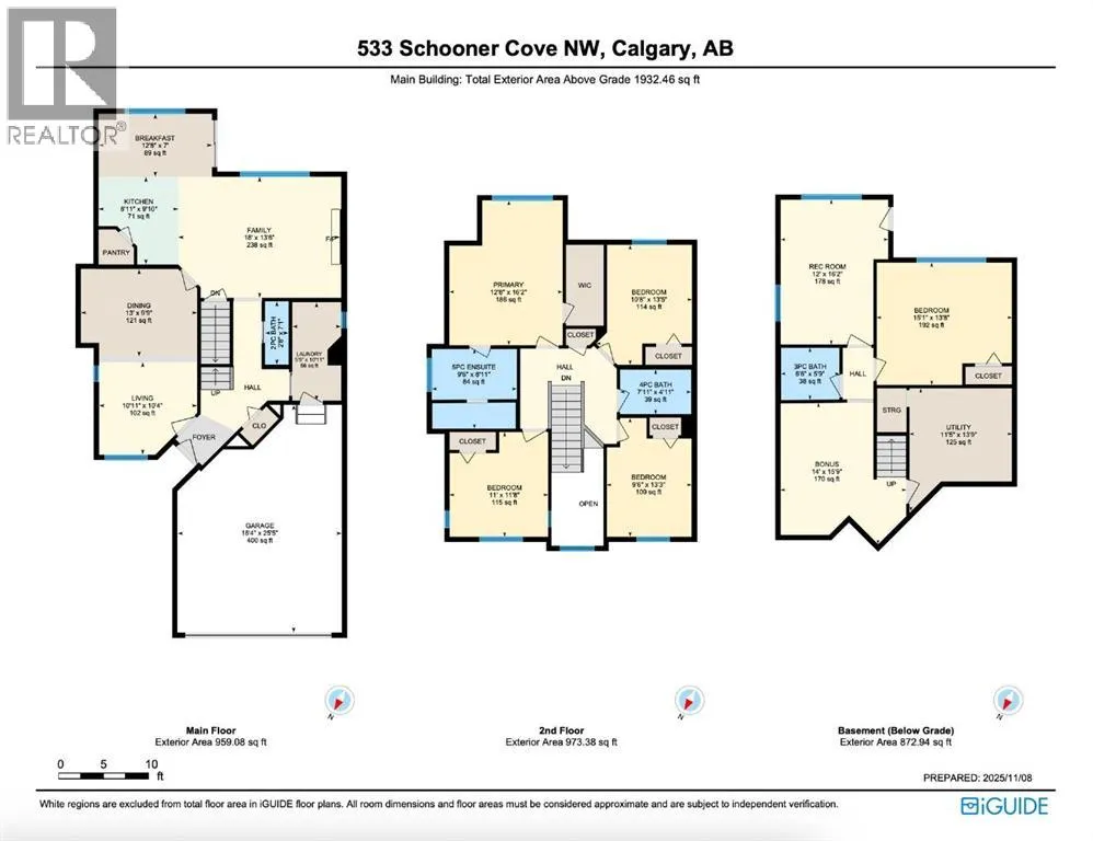 Welcome to this beautifully maintained 4 +1 bed, 2 storey home with walk out basement in one of Calgaryâs most desirable NW communities, Scenic Acres. With nearly 1,900 sq. ft. of fully developed space, this family friendly property is ideally situated on a sun filled corner lot in a quiet cul-de-sac, offering peace, privacy, and minimal traffic. From the moment you step inside, the oversized windows throughout the home fill each room with natural light, creating an inviting and uplifting atmosphere. The main floor features a welcoming foyer that opens into a formal dining room, perfect for family gatherings and celebrations. Just beyond is the heart of the home, an open concept kitchen overlooking the cozy family room with a gas fireplace. The modern kitchen includes stone countertops, a spacious island, extended breakfast nook and newer stainless steel appliances (OTR Microwave & Dishwasher 2025). Upstairs, youâll find 4 bedrooms, including a bright primary with renovated 5 pc ensuite (2020) featuring a tile to ceiling shower, oversized soaker tub, dual vanities and a new frameless glass shower door (2025).This home has been lovingly updated and maintained over the years, offering true peace of mind to its next owners. Recent upgrades include a full interior paint refresh, as well as fresh paint on the front porch and balcony (2025), professional furnace, duct, and A/C cleaning (2025), new luxury vinyl plank flooring was installed on the upper level and both staircases in 2025, along with modern flush mount light fixtures added throughout the upper floor and basement in 2025. Quartz countertops and undermount sinks were installed in the main floor half bath and upstairs secondary bath in 2025. The walk out basement is fully finished boasting a den, bedroom and 3pc bathroom. Outside you will find a beautifully developed backyard with a paving stone patio, perfect for summer barbecues, morning coffee, or evenings spent under the stars. The cul-de-sac location provid es a safe and quiet environment for kids to play, and the community of Scenic Acres is known for its family-friendly lifestyle, scenic walking paths, parks, mountain views, top-rated schools, and quick access to Crowfoot C-Train station, Crowchild Trail, and Stoney Trail. Move in ready, flooded with natural light, and thoughtfully updated from top to bottom, this Scenic Acres gem is ready to welcome its next family home. (id:27476)