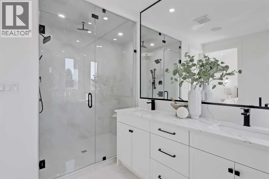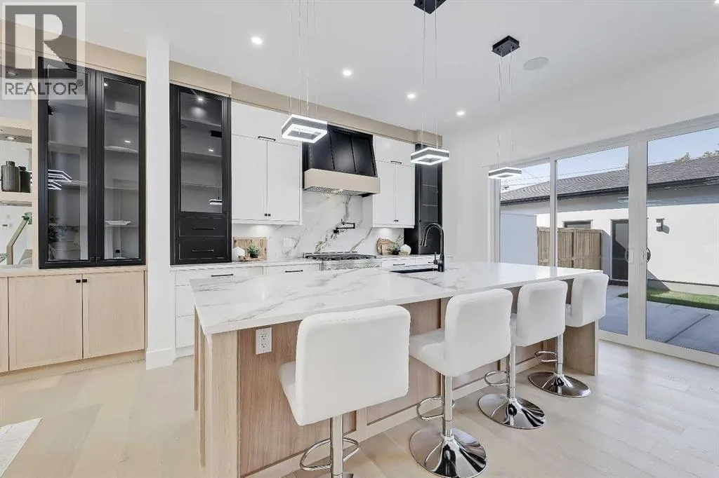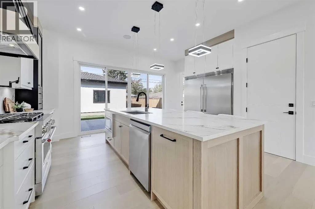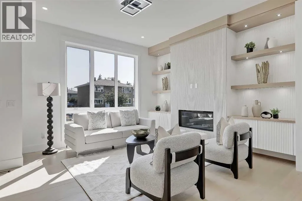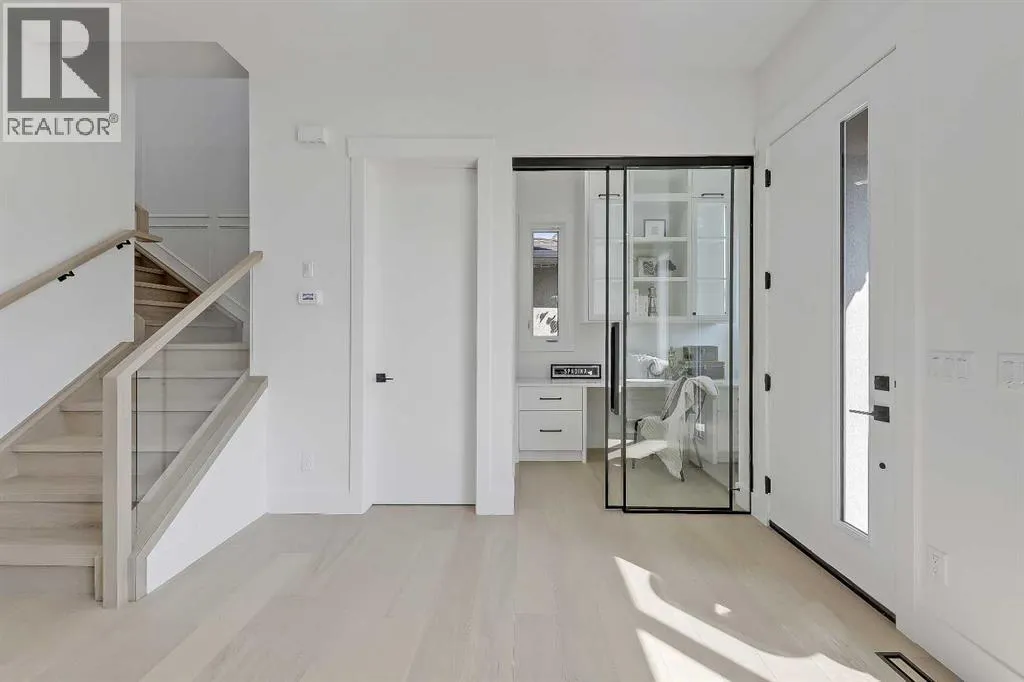 Tucked into the heart of SHAGANAPPI, this brand new 5-BED, SEMI-DETACHED home w/ LEGAL 2-BED SUITE (City approved) blends modern luxury with everyday comfort. Step through the arched entry to a welcoming foyer w/ walk-in coat closet, plus a stylish front OFFICE framed by glass doors, built-in desk & cabinetryâideal for work-from-home. Wide-plank hardwood flows into the open-concept main floor, designed for living and entertaining. The living room centers on a sleek gas fireplace wall w/ designer tile surround and custom built-ins w/ inset lighting. At the back, the chefâs kitchen steals the show, anchored by a dedicated dining area w/ designer lighting, glass-front built-ins & in-cabinet lighting. High-end S/S appliancesâgas range, custom hood fan, and DOUBLE WIDE FULL FRIDGE/FULL FREEZER, microwave & dishwasherâshine against an oversized quartz island built for gathering and stunning quartz backsplash with pot filler. A WALK-IN PANTRY w/ custom shelving adds smart storage. Bi-parting doors open to a large patio, extending the space outdoors. A chic powder room and mudroom w/ custom finishes complete this level. Upstairs, the primary suite feels like a retreat, w/ vaulted ceilings and oversized windows. The spa-inspired ensuite has it all: freestanding soaker tub, huge glass shower w/built in bench & rough in for steam, dual vanities w/ makeup desk, plus a dreamy walk-in closet. Two more bedroomsâeach w/ TRAY CEILINGS with built-in lightingâshare a stylish Jack & Jill bath w/ separated vanity & bath areas. The loft/study offers open shelving and flexible space for reading, working, or relaxing. A well-planned laundry room finishes this floor. The fully finished EXTENDED BASEMENT adds almost 1100sqft of additional living space. The legal 2-bed suite features quartz counters, S/S appliances, custom cabinets, private laundry, and its own side entrance w/ built-in storage. A bonus third space can connect to the suite or be locked off as a private GYM for the main home m aking it perfect for guests, family, or a rental incentive. Set in the vibrant Shaganappi community, this home puts Calgaryâs best at your door. Golf at Shaganappi, stroll parks and pathways, or zip downtown in minutes. With great schools, trendy restaurants, boutique shopping, and easy transit nearby, this is modern city living at its best. All you have to do is move in! *Photos from show suite, finish may vary (id:27476)