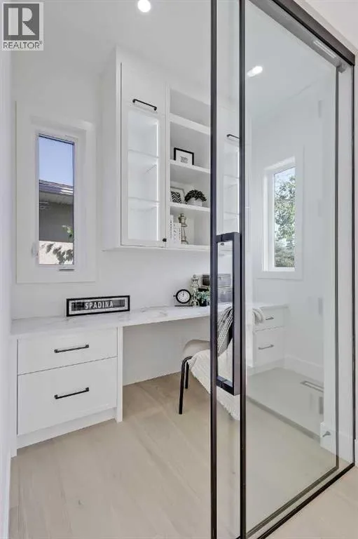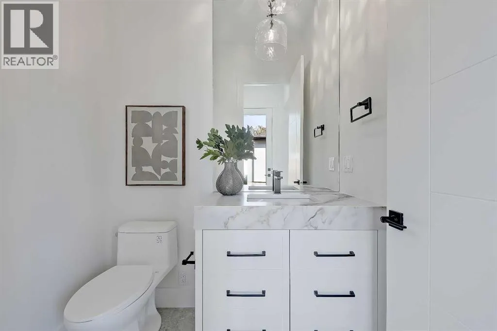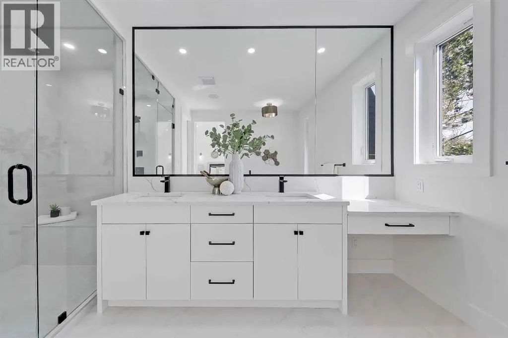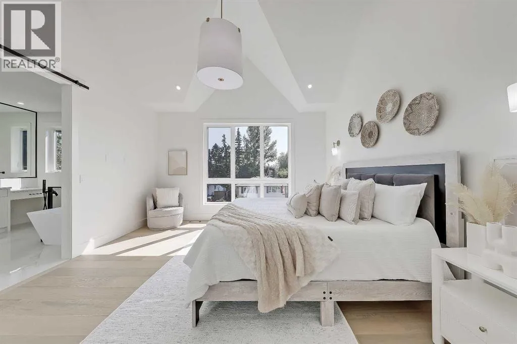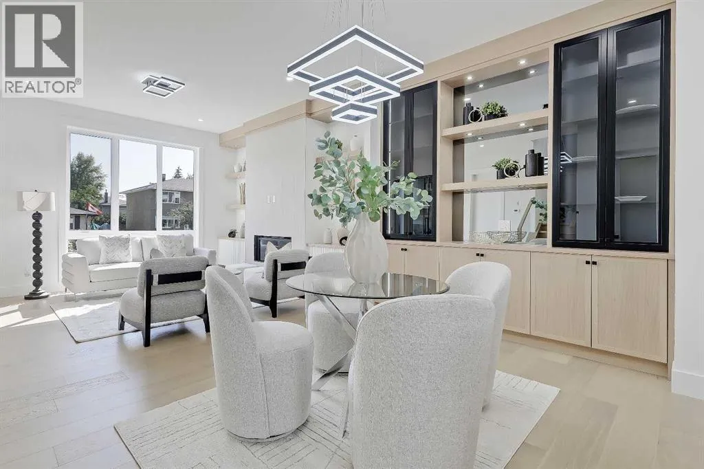 Tucked into the heart of SHAGANAPPI, this brand new 5-BED, SEMI-DETACHED home w/ LEGAL 2-BED SUITE (City approved) blends modern luxury with everyday comfort. Step through the arched entry to a welcoming foyer w/ walk-in coat closet, plus a stylish front OFFICE framed by glass doors, built-in desk & cabinetryâideal for work-from-home. Wide-plank hardwood flows into the open-concept main floor, designed for living and entertaining. The living room centers on a sleek gas fireplace wall w/ designer tile surround and custom built-ins w/ inset lighting. At the back, the chefâs kitchen steals the show, anchored by a dedicated dining area w/ designer lighting, glass-front built-ins & in-cabinet lighting. High-end S/S appliancesâgas range, custom hood fan, and DOUBLE WIDE FULL FRIDGE/FULL FREEZER, microwave & dishwasherâshine against an oversized quartz island built for gathering and stunning quartz backsplash with pot filler. A WALK-IN PANTRY w/ custom shelving adds smart storage. Bi-parting doors open to a large patio, extending the space outdoors. A chic powder room and mudroom w/ custom finishes complete this level. Upstairs, the primary suite feels like a retreat, w/ vaulted ceilings and oversized windows. The spa-inspired ensuite has it all: freestanding soaker tub, huge glass shower w/built in bench & rough in for steam, dual vanities w/ makeup desk, plus a dreamy walk-in closet. Two more bedroomsâeach w/ TRAY CEILINGS with built-in lightingâshare a stylish Jack & Jill bath w/ separated vanity & bath areas. The loft/study offers open shelving and flexible space for reading, working, or relaxing. A well-planned laundry room finishes this floor. The fully finished EXTENDED BASEMENT adds almost 1100sqft of additional living space. The legal 2-bed suite features quartz counters, S/S appliances, custom cabinets, private laundry, and its own side entrance w/ built-in storage. A bonus third space can connect to the suite or be locked off as a private GYM for the main home m aking it perfect for guests, family, or a rental incentive. Set in the vibrant Shaganappi community, this home puts Calgaryâs best at your door. Golf at Shaganappi, stroll parks and pathways, or zip downtown in minutes. With great schools, trendy restaurants, boutique shopping, and easy transit nearby, this is modern city living at its best. All you have to do is move in! *Photos from show suite, finish may vary (id:27476)