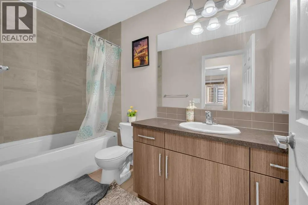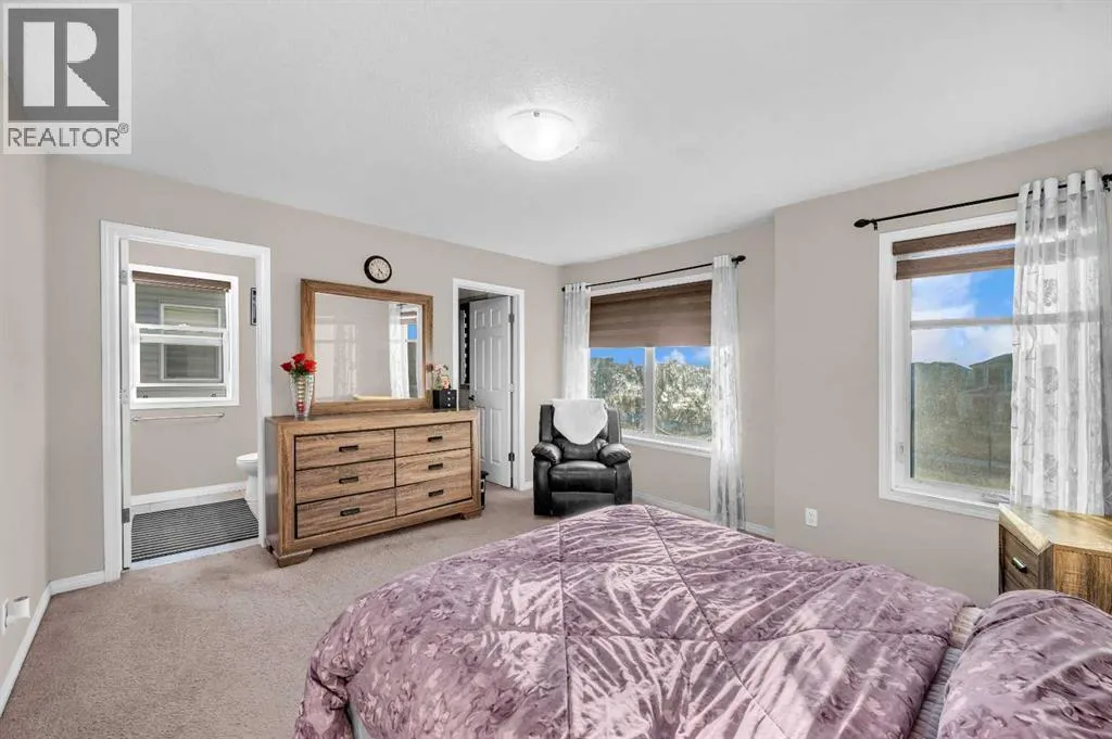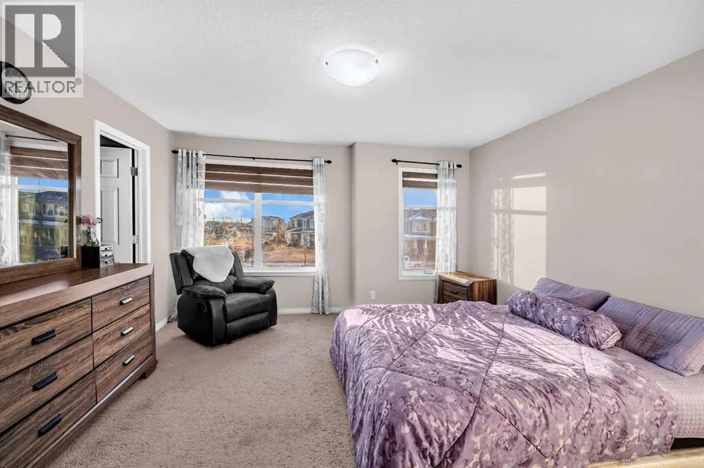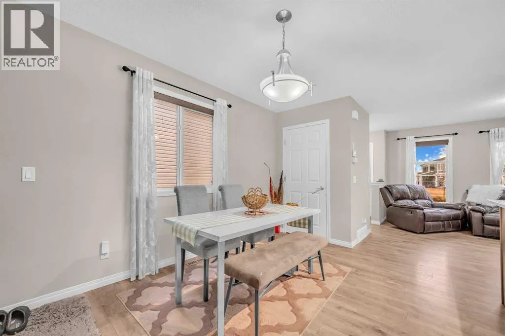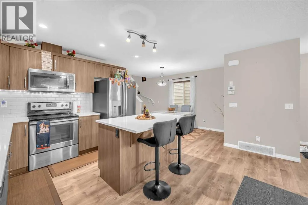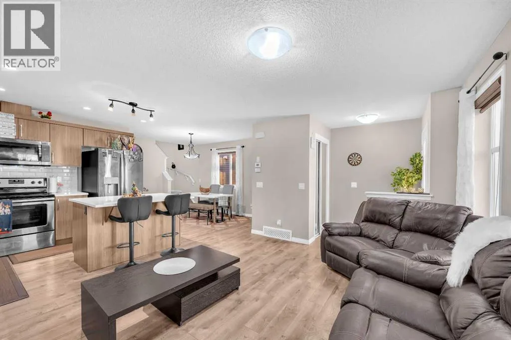 END UNIT with NO CONDO FEES and 1 bedroom illegal Basement Suite. Stylish and sun-filled, this beautifully maintained 3-bedroom end unit offers exceptional value with a double attached garage. The open-concept main floor is drenched in natural light and designed for seamless entertaining. Enjoy clear sightlines between the kitchen, dining, and living areas, complemented by brown cabinetry, quartz countertop, stainless steel appliances, and a central island with breakfast bar seating. Centralized AIR CONDITIONING provides refreshing comfort during Calgaryâs warm summer months.Convenient powder room and direct garage access make daily living effortless. Upstairs, a massive balcony sets the stage for summer BBQs and sunset views. The upper level also features a bonus room, laundry, a 4-piece family bath and three spacious bedrooms, including a private primary retreat with walk-in closet and 4-piece ensuite. The developed basement suite features an expansive living room, full kitchen and spacious bedroom with 4-piece bath. The basement includes its own separate laundry. Ideally located at a very convenient location with easy bus access and steps from green space, a community gazebo, and Cityscape Squareâhome to Starbucks, McDonalds, 7-Eleven, Indian grocery store, gas station, shops, and restaurants. Surrounded by scenic pathways and a 115-acre natural preserve, with quick access to Stoney and Deerfoot Trails, Cross Iron Mills, Costco, the airport, Genesis Centre, and Prairie Winds Park. Call your realtor today to schedule a showing. This home wonât last long. A rare opportunity to own a move-in ready home in a vibrant, walkable communityâwithout the condo fees! (id:27476)