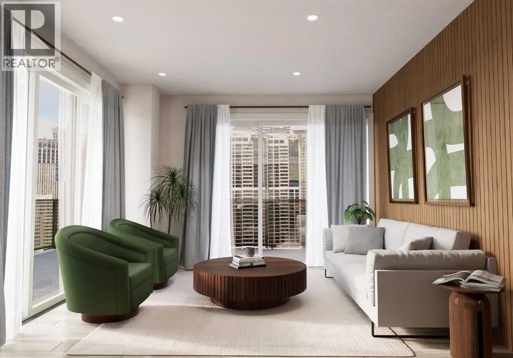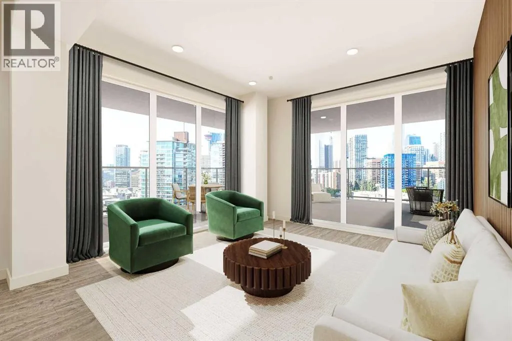 INNER CITY 2 BEDROOM PLUS DEN PENTHOUSE BEAUTY - Thereâs luxuryâand then thereâs lifestyle. Perched high above one of Calgaryâs most coveted inner-city districts, this 1,309 sq. ft. penthouse offers both in equal measure. Wrapped in glass and light, with panoramic city views that stretch endlessly, itâs the kind of home that redefines what âcondo livingâ can be.Step inside and you immediately feel the difference. The spacious, open layout moves like a single-family homeâflowing naturally from one space to the nextâyet every detail is elevated with Designer interiors and premium finishings. Wide-plank flooring anchors the rooms, while sleek cabinetry, elegant fixtures, and sophisticated surfaces create a calm, contemporary backdrop for everyday life.The kitchen blends function with finesse: full-height cabinetry, stone counters, and all the appliances designed for entertaining or late-night simplicity. From there, the living and dining areas open seamlessly to a massive wrap-around balcony, where morning coffee comes with sunrise views and evening wine pairs perfectly with the city lights below.Two bedroomsâeach with a private ensuiteâoffer privacy and retreat, while the den with floor-to-ceiling windows makes an inspiring home office, reading lounge, or creative space. Every inch feels purposeful, balanced, and beautifully executed.Security and convenience are built in, with lock-and-leave confidence, titled underground parking, and two private storage cages. Step outside and youâre moments from Calgaryâs best cafés, boutiques, parks, and restaurantsâliving proof that you can have serenity and connection in the same address.Here, freedom, luxury, and location meet effortlessly. This isnât just where you liveâitâs how you live.Sovereign on 17th is an exclusive opportunity in Calgaryâs Culture and Entertainment District, ideal for downsizers seeking modern, maintenance-free living without giving up space or sophistication.Located in Mission, Sovereign is steps from Calgaryâs most iconic attractions â including the Stampede Grounds, BMO Centre, Scotiabank Saddledome, and the restaurants and nightlife of 17th Avenue. (id:27476)