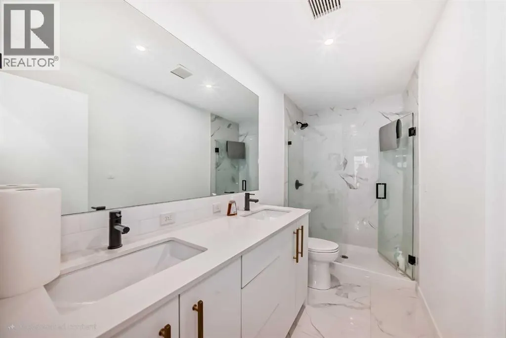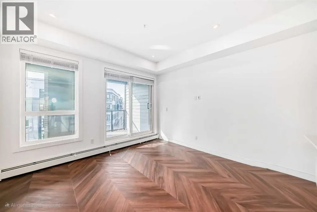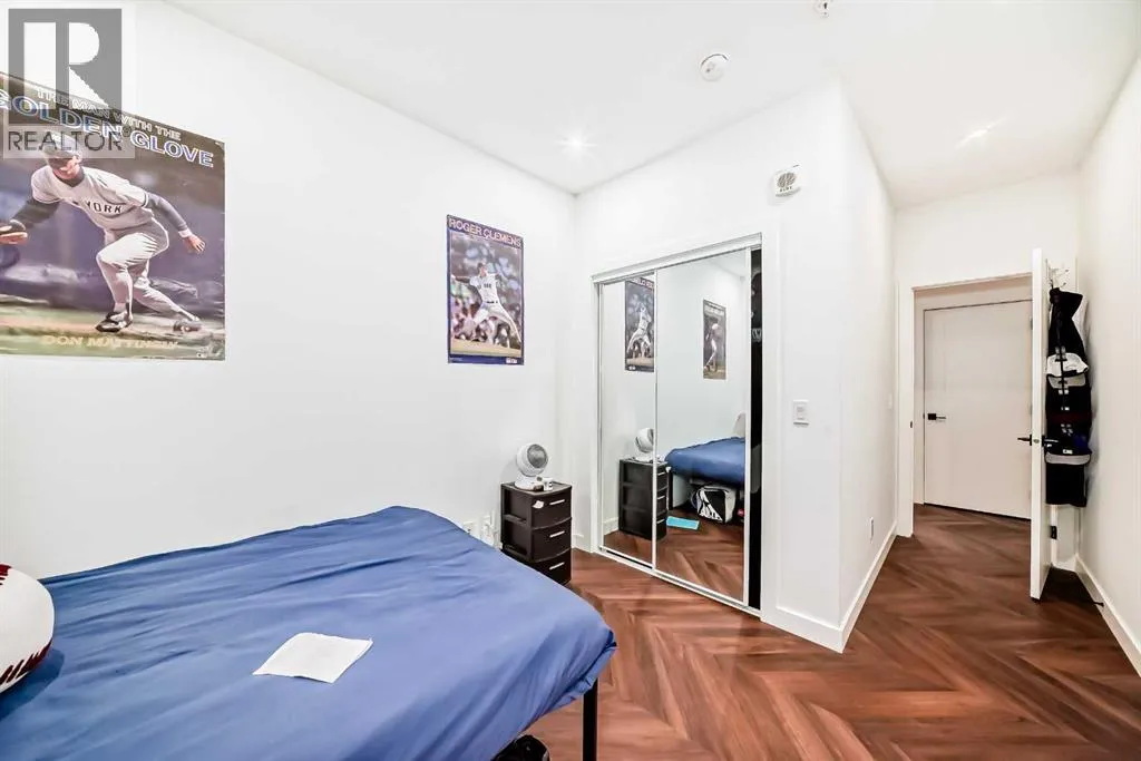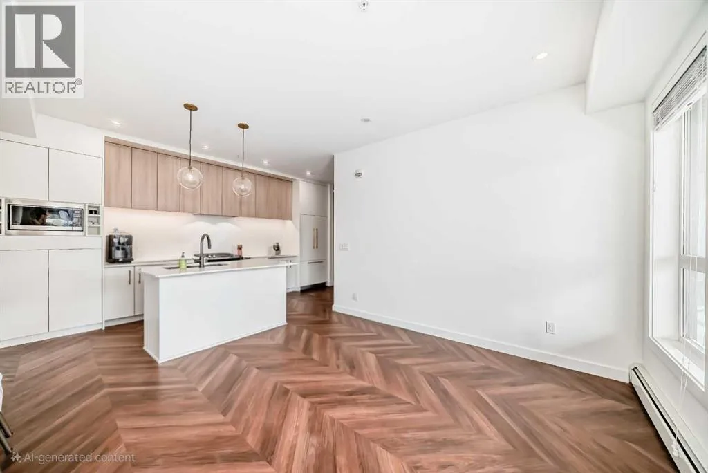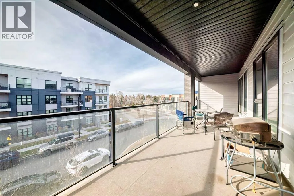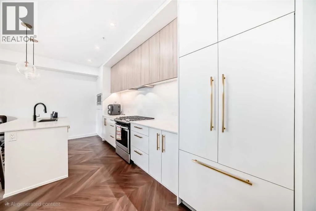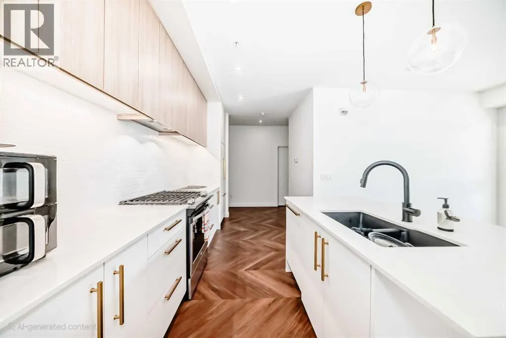 Welcome to this luxurious top-floor 3-bedroom, 2-bath residence in Esquire, one of Calgaryâs most sought-after developments in the vibrant University District. Offering over 950 sq. ft. of elegant living space, this home combines contemporary sophistication with everyday functionality.The chef-inspired kitchen is a true highlight, featuring ceiling-height cabinetry, quartz countertops, a gas range, tile backsplash, and a large island with bar seatingâperfect for entertaining or casual dining. The open-concept layout flows seamlessly into the bright living and dining areas, adorned with herringbone-pattern luxury vinyl plank flooring and expansive windows that fill the space with natural light. Step out onto your private balcony to enjoy serene views and the perfect setting for morning coffee or evening relaxation.The primary suite offers a generous walk-in closet and a spa-like 4-piece ensuite with dual vanities and a glass-enclosed shower. Two additional bedrooms and a second full bath provide flexibility for family, guests, or a home office setup. Additional conveniences include in-suite laundry and titled underground parking for year-round comfort.Residents of Esquire enjoy exclusive access to premium amenities including a fully equipped fitness centre, pet wash station, and bike maintenance area. Perfectly located, youâre steps away from shops, restaurants, coffee spots, grocery stores, and parks, with the University of Calgary, Foothills Medical Centre, and Market Mall just minutes away.Experience elevated urban living in one of Calgaryâs most dynamic communities â book your private showing today! (id:27476)