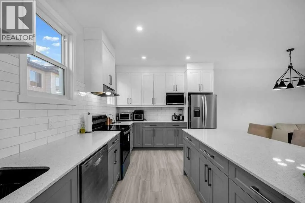 Welcome to this stunning, modern 4-bedroom, 3.5-bathroom townhouse located in the lively, family-oriented community of Cornerstone, perfectly positioned backing onto peaceful wetlands. This bright and spacious end unit features an open-concept layout with plenty of natural light from extra windows and elegant contemporary finishes throughout. The stylish kitchen showcases quartz countertops, stainless steel appliances, and generous cabinetry for all your storage needs. The single attached garage adds both convenience and security. Upstairs, youâll find three spacious bedrooms ideal for families or guests. The main level includes a versatile fourth bedroom with its own 3-piece bathroom, perfect as a home office, formal living space, or even a potential future wet bar setup. The basement, complete with a separate entrance, offers flexibility for an additional bedroom or recreation area. Set in a welcoming neighborhood filled with parks, playgrounds, and walking paths, this home is also just minutes from shopping, restaurants, schools, and major roadways making everyday living and commuting effortless. Move-in ready and loaded with upgrades, this beautiful Cornerstone townhouse offers the perfect blend of comfort, functionality, and modern design.Contact me today to schedule your private showing! (id:27476)