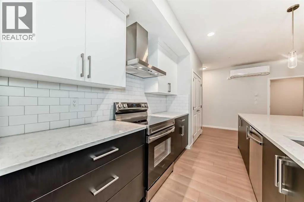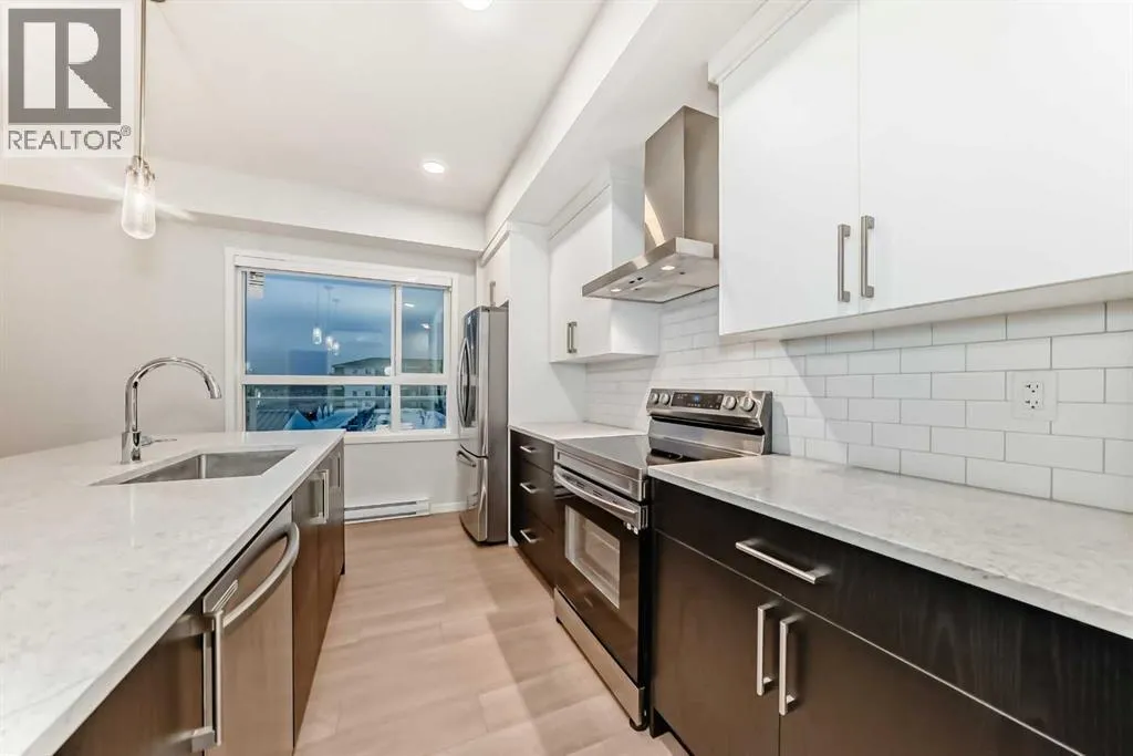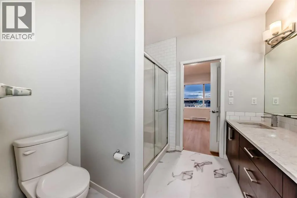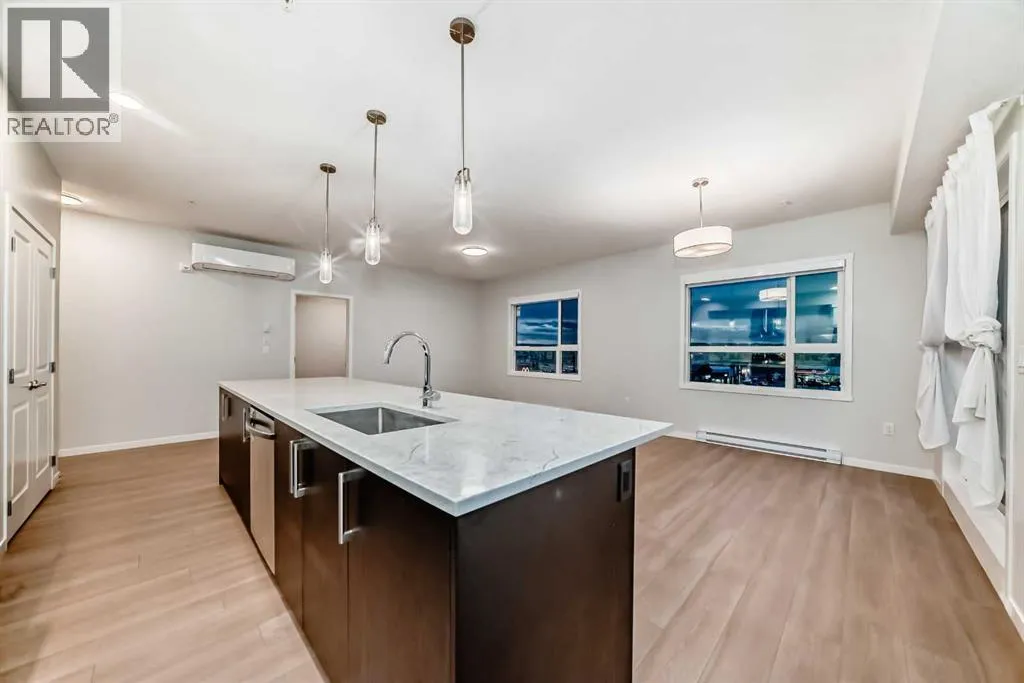 * Please check out the 3D tour link * One of the best view units in the complex. Beautiful unobstructed view, top floor, end unit with lots of windows, very well kept, and fully upgraded, welcome to this 1032 sqft apartment unit in prestige Carrington. It features Luxury Vinyl Plank and tiles flooring throughout the unit, quartz counter tops in the kitchen and bathrooms, 9 feet ceiling, air condition, and large balcony with beautiful views. It has 2 bedrooms, 2 full bathrooms, large master bedroom with double vanity sinks and large walk-in closet, large and bright living room, spacious upgraded kitchen, and large dining area with sliding door to balcony, and convenient in suite laundry room. It also has 1 underground titled parking stall. It closes to playground, steps away from McDonaldâs, shopping, public transit, and easy access to major roads. ** 404, 80 Carrington Plaza NW ** (id:27476)