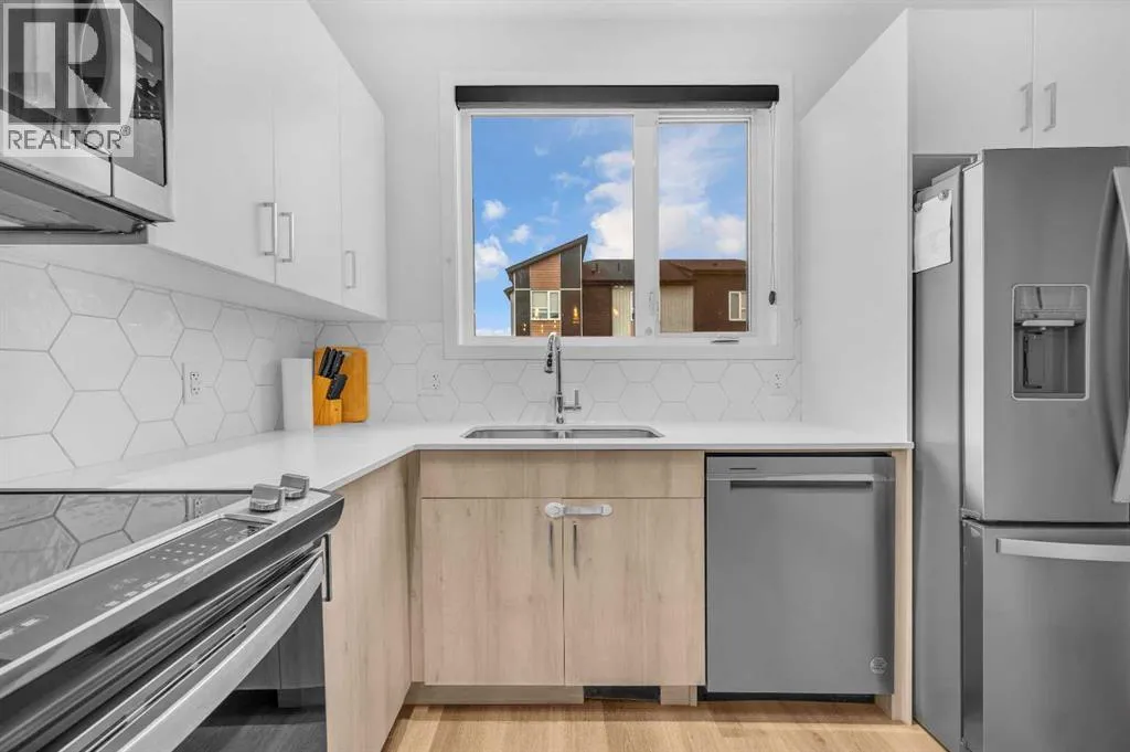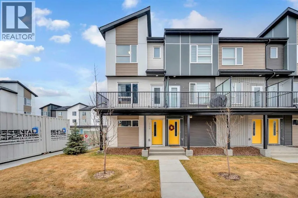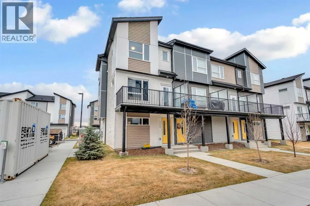 Welcome to this stunning corner-unit townhouse in the vibrant community of Redstone! This modern 3-storey home offers over 1,545 sq. ft. of living space, featuring 3 spacious bedrooms, 2.5 bathrooms, and a tandem double attached garage with an additional driveway parking spot â perfect for families or professionals seeking space and convenience.Built in 2023, this home still feels brand new and comes with low condo fees ($253.12/month) that cover exterior maintenance, snow removal, landscaping, and garbage services.Step inside to discover a bright, open-concept floor plan with luxury vinyl plank flooring, large windows, and a U-shaped kitchen designed with modern cabinetry, stone countertops, stainless steel appliances with a fridge water line, pendant lighting, and plenty of counter space. The main living area flows seamlessly into the dining and living rooms, leading out to a spacious balcony with a BBQ gas line â ideal for relaxing or entertaining outdoors.Upstairs, youâll find three well-sized bedrooms, a convenient upper-floor laundry, and a primary suite with a standing shower and elegant finishes throughout. Every detail has been thoughtfully chosen â from stylish blinds to modern tile work and quality materials throughout.Located in the heart of Redstone NE Calgary, this townhouse offers easy access to Country Hills Blvd, Métis Trail, and Stoney Trail, as well as parks, playgrounds, shopping, transit, and a future school site currently in planning.This move-in-ready home combines comfort, style, and practicality â a fantastic opportunity in a fast-growing community. Donât miss your chance to own this corner gem in Redstone! (id:27476)