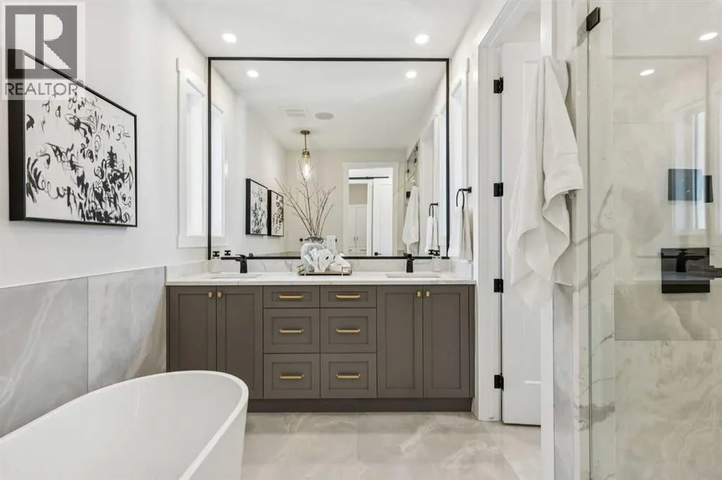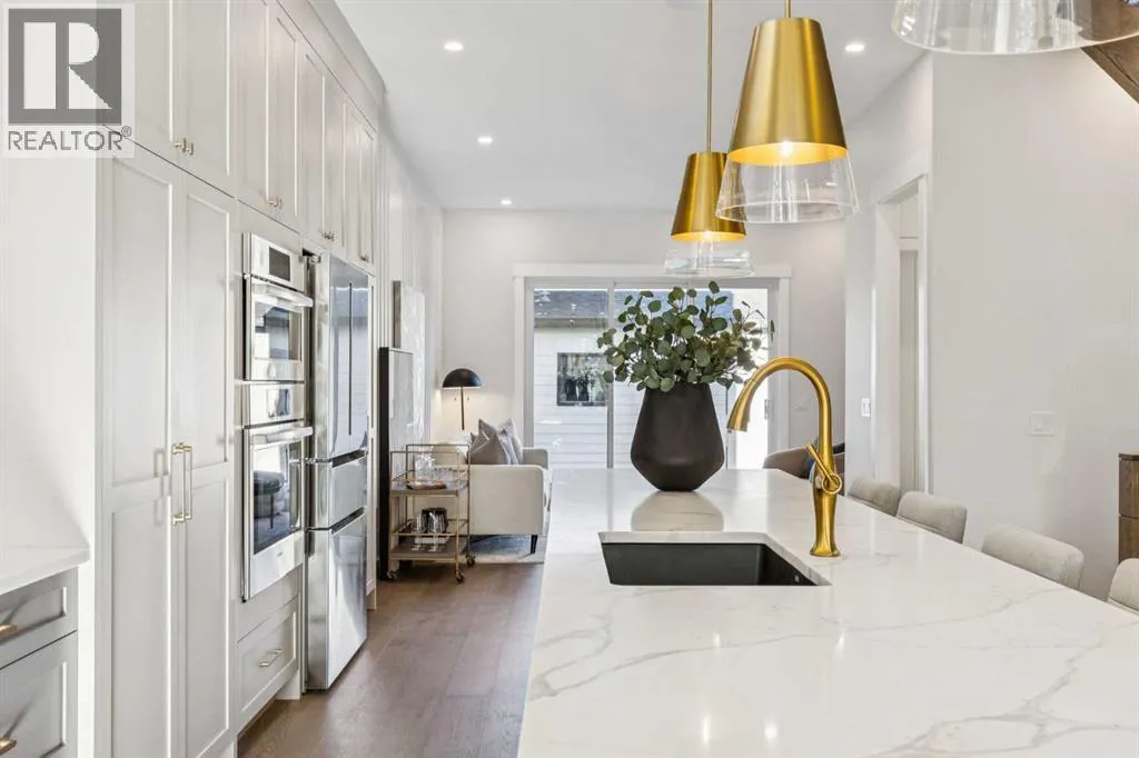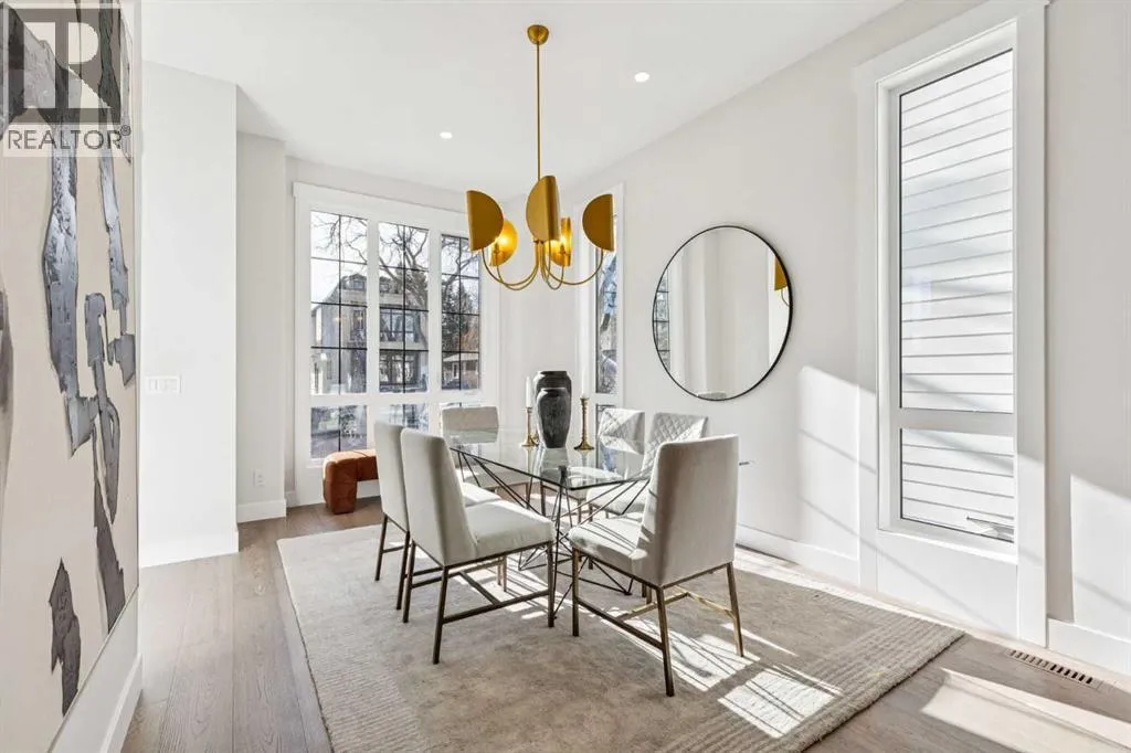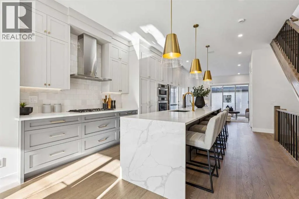 Discover Infill 1726 seemingly plucked from the pages of Dwell Magazine this classically designed & beautifully appointed home is loaded with extras while boasting the highest quality construction & amazing natural light throughout. Here are 5 things we LOVE about this home (& weâre sure you will too) 1. ROOM TO LIVE & GROW: With over 2,700 SqFt of refined & functional living space across 3 levels, this is a full-size home! The main floor boasts a contemporary, open-concept design with 10âceilings, hardwood floors, central kitchen & gorgeous, sun-filled dining room, accented by a 9â colonial window. The spacious living room accommodates your furnishings with ease & includes a recessed electric fireplace & large window overlooking the private backyard. A well-proportioned mudroom offers ample storage for coats/boots, while a stylish powder room is tucked away for added privacy. Upstairs the primary bedroom is like a boutique hotel, only itâs yours! With King-size proportions, vaulted ceilings & custom walk-in closet you almost forget about the incredible 5-piece ensuite featuring free-standing soaking tub, steam shower rough-in, dual sinks & separate water closet. Two additional beds both with walk-in closets share a beautifully appointed 4-piece bath. A conveniently located laundry room offers plenty of storage space. The basement is thoughtfully designed with movie nights in mind, offering a spacious rec room w/wet bar, 4th bed, 3-piece bath & storage. 2. THAT KITCHEN! Proof that a contemporary home can be warm & inviting. This kitchen is a showstopper & truly a space designed for gathering & creating memories. Anchored by a 14â quartz waterfall island, integrated Bosch appliance package, full height cabinet w/spice cupboard, oversize pendant + undermount lighting. Whether preparing a feast, hosting a dinner party or simply warming up takeout you will feel right at home here. 3. A BOUTIQUE INNER CITY BUILDER: Custom Homes by Alba is a highly regarded, hands-on home builder specializing in Inner City Calgary & known across the city for his small-batch approach & high-quality construction. Every inch of these homes is intentional & impresses the most discerning of home buyers. 4. ALL THE EXTRAS: From 10â ceilings + 9â doors, gorgeous hardwood floors, step-lights on both staircases, in-floor heating rough-in + laundry rough-in in the basement & steam shower rough-in in the primary ensuite, AC rough-in, garage heater rough-in and 200 AMP service this home is not only move-in ready but awaiting your personal touch. 5. A MATURE, CONVENIENT NEIGHBORHOOD: Capitol Hill is a beautiful, conveniently located neighbourhood in Calgaryâs Inner City/NW. Officially established in 1948, original Capitol Hill homes date back to 1910. Today, Residents enjoy wide, tree lined streets & a mix of housing styles ranging from mid-century bungalows to modern townhomes & stunning infills. From Infill 1726 you are a few blocks to the heart of 16th Ave NW & a 6-minute walk to Edelweiss Village. (id:27476)
