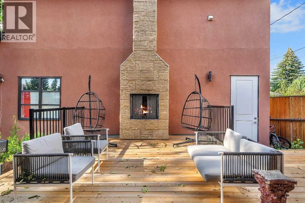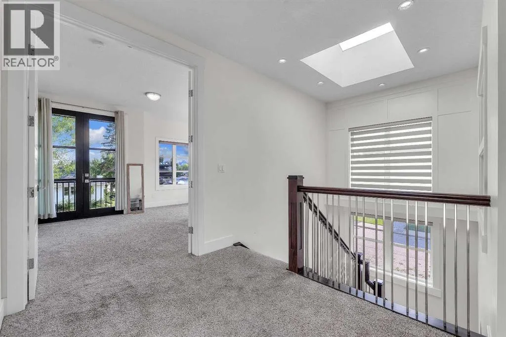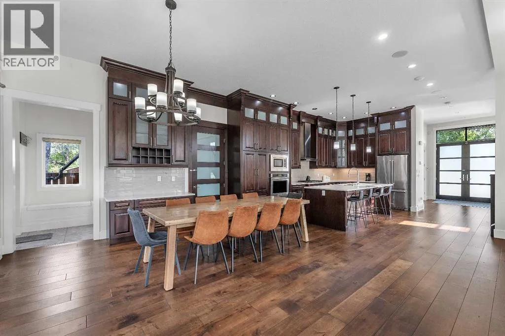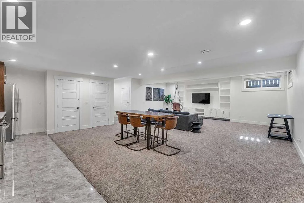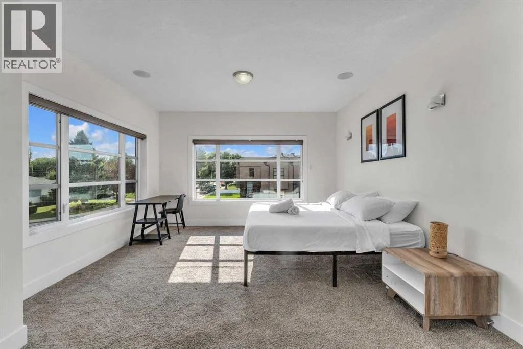 LEGAL CARRIAGE SUITE | MASSIVE CORNER LOT | TRIPLE CAR GARAGE | WINSTON HEIGHTS | 5000+ SQ FT OF LIVING SPACE | SEPARATE BASEMENT ENTRANCE | 9 BED & 1 OFFICE & 7 BATH | AC |Step into a world of timeless elegance and unmatched comfort in this extraordinary two-storey home offering over 5,000 sq ft of luxurious living space, nestled on a sprawling corner lot of more than 6,000 sq ft in the highly sought-after community of Winston Heights. With 9 bedrooms, 7 bathrooms, 1 office, a legal carriage suite, and a basement with a separate entrance, this is the perfect property for multi-generational living, rental income, or those simply seeking space, prestige, and functionâjust minutes from downtown Calgary.As you approach the home, the curb appeal is immediately strikingâclassic architecture framed by mature trees and a stately corner presence. Step through the elegant double French doors, and youâre instantly captivated by the sense of grandeur: dark hardwood floors, crown molding, and soaring 11-foot tray ceilings welcome you in, while natural sunlight floods through oversized windows, creating a warm, inviting ambiance throughout. The main floor is thoughtfully designed for both entertaining and everyday living. A spacious office provides the perfect space to work from home, while a separate main floor bedroom with a private 3-piece ensuite offers comfort and accessibility for guests or family members. The heart of the homeâthe chef-inspired kitchenâfeatures ceiling-height wood cabinetry, premium built-in stainless steel appliances, and a over-sized island perfect for gathering around. Tucked just behind is your own spice (butlers) kitchen, ideal for keeping the main space pristine while preparing more aromatic dishes.The living room is anchored by a show-stopping tiled fireplace accent wall, creating a cozy focal point. The dining area blends seamlessly into the layout, ideal for large family dinners or hosting guests in style. The main floor also includes a s pacious mudroom, a powder room, and a grand foyer that sets the tone for this impressive residence. Upstairs, the thoughtful layout continues with 5 generously sized bedrooms. The primary retreat is truly a sanctuary: imagine sipping your morning coffee from your private balcony with downtown skyline views, or unwinding in the spa-like 4-piece ensuite featuring dual vanities and a steam shower. A walk-in closet adds to the luxury. This floor also includes two more full bathrooms and a dedicated laundry room for ultimate convenience. Downstairs, the walk-up-to-grade basement suite (illegal) is bright, spacious, and beautifully finishedâfeaturing a full kitchen, a generous recreation room, two large bedrooms, a 4-piece bathroom, laundry machines, and tons of storage. And donât forget the legal carriage suite above the triple car garage. It features a 1 bed 1 bath. The carriage suite is current tenanted. Outside, your private courtyard offers a serene escape with an outdoor fireplace, perfect for c (id:27476)