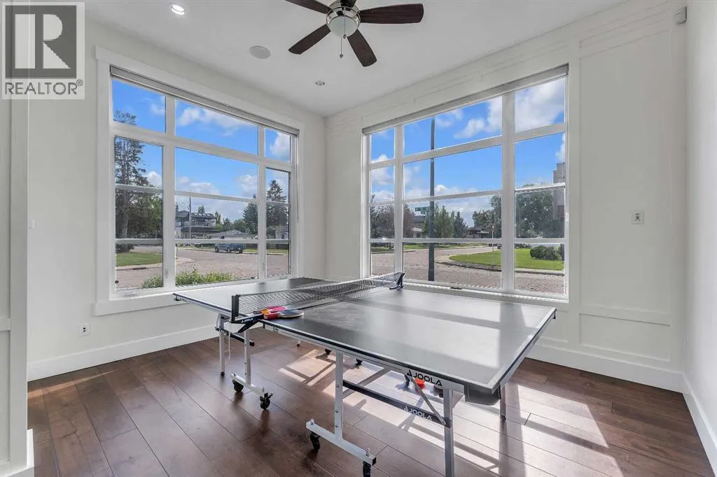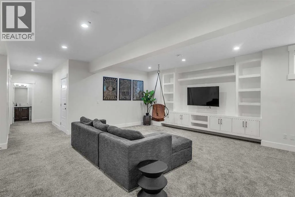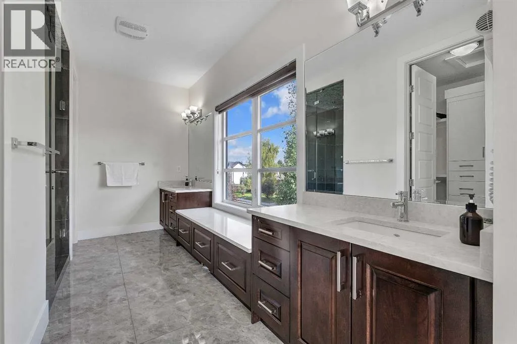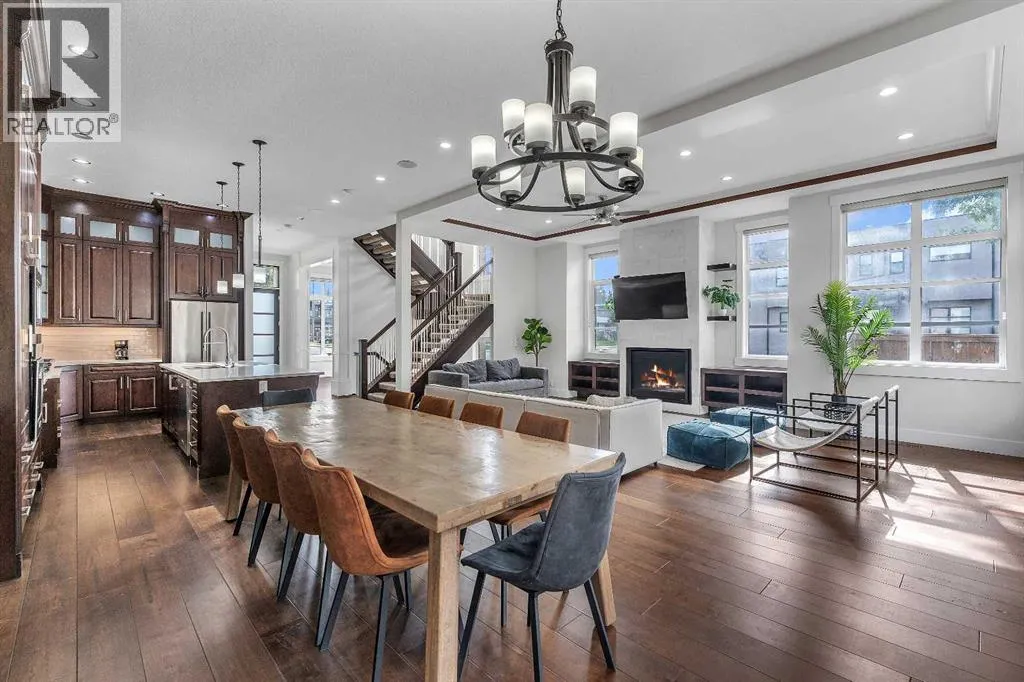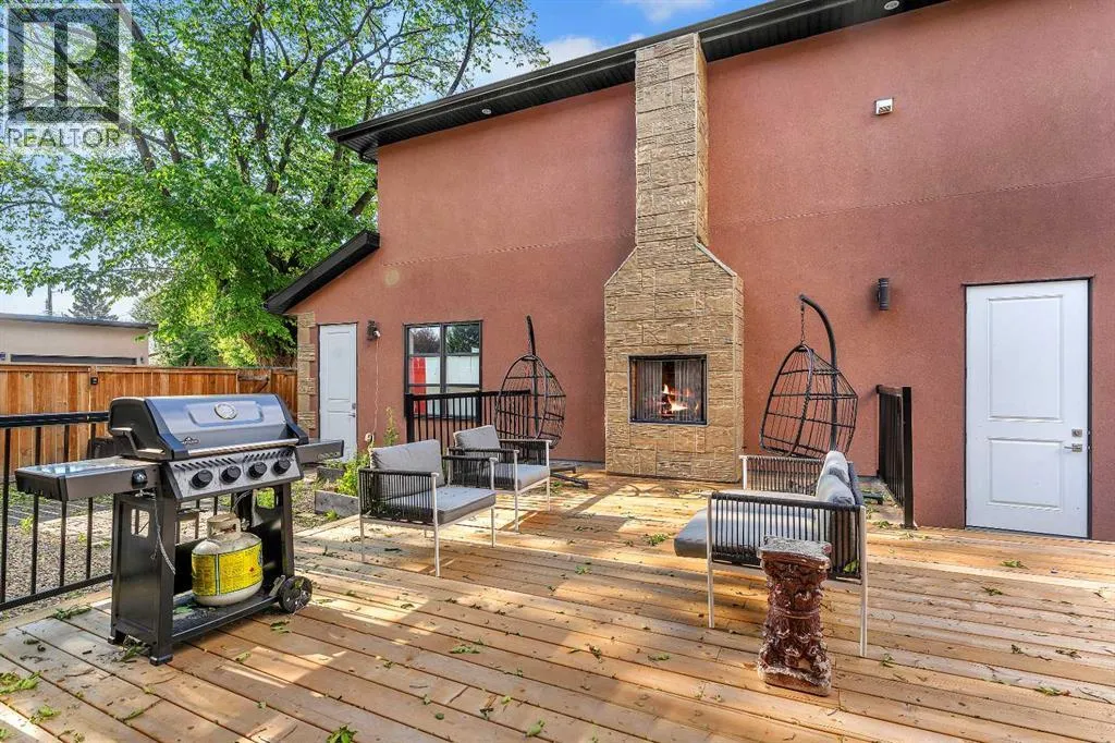 LEGAL CARRIAGE SUITE | MASSIVE CORNER LOT | TRIPLE CAR GARAGE | WINSTON HEIGHTS | 5000+ SQ FT OF LIVING SPACE | SEPARATE BASEMENT ENTRANCE | 9 BED & 1 OFFICE & 7 BATH | AC |Step into a world of timeless elegance and unmatched comfort in this extraordinary two-storey home offering over 5,000 sq ft of luxurious living space, nestled on a sprawling corner lot of more than 6,000 sq ft in the highly sought-after community of Winston Heights. With 9 bedrooms, 7 bathrooms, 1 office, a legal carriage suite, and a basement with a separate entrance, this is the perfect property for multi-generational living, rental income, or those simply seeking space, prestige, and functionâjust minutes from downtown Calgary.As you approach the home, the curb appeal is immediately strikingâclassic architecture framed by mature trees and a stately corner presence. Step through the elegant double French doors, and youâre instantly captivated by the sense of grandeur: dark hardwood floors, crown molding, and soaring 11-foot tray ceilings welcome you in, while natural sunlight floods through oversized windows, creating a warm, inviting ambiance throughout. The main floor is thoughtfully designed for both entertaining and everyday living. A spacious office provides the perfect space to work from home, while a separate main floor bedroom with a private 3-piece ensuite offers comfort and accessibility for guests or family members. The heart of the homeâthe chef-inspired kitchenâfeatures ceiling-height wood cabinetry, premium built-in stainless steel appliances, and a over-sized island perfect for gathering around. Tucked just behind is your own spice (butlers) kitchen, ideal for keeping the main space pristine while preparing more aromatic dishes.The living room is anchored by a show-stopping tiled fireplace accent wall, creating a cozy focal point. The dining area blends seamlessly into the layout, ideal for large family dinners or hosting guests in style. The main floor also includes a s pacious mudroom, a powder room, and a grand foyer that sets the tone for this impressive residence. Upstairs, the thoughtful layout continues with 5 generously sized bedrooms. The primary retreat is truly a sanctuary: imagine sipping your morning coffee from your private balcony with downtown skyline views, or unwinding in the spa-like 4-piece ensuite featuring dual vanities and a steam shower. A walk-in closet adds to the luxury. This floor also includes two more full bathrooms and a dedicated laundry room for ultimate convenience. Downstairs, the walk-up-to-grade basement suite (illegal) is bright, spacious, and beautifully finishedâfeaturing a full kitchen, a generous recreation room, two large bedrooms, a 4-piece bathroom, laundry machines, and tons of storage. And donât forget the legal carriage suite above the triple car garage. It features a 1 bed 1 bath. The carriage suite is current tenanted. Outside, your private courtyard offers a serene escape with an outdoor fireplace, perfect for c (id:27476)