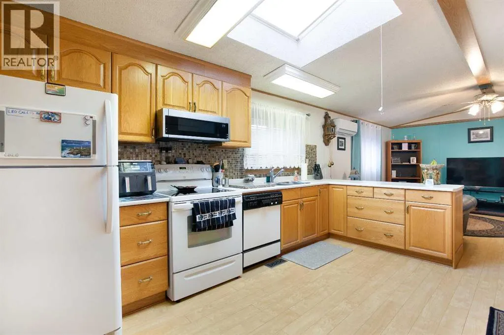 Triple Mobile Home ( 16 x 72 ) in the Watergrove Mobile Home Park. The monthly lot rent of $855. Situated in a quiet cul du sac area of the Park. Home . Built in Air conditioner in the Living Room. Good Size back yard. This home is move in ready. 2 Large bedrooms, 4 pc ensuite bath. off Large Master bedroom with a walk in closet(6'5" x 5'2") and a 4 pc ensuite bathroom off second bedroom , Large Kitchen. comes with Stove , Fridge, , Over Range Microwave, Dishwasher, Washer and Dryer. and lots of cabinets, Good sized Dining Room, Large Living Room, Laundry Room off Kitchen. , Laminate and carpet flooring . Covered Carport , Sun room porch with electric fireplace, , Covered carport Good size yard . Close to the Park facilities. This mobile home is situated in Watergrove Mobile Home Park in Arbour Lake. View of the mountains from the 2nd bedroom Note this was a 3 bedroom and has been converted to a 2 bedroom. This park is a 45+ park. Pets need approval from Park and must be 15 inches to the hip or less. Close to all amenities. includes water, sewer, recycling, garbage pickup, plus all clubhouse amenities. These amenities include outdoor heated seasonal swimming pool, indoor hot tub, sauna, billiards/games room, library and much much more! Easy access to the Arbour Lake LRT, many Crowfoot businesses, clinics, restaurants, grocery stores, and much much more! Easy access to Stoney Trail. Realtor lives in the Park so easy to show (id:27476)