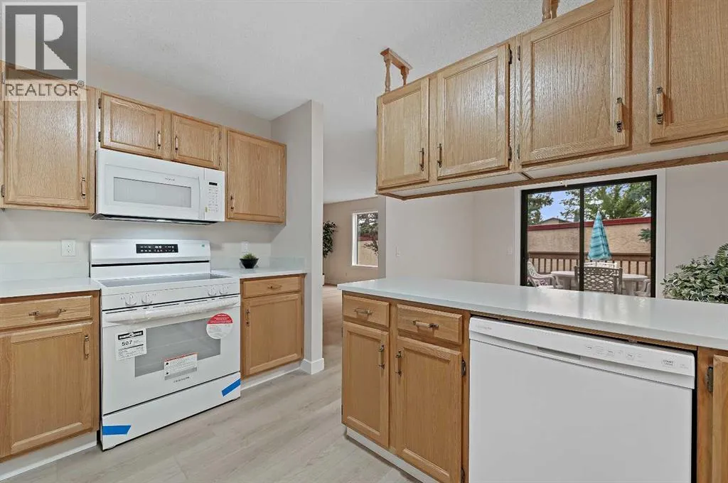 Fantastic New Pricing - $479,900!Beautifully Updated End-Unit Bungalow in a 55+ Adult Lifestyle Community.This larger-sized, thoughtfully refreshed bungalow townhome delivers the convenience, comfort, and community that define exceptional adult living. With true main-floor living, modern updates throughout, and an end-unit position that maximizes natural light and privacy, this home offers a compelling value proposition at its new price.The updated kitchen features newer appliances, quartz countertops, new blinds, and dual windows over the corner sink, creating a bright, functional workspace. The adjoining eating nook opens to a sunny south-facing deck with a powered awningâperfect for morning coffee, afternoon reading, or hosting friends.The spacious living and dining area accommodates full-sized furniture and can function as an open great room or as separate formal spaces. Two main-floor bedrooms include a primary suite with a private ensuite, plus a second full bathâideal for guests or a dedicated office. Both bathrooms have refreshed fixtures, taps, and toilets for a clean, modern feel.Major updates deliver peace of mind: luxury vinyl plank flooring, fresh interior paint, quartz counters, new appliances, updated plumbing fixtures, new blinds, and full Poly-B replacement with PEX. This is truly a move-in-ready home. Main-floor laundry and a single attached garage with wheelchair lift ensure everyday ease and accessibility.The unfinished lower level provides outstanding flexibilityâuse it for organized storage, a workshop or craft area, or develop it later to suit your needs.The complex is purpose-built for 55+ living, offering quiet streets, well-maintained grounds, and a strong sense of community. The Hacienda Clubhouse hosts regular activities and gatherings, making it easy to stay social and engaged. Shopping and essential services are close by, providing convenience without compromising the peaceful setting.If youâre looking to simplify without downsi zing your quality of life, this updated end-unit bungalow delivers exceptional value, comfort, and connection. (id:27476)