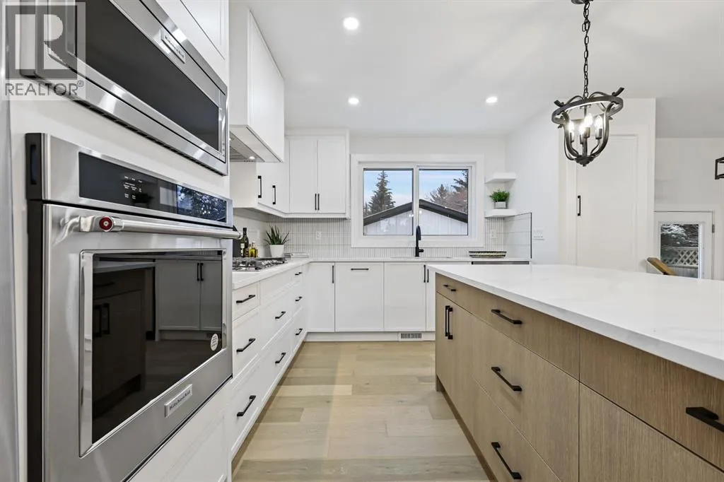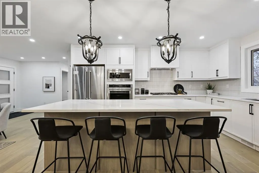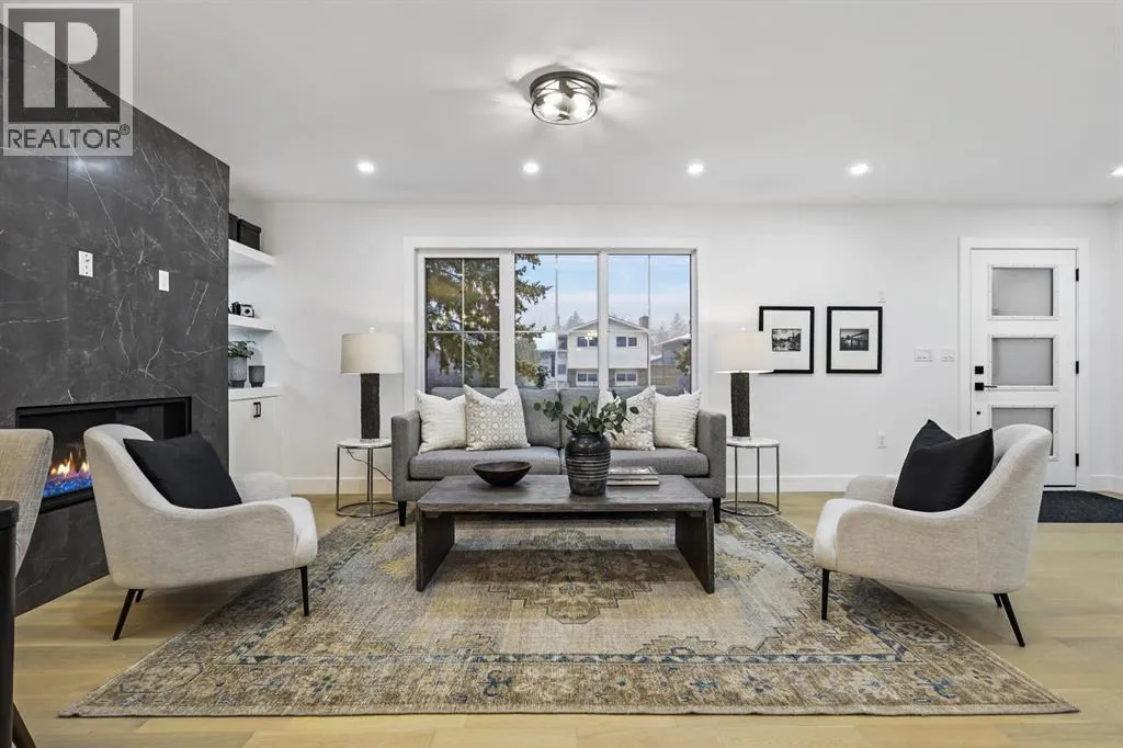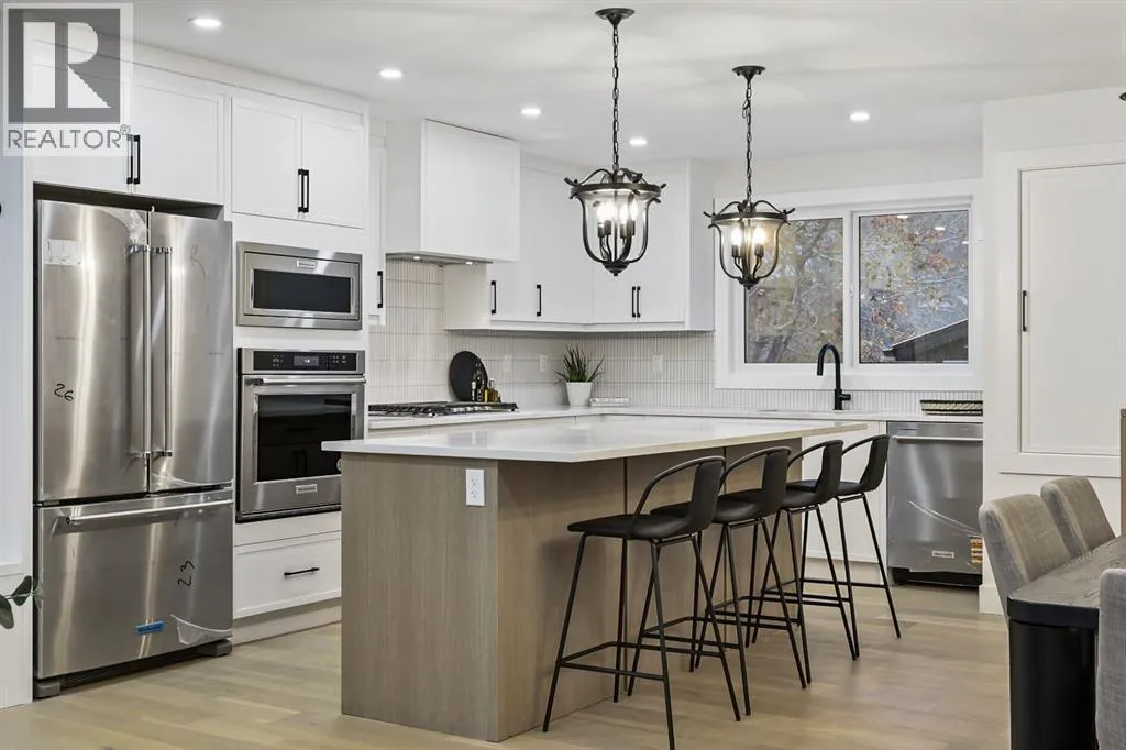Welcome to this stunning, fully renovated bungalow on a large lot in the desirable, family-friendly community of Silver Springs âa quiet, tree-lined neighborhood steps from schools, public transportation, shopping, and countless amenities. This beautifully renovated 4-bedroom, 3-bathroom home offers over 2,300 sq ft of finished living space, thoughtfully designed with clean lines, neutral colors and warm, natural materials throughout. Exceptional curb appeal provides pride of ownership which continues onto the picturesque entry. The main floor showcases engineered hardwood flooring, decorative lit niches and a stylish gas fireplace. The gourmet kitchen is a chefâs dream with quartz countertops, custom cabinetry, an oversized sit-up island, loads of cupboard space, a full suite of premium appliances including a 5-burner gas cook top with a built-in oven and a formal dinning room. The primary bedroom provides a tranquil retreat with designer lighting, spacious walk-in closet, and a spa-like ensuite featuring a double vanity, custom glass shower with rain head, and heated floors. A second bedroom and full bathroom complete the main level. Downstairs, the fully finished lower level is perfect for extended family or entertainment. It features two large bedrooms, a wet bar, a media feature wall, a full 4pc bathroom, and a separate play/gaming/office space. A brand new Electrolux washer/dryer adds to the convenience in your own laundry room. The fully fenced, landscaped yard offers mature trees, perfect for pets, kids, and entertaining. The oversized double detached garage is a true standout. Additional upgrades include: ⢠Hardy board siding ⢠New high-efficiency furnace & Hot water tank ⢠All-new electrical and plumbing ⢠All new windows throughout. Located less than 5 minutes to Stoney Trail, Crowchild Trail, and surrounded by scenic walking/biking paths, and Edworthy Parkâthis home truly blends style, comfort, and convenience. Perfect for families, or anyone seeking a turnkey property with premium finishes and functional flexibility. Donât miss out on this exceptional Buy ! (id:27476)