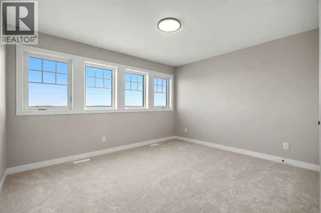 Welcome to the brand new Elliot by Broadview Homes, a thoughtfully designed home offering a side entrance, walk-in closets in every bedroom, and a bonus room on the upper level â all backed by certified Alberta New Home Warranty. Located in Hotchkiss, one of southeast Calgaryâs newest and fastest-growing communities, this home pairs modern comfort with smart, family-focused living. Step inside from the covered front porch and past a spacious flex room, ideal for a home office, play area, or quiet reading spot. The open concept kitchen features a central island and generous cabinetry, flowing naturally into the dining nook and large great room with an electric fireplace. A convenient half bath and a well planned rear entry with a large closet complete the main level. The side entrance and basement rough in provide flexibility for future lower level development. Upstairs, two secondary bedrooms each include walk in closets and are separated by a central bonus room, creating privacy and functional space for work or relaxation. A dedicated laundry room adds everyday convenience. The spacious primary suite includes a large walk in closet and a private ensuite with a tub and shower combination. Hotchkiss offers mountain vistas, expansive green spaces, and boardwalks around a 30 acre wetland. Future community plans include parks, gathering areas, schools, and commercial conveniences. Quick access to Stoney Trail and 22X provides easy connections to shopping, South Health Campus, the Seton YMCA, and more. Experience fresh, modern living in one of southeast Calgary's newest planned communities. (id:27476)