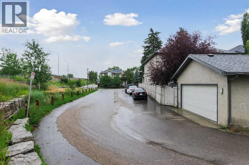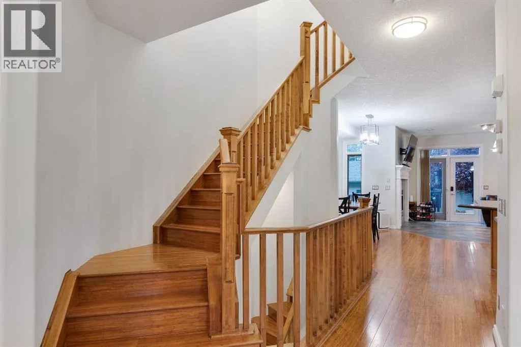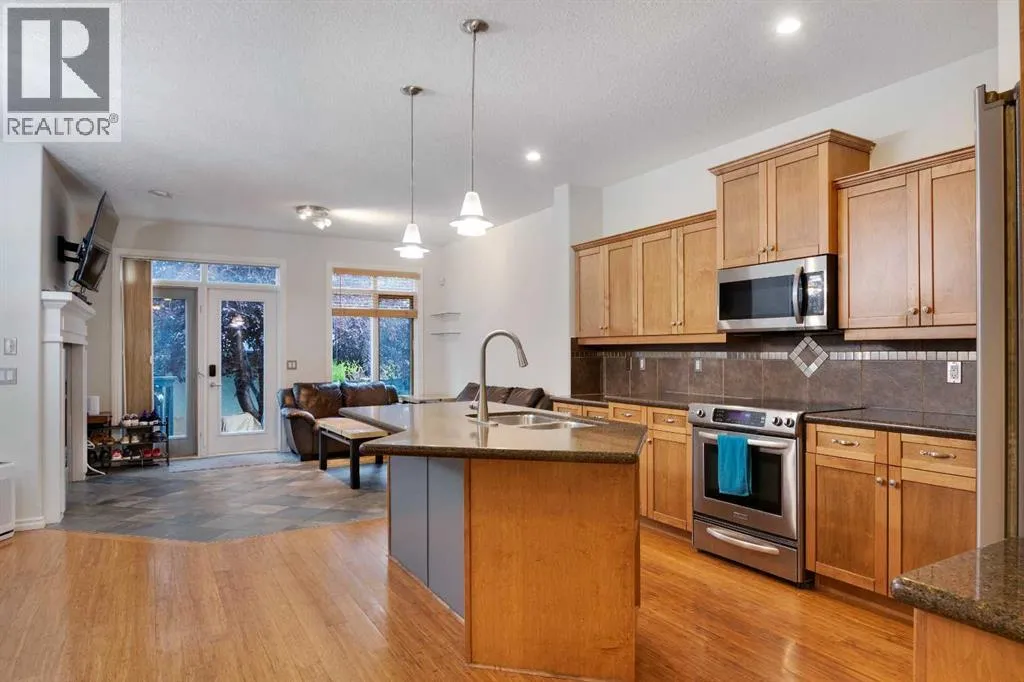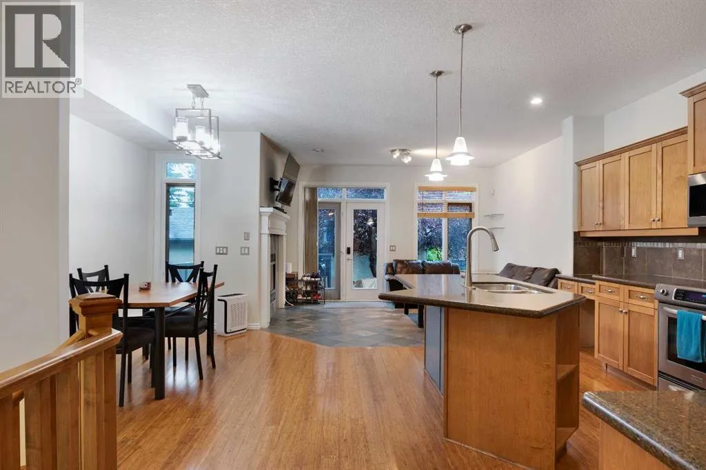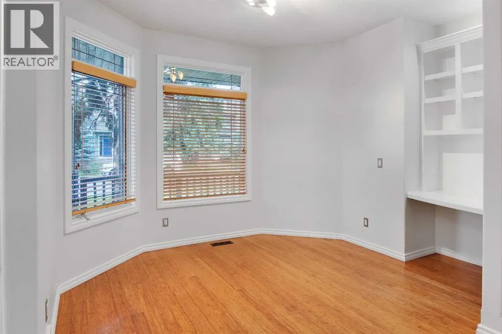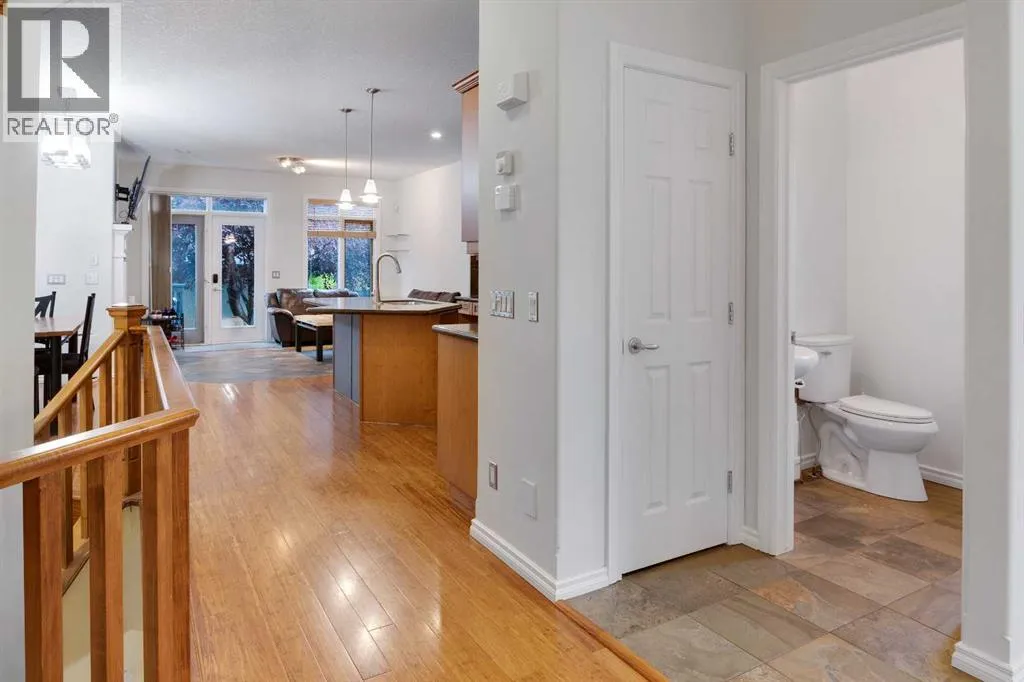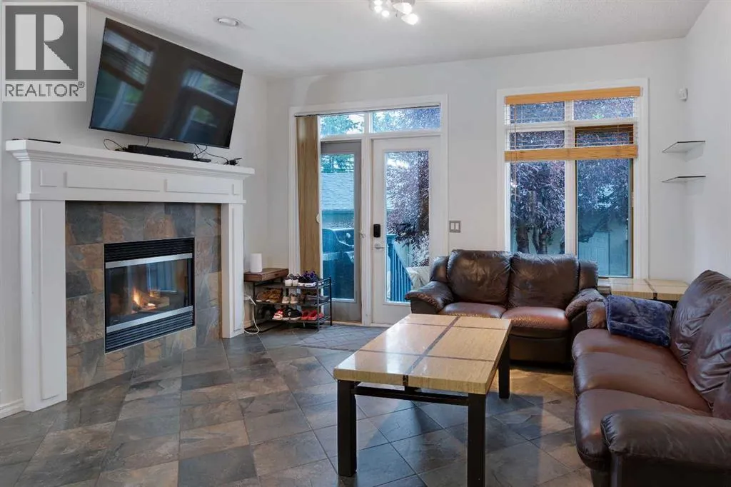 You wonât find a more convenient location, this home truly has it all!Tucked away on a quiet cul-de-sac and situated on a desirable corner lot, this fully finished semi-detached home (with no condo fees) is just steps from restaurants, shops, parks, schools, transit, and offers quick access to Crowchild Trail.The charming stucco and stone exterior, welcoming front porch, and attractive curb appeal make a lasting first impression. Inside, the main floor features a bright, open-concept layout with 9-foot ceilings, rich bamboo flooring, and a cozy gas fireplace. A front den offers flexible space for a home office or reading nook.The well-appointed kitchen boasts maple cabinetry, granite countertops, stainless steel appliances, a built-in workstation, corner pantry, and updated sink and faucet. A convenient half bath completes the main level.Upstairs, a skylight fills the space with natural light. Youâll find a laundry room, a 4-piece main bathroom, and two bedrooms, including a spacious primary retreat with vaulted ceilings, a built-in bench with storage, and a private 4-piece ensuite.The fully finished basement is warmed by in-floor heating and offers a large rec room, full bathroom, and a third bedroom, perfect for guests or additional living space. Comfort features include central air conditioning and central vacuum.Step outside to enjoy the sunny, fenced backyard with a deck and gas line for your BBQ. The insulated double detached garage provides secure parking and additional storage.Recent Upgrades Include:â¢Hot water tank (2019)â¢Fridge, dishwasher & range (2018â2020)â¢Kitchen sink (2020)â¢Humidifier (2024)â¢Washer/dryer, kitchen faucet, microwave & main-floor toilet (2025)This move-in-ready home offers comfort, style, and unbeatable convenience. Donât miss your chance, book your showing today! (id:27476)