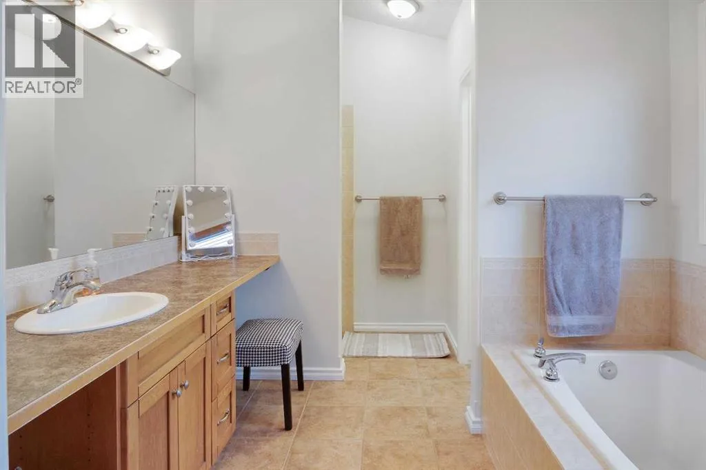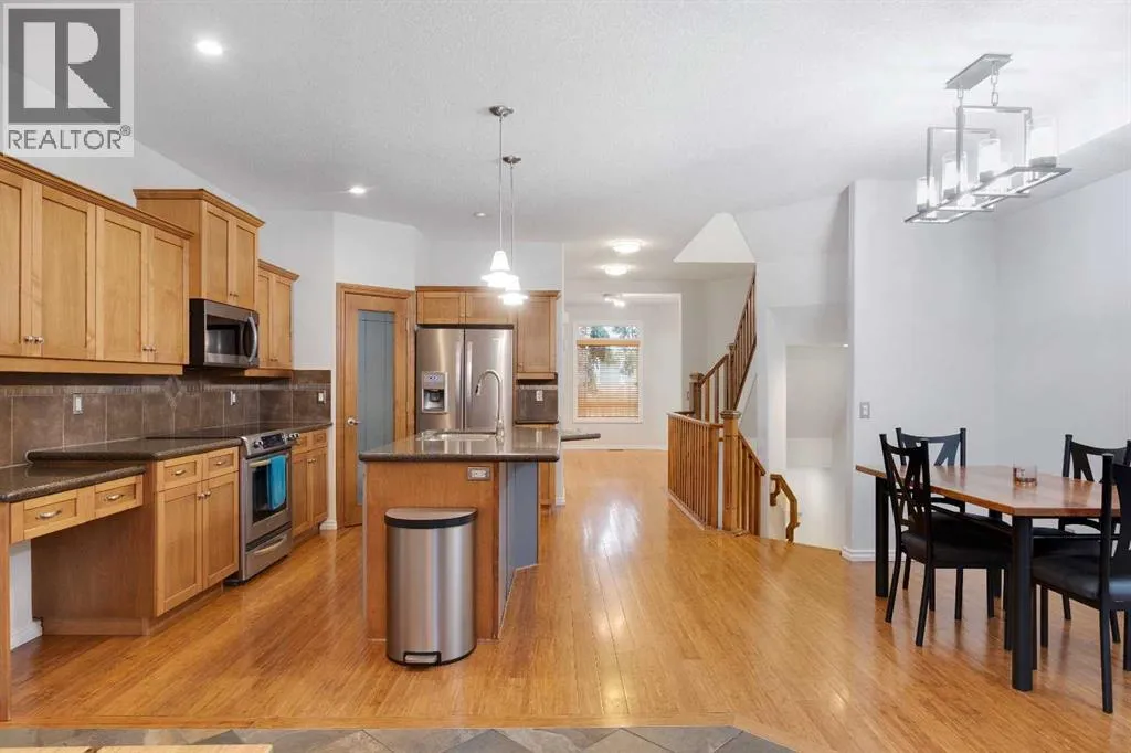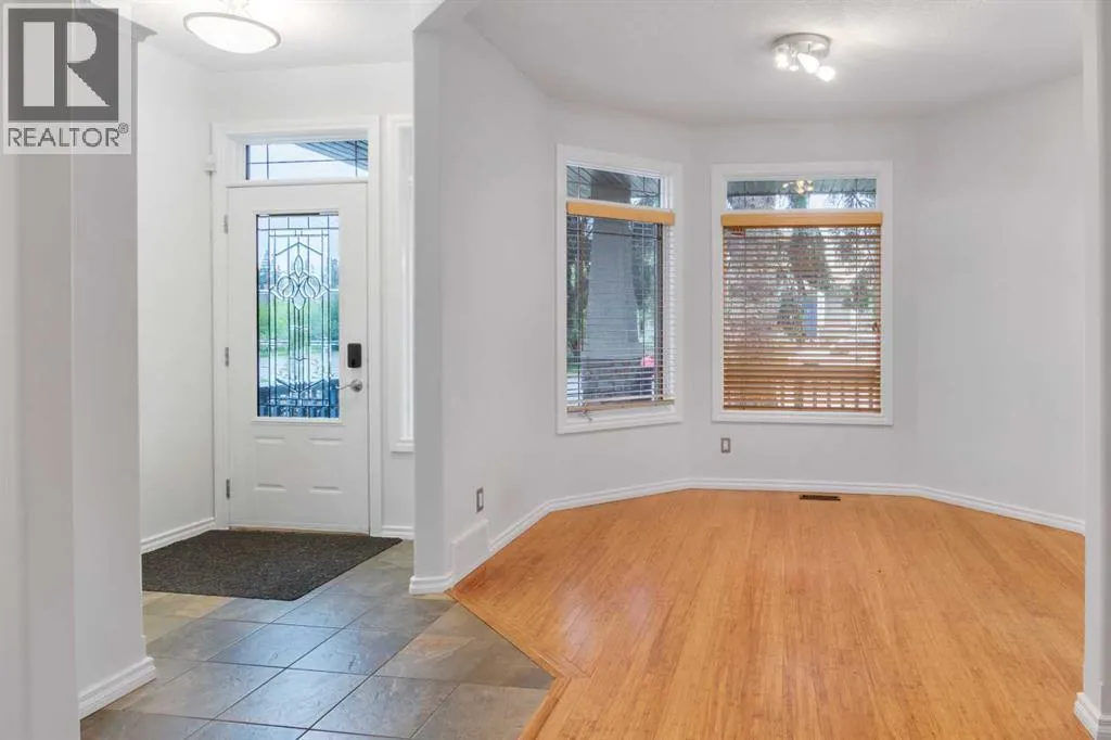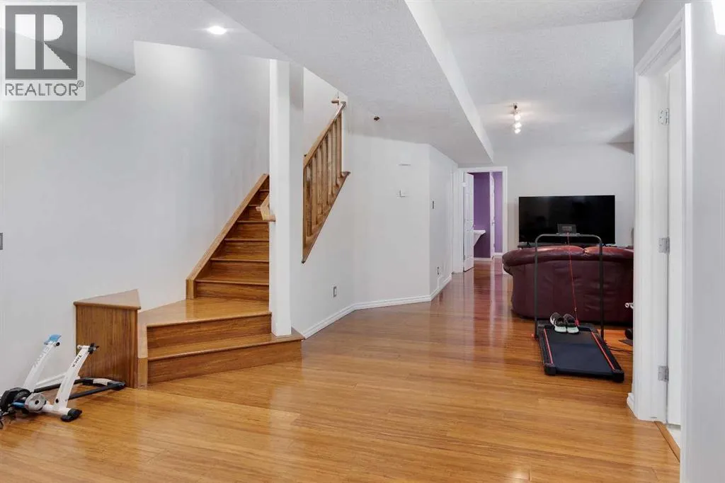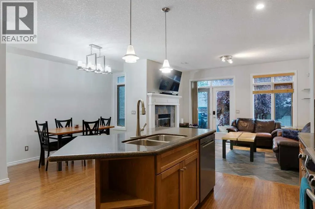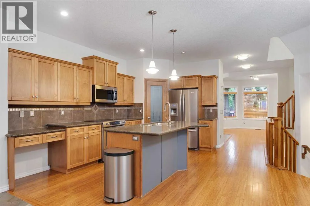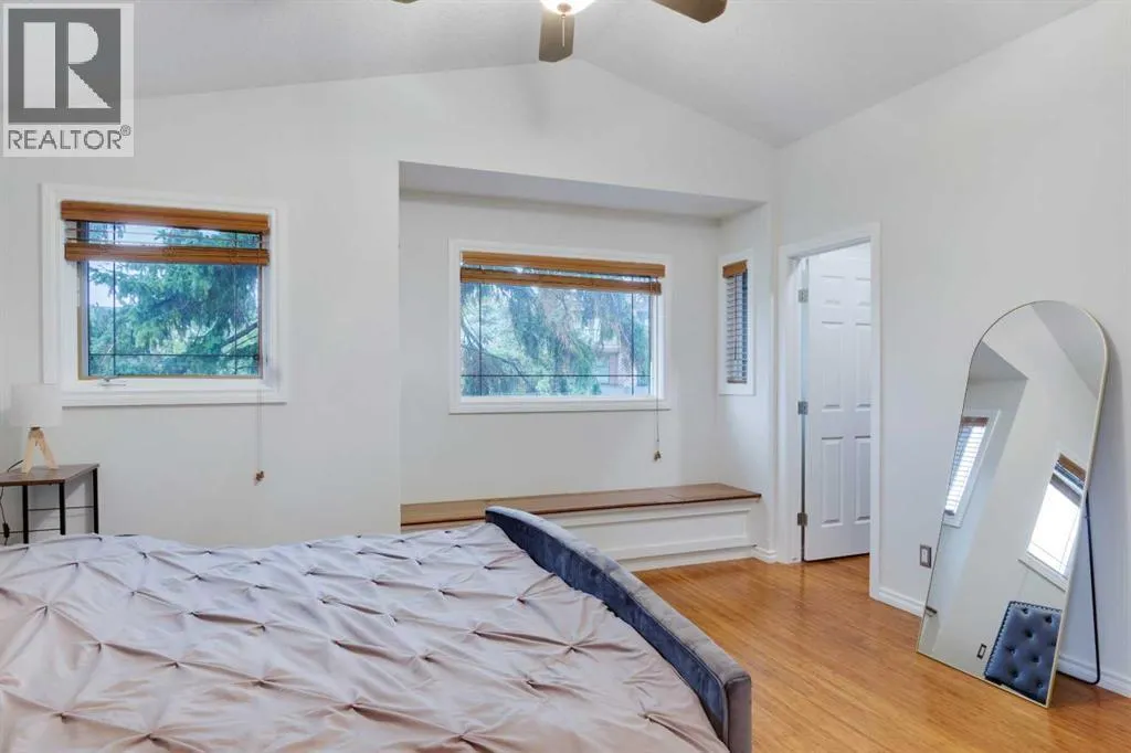 You wonât find a more convenient location, this home truly has it all!Tucked away on a quiet cul-de-sac and situated on a desirable corner lot, this fully finished semi-detached home (with no condo fees) is just steps from restaurants, shops, parks, schools, transit, and offers quick access to Crowchild Trail.The charming stucco and stone exterior, welcoming front porch, and attractive curb appeal make a lasting first impression. Inside, the main floor features a bright, open-concept layout with 9-foot ceilings, rich bamboo flooring, and a cozy gas fireplace. A front den offers flexible space for a home office or reading nook.The well-appointed kitchen boasts maple cabinetry, granite countertops, stainless steel appliances, a built-in workstation, corner pantry, and updated sink and faucet. A convenient half bath completes the main level.Upstairs, a skylight fills the space with natural light. Youâll find a laundry room, a 4-piece main bathroom, and two bedrooms, including a spacious primary retreat with vaulted ceilings, a built-in bench with storage, and a private 4-piece ensuite.The fully finished basement is warmed by in-floor heating and offers a large rec room, full bathroom, and a third bedroom, perfect for guests or additional living space. Comfort features include central air conditioning and central vacuum.Step outside to enjoy the sunny, fenced backyard with a deck and gas line for your BBQ. The insulated double detached garage provides secure parking and additional storage.Recent Upgrades Include:â¢Hot water tank (2019)â¢Fridge, dishwasher & range (2018â2020)â¢Kitchen sink (2020)â¢Humidifier (2024)â¢Washer/dryer, kitchen faucet, microwave & main-floor toilet (2025)This move-in-ready home offers comfort, style, and unbeatable convenience. Donât miss your chance, book your showing today! (id:27476)