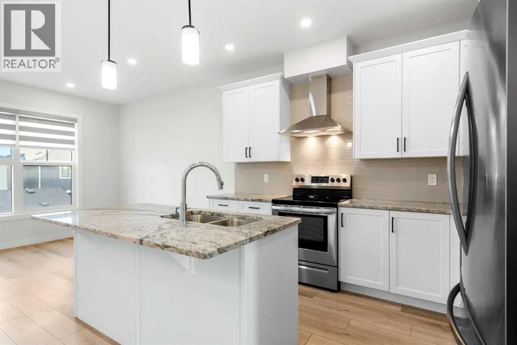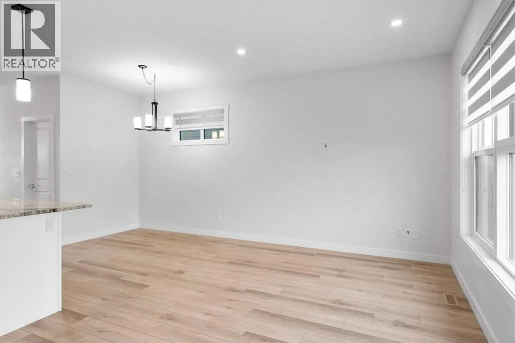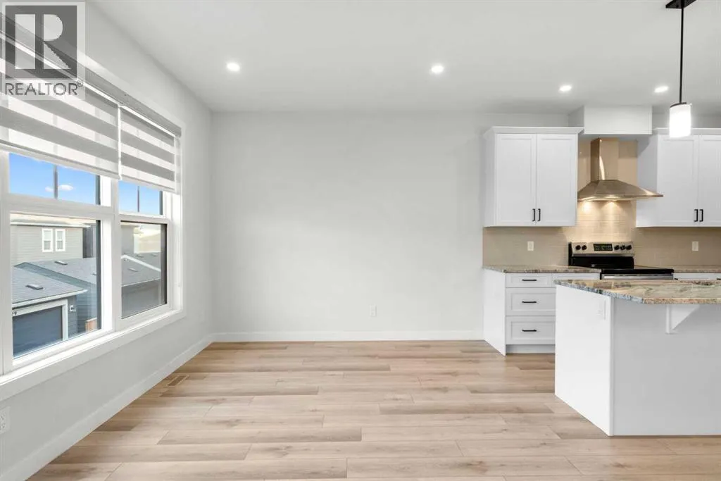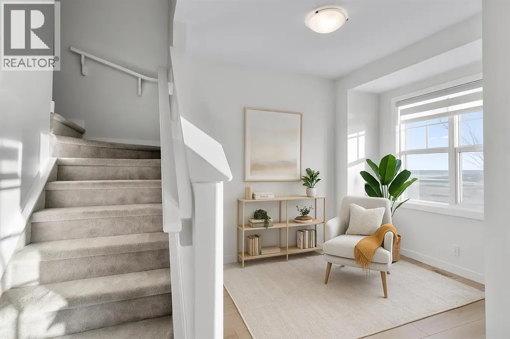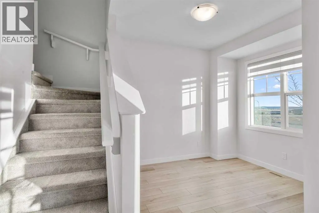 Welcome to Alpine Park, one of Calgaryâs most thoughtfully designed new communities where walkability, green spaces, and a strong sense of connection come together. This end-unit, 3-storey townhouse stands out with no condo fees, extra windows, and bright, thoughtfully planned living spaces. The main level features a versatile den/flex space, perfect for a home office, gym, or creative studio, along with access to the double attached garage. There is also a lower mechanical/storage basement ideal for seasonal items or organization. Up on the second level, youâll find the heart of the home. 9 ft ceilings, large south-facing windows, and luxury vinyl plank flooring create a warm and inviting atmosphere. The kitchen is beautifully appointed with stone countertops, stainless steel appliances, electric stove, built-in microwave, hood fan, and a deep pantry offering exceptional storage. The open-concept living and dining areas provide ample room for everyday living and entertaining. Just off the kitchen is an additional living area/flex room, perfect as a reading nook, kidsâ zone, second office, or lounge space, with access to a private balcony for morning coffee or quiet evenings. A convenient 2-piece powder room completes this floor. The top level is dedicated to rest and comfort with three well-sized bedrooms, including a spacious primary suite with a walk-in closet and 4-piece ensuite. The two additional bedrooms share a full 4-piece bathroom, and the laundry room is a full room, offering storage and functionality right where you need it. Outside your door, Alpine Park offers beautiful architecture, walkable pathways, future schools & village-style retail, and stunning green spaces. Plus, enjoy unbeatable convenience with quick access to Stoney Trail, making it easy to get anywhere in the city, just minutes to Costco, Fish Creek Park, and major shopping & dining destinations. This is modern living with space to grow, flexibility to live your way, and no condo fees, a rare combination in one of Calgaryâs fastest-growing communities. (id:27476)