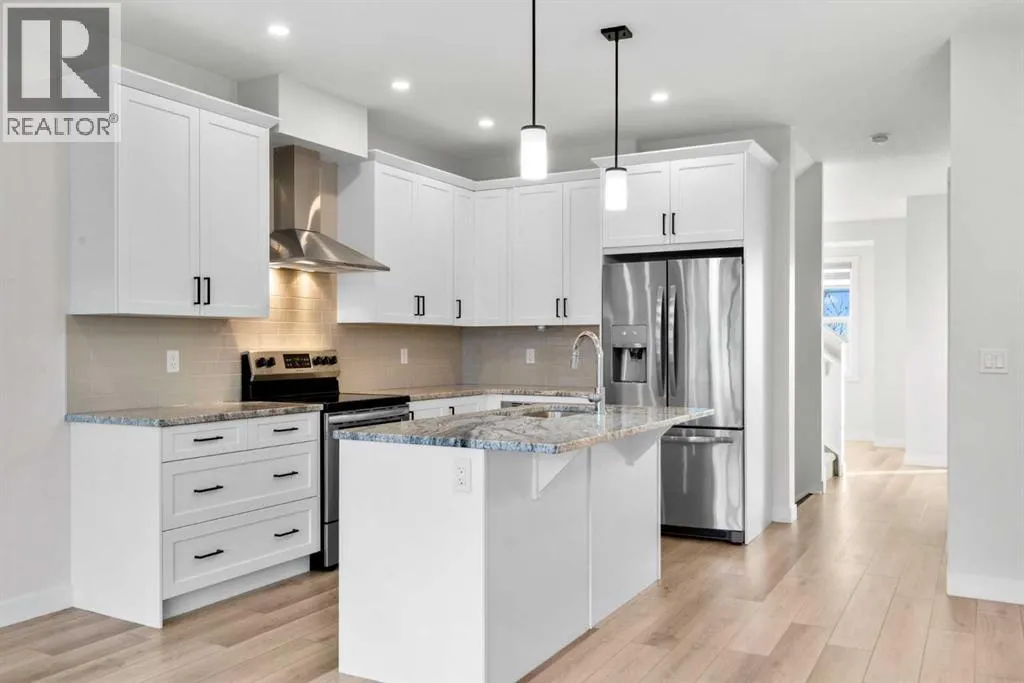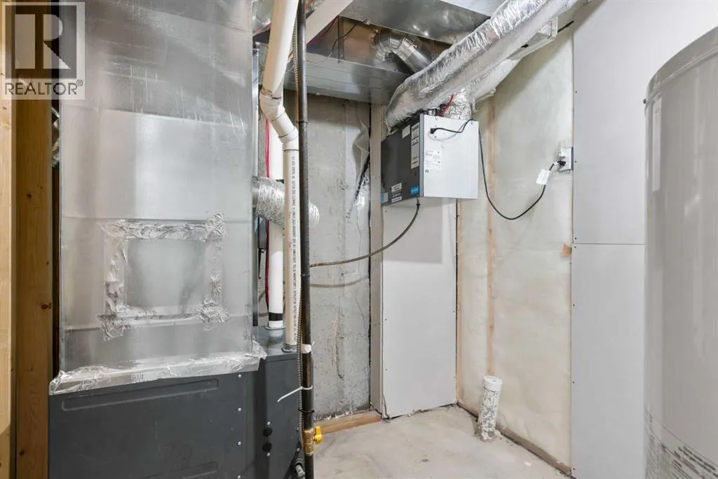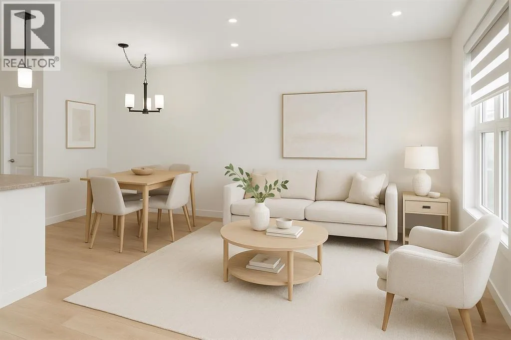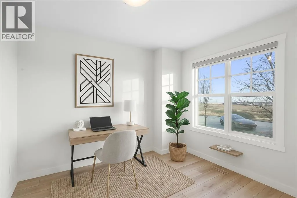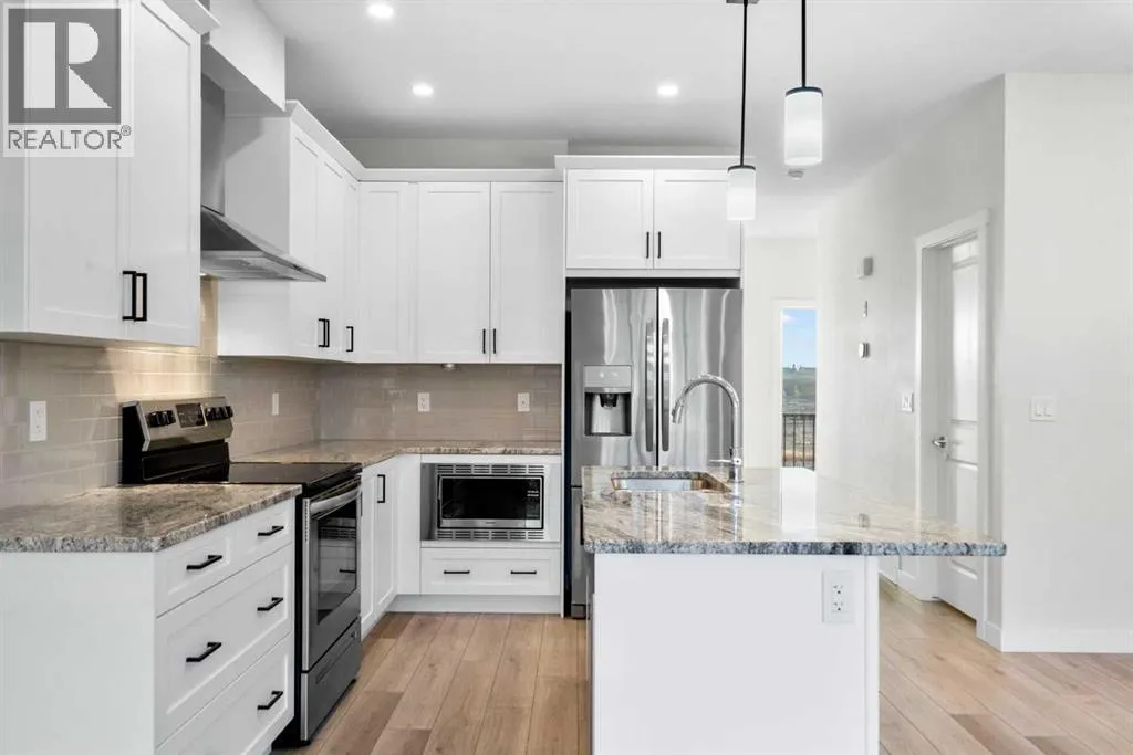 Welcome to Alpine Park, one of Calgaryâs most thoughtfully designed new communities where walkability, green spaces, and a strong sense of connection come together. This end-unit, 3-storey townhouse stands out with no condo fees, extra windows, and bright, thoughtfully planned living spaces. The main level features a versatile den/flex space, perfect for a home office, gym, or creative studio, along with access to the double attached garage. There is also a lower mechanical/storage basement ideal for seasonal items or organization. Up on the second level, youâll find the heart of the home. 9 ft ceilings, large south-facing windows, and luxury vinyl plank flooring create a warm and inviting atmosphere. The kitchen is beautifully appointed with stone countertops, stainless steel appliances, electric stove, built-in microwave, hood fan, and a deep pantry offering exceptional storage. The open-concept living and dining areas provide ample room for everyday living and entertaining. Just off the kitchen is an additional living area/flex room, perfect as a reading nook, kidsâ zone, second office, or lounge space, with access to a private balcony for morning coffee or quiet evenings. A convenient 2-piece powder room completes this floor. The top level is dedicated to rest and comfort with three well-sized bedrooms, including a spacious primary suite with a walk-in closet and 4-piece ensuite. The two additional bedrooms share a full 4-piece bathroom, and the laundry room is a full room, offering storage and functionality right where you need it. Outside your door, Alpine Park offers beautiful architecture, walkable pathways, future schools & village-style retail, and stunning green spaces. Plus, enjoy unbeatable convenience with quick access to Stoney Trail, making it easy to get anywhere in the city, just minutes to Costco, Fish Creek Park, and major shopping & dining destinations. This is modern living with space to grow, flexibility to live your way, and no condo fees, a rare combination in one of Calgaryâs fastest-growing communities. (id:27476)