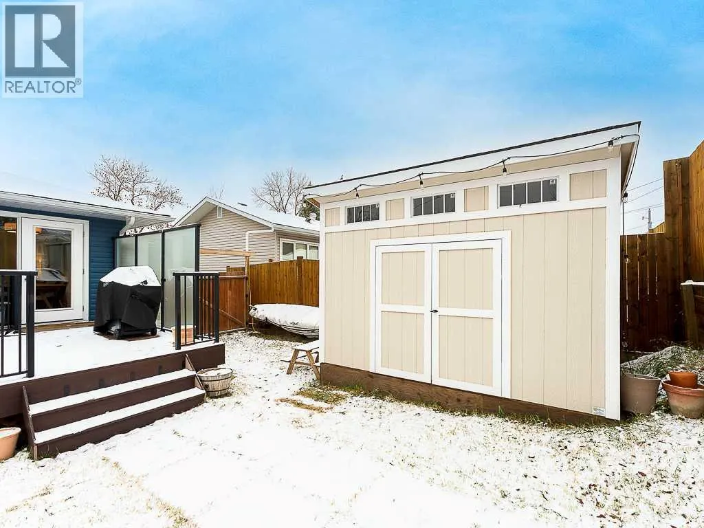 Beautifully Renovated Bungalow on a Huge Lot in the Heart of ThorncliffeDiscover striking curb appeal and timeless charm on this quiet, tree-lined street. This classic bungalow sits on a large lot and has been extensively renovated from top to bottom, offering over 1,800 sq. ft. of total developed living space. Truly move-in ready, this home blends modern comfort with warm, inviting character.The main level features bright, expansive windows that fill the living and dining areas with natural light. The chef-inspired kitchen is a showstopper, boasting custom full-height cabinetry, under-cabinet lighting, high-end stainless steel appliances, a large granite island with seating, and a built-in beverage fridge â perfect for entertaining family and friends. Original hardwood floors flow throughout the main living spaces, leading to a spacious primary bedroom, two additional bedrooms, and a beautifully updated 4-piece bathroom. Step outside to your private, park-like backyard â complete with a large composite deck, ample green space for kids and pets, and even RV parking along the side driveway and parking pad at the back with alley access. The fully developed lower level offers a large family and recreation room, a flex space, a fourth bedroom, a stylishly renovated 3-piece bath, and a generous storage area.Everything has already been done for you! â simply move in and enjoy. Perfectly located just 15 minutes to downtown, steps from schools, Safeway, Superstore, and Nose Hill Park. This amazing inner-city home combines space, style, and location â nothing to do but unpack and start living! Call today to book your private showing! (id:27476)