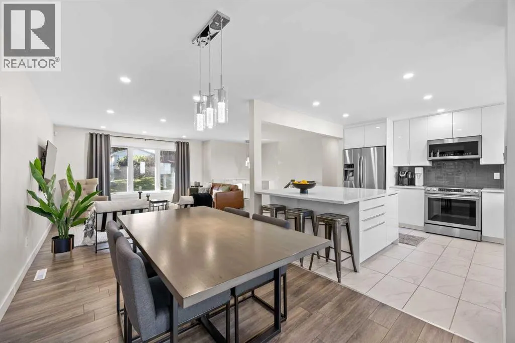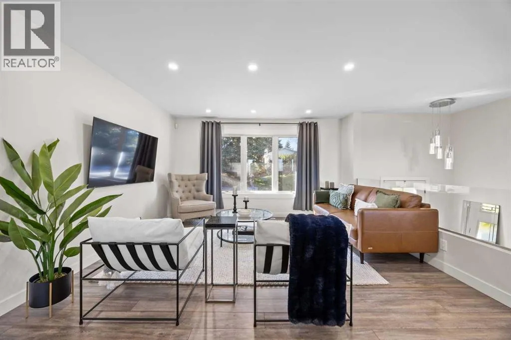 Welcome to this STUNNING, fully renovated family home in the heart of Canyon Meadows!Quietly tucked away on a peaceful street and just steps from schools, parks, and outdoor rinks, this beautifully updated 4-bedroom, 2-bath bi-level offers nearly 2,200 sq. ft. of stylish, functional living space designed for modern family living.From the moment you arrive, youâll notice the incredible curb appeal â the sleek acrylic stucco exterior, updated roof, soffits, fascia, eaves, and fresh landscaping give this home a polished, contemporary look. Step inside to discover a bright, open-concept layout filled with natural light, showcasing a complete transformation where every detail has been thoughtfully updated â including windows, doors, LED pot lighting, high-efficiency furnace, hot water tank, electrical, and new A/C for year-round comfort.The heart of the home is the custom designer kitchen, featuring a large quartz island, stainless steel appliances, high-gloss cabinetry with soft-close doors, and beautiful custom tile finishes â perfect for entertaining or family gatherings. The seamless flow into the spacious living and dining areas creates an inviting atmosphere ideal for both everyday living and special occasions.Downstairs, the fully developed lower level offers even more versatile living space â perfect for a family room, games area, or guest retreat â along with two additional bedrooms and a full bathroom.With all the major updates complete and every space finished to perfection, this home is truly move-in ready. Located in one of Calgaryâs most desirable communities, youâll love the perfect blend of comfort, style, and convenience.Donât miss your opportunity to call Canyon Meadows home â book your private showing today! (id:27476)