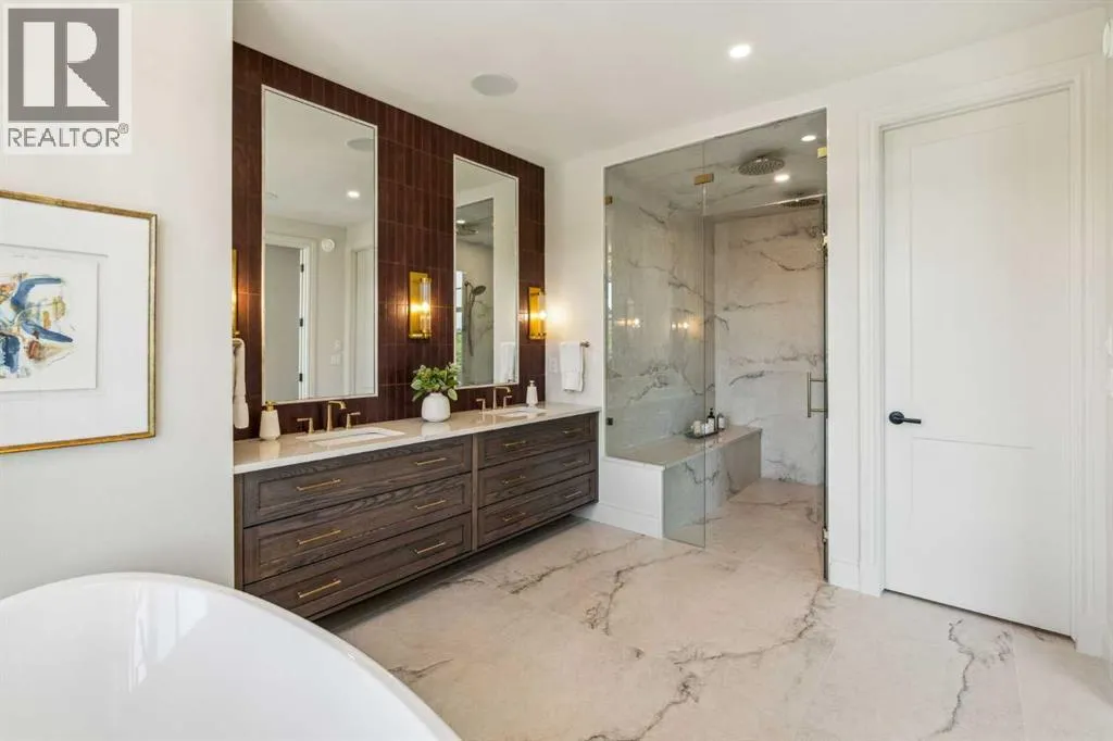 *Open House! Sat Nov 15th 2:00-4:00pm* Hello Georgia! Homes by Sorensen proudly presents our latest marvel: a Net Zero Energy single-family showstopper, The Georgia. Nestled on one of Parkdale's most coveted streets, this lot is 38-foot in width and an impressive 150-foot in depth, offering a sprawling canvas for your dreams. Step into luxury as you enter the expansive main floor, where privacy meets an inviting open-concept design. The heart of the home, a central kitchen, beckons gatherings with its elegant separation from the decadent dining area. Beyond, the breathtaking living room with white beams and a sliding back door, seamlessly blending indoor and outdoor living. Your living room is finished off with a home office and powder room, behind hidden doors, concealed with timeless wall moldings. Discover a haven upstairs, where the principal bedroom steals the spotlight with its majestic barrel arch ceiling echoing the allure of the south-facing window. Unwind in the spa-like ensuite, where double doors usher you into a realm of opulence, featuring dual sinks, a freestanding tub, a spacious steam shower, and a water closet. Abundant storage awaits in the principal walk-in closet, with convenient access to the laundry room. The upper level also hosts three generous secondary bedrooms, linen storage, and a thoughtfully designed bathroom with separate shower and toilet areas, perfect for busy mornings. Descend into the lower level, where endless entertainment awaits in the expansive rec room, complete with a timeless wet bar featuring an arch and antiqued mirror. A fifth bedroom and dedicated home gym offer versatile spaces for guests, fitness, or hobbies. Unique to this level is a spacious and beautifully functional double mudroom, leading directly into the MASSIVE attached garage, designed with soaring ceiling heights for additional storage, gear, or even a lift. Outside, the oversized patio leads to a sprawling backyard oasis, enveloped in privacy, thanks to th e absence of rear neighbors. With easy access to Shaganappi Trail, 16th Ave, Foothills Hospital, UofC, the River, and Downtown, this home offers unparalleled convenience. And let's not forget, it's a Net Zero Energy marvel! Meticulously crafted with superior wall assemblies, an insulated concrete foundation (ICF), a complete solar setup, an air source heat pump, rough-in air-to-water heated basement slab, FULL SOLAR ARRAY and more. Sustainability meets sophistication. Contact your Realtor today to embark on a journey of luxury and sustainability! (id:27476)