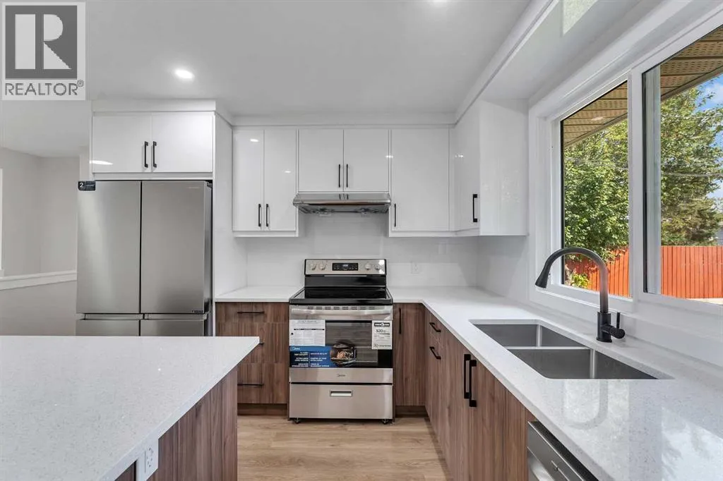Welcome to this FULLY RENOVATED SPACIOUS HOME. Close to schools and playgrounds! Great for young families or an AMAZING INVESTMENT opportunity. Meticulously upgraded from top to bottom, showcasing NEW FLOORING, WINDOWS, EXTERIOR/INTERIOR DOORS, INTERIOR FINISHINGS, BATHROOMS and sleek contemporary lighting. The open-concept main level features a stylish kitchen equipped with NEW STAINLESS-STEEL appliances, BUILT IN MICROWAVE and an ISLAND WITH SEATING. Upstairs, three generously sized bedrooms and a beautifully updated three-piece bath provide comfortable family living. The lower level offers two additional bedrooms, SEPERATE ENTRANCE, with another modern three-piece bath, and a spacious living area. This home needs nothing!! All NEW APPLIANCES. A fenced yard and private deck create an inviting space for relaxation or summer gatherings, all set within a landscaped setting. Situated near parks, playgrounds, schools, and shopping, this move-in-ready home may be the right fit for you! (id:27476)