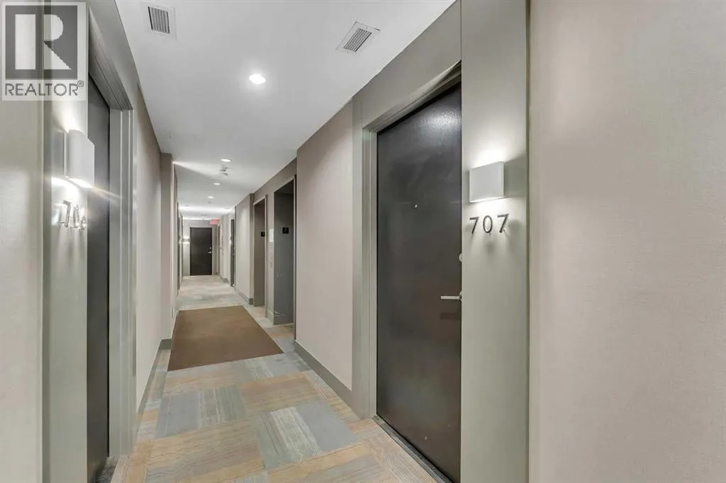 Modern Urban Living in East Village ! Unit 707, FIRST BuildingWelcome to Unit 707 in the sought after "FIRST"building, where downtown living meets comfort and style. This beautiful 1 bedroom + office, 1.5 bath condo sits on the 7th floor and offers everything youâd want in a modern home. Whether youâre an investor looking for a solid rental or a professional wanting that perfect urban lifestyle.As you step inside, youâre greeted by a dedicated office space, ideal for working from home or keeping things organized. The open concept floor plan flows effortlessly into the gourmet kitchen, featuring sleek cabinetry, quartz countertops, and stainless steel appliances; the kind of space that makes cooking feel effortless and entertaining enjoyable.The living area is bright and spacious, framed by floor to ceiling windows that fill the home with natural light. From here, step out onto your private balcony and take in the energy of East Village, one of Calgaryâs most vibrant inner city communities.The primary bedroom is well sized, complete with a walk in closet and a modern ensuite bathroom with contemporary finishes. Thereâs also a half bath for guests, adding a touch of convenience and privacy.This unit also includes a titled underground parking stall (#158) and a private storage locker (#354) a rare combination that adds tremendous value.As a resident of the FIRST building, youâll enjoy an impressive list of amenities:A stunning rooftop lounge with full kitchen, BBQ patio, and panoramic river and city views-Fitness center and yoga studio-Meeting rooms, game areas, and a Wi-Fi café-Guest suites and 24-hour concierge/securityThe location couldnât be better, steps from the RiverWalk pathway, Superstore, Studio Bell, Downtown Library, Saddledome, and C-Train access. Everything you need is truly right outside your door.Currently rented until the end of March, this property offers flexible possession options. Perfect for both investors and owner occupiers. You can take over the lease and enjoy instant income, or move in once the tenancy ends. The current tenants are excellent and have maintained the unit with care.Bright, stylish, and perfectly located - Unit 707 at the FIRST building is an incredible opportunity to own in Calgaryâs East Village, where urban living and investment potential meet seamlessly. Book your showing with your favourite Realtor today ! (id:27476)