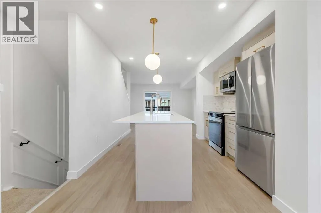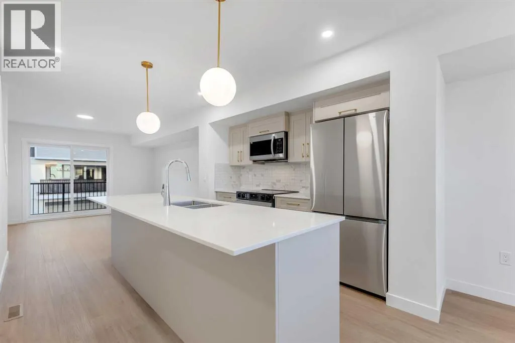 Welcome to your BRAND NEW 3-storey townhome in the vibrant community of Belmont, Calgary. This stunning home features 2 bedrooms, 2.5 bathrooms, and offers 1,358 sq.ft. of thoughtfully designed living space. The bright, open-concept main floor boasts a spacious living area with large windows, a modern kitchen with quartz countertops, full-height cabinetry, stainless steel appliances, and a cozy dining area thatâs perfect for everyday living or entertaining. Step out onto your private balcony to enjoy your morning coffee or evening sunsets.Upstairs, youâll find two generously sized bedrooms, each with its own full bathroom, plus a conveniently located upper-floor laundry. The entry level includes a tandem double attached garage, offering ample space for parking and storage.Located in Belmont, one of Calgaryâs fastest-growing communities, surrounded by scenic pond walkways, playgrounds, and parks. Just steps from a future commercial plaza featuring a Tim Hortons, daycare, gas station, and a bus stand right in front of the complex.Enjoy quick access to Stoney Trail, Macleod Trail, and the future LRT extension, making commuting easy. Pet and rental friendly, this home is perfect for first-time buyers or investors seeking modern living, great value, and a thriving community lifestyle. (id:27476)