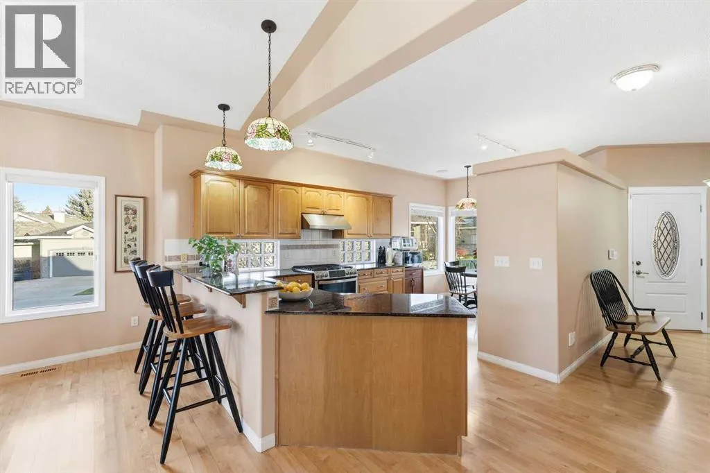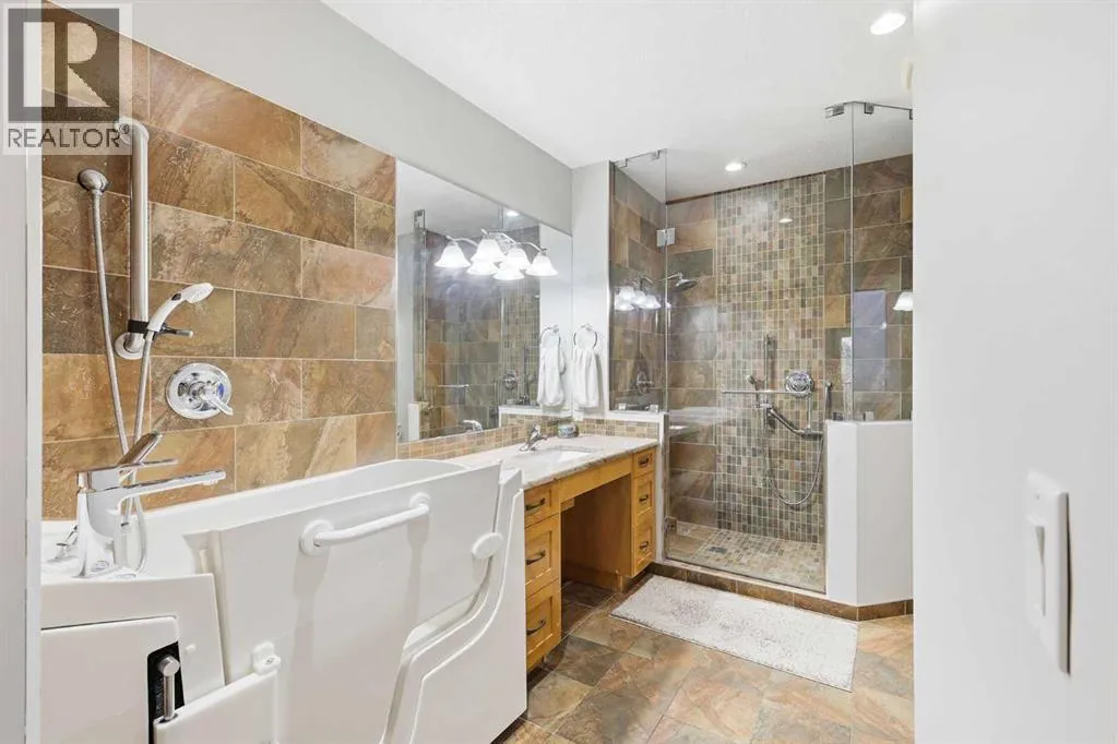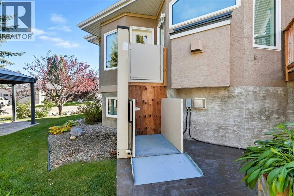 Welcome to this beautifully maintained and thoughtfully designed home offering over 2,600 developed square feet of comfortable, accessible living space. Designed with convenience and ease of mobility in mind, this home is perfect for buyers who value quality, functionality and independence. The best part - landscaping and snow removal is taken care of for $130 per month ($1560 paid yearly) as part of the Legacy Ridge HOA and the home is situated just steps to the scenic pathway system overlooking the Bow River. Step inside to find refinished hardwood floors and a warm, open atmosphere. The main floor features an office (formerly a bedroom), a convenient half bath and a large primary bedroom with an customized ensuite as well as a private patio offering a peaceful retreat. The bright kitchen is equipped with granite countertops, a dual fuel gas/electric stove, and a built-in pantry with pullout drawers for easy organization. The cozy living area offers a gas fireplace, creating an inviting space to relax or entertain guests. Accessibility and comfort are at the heart of this home. Thoughtful details such as swing-clear hinges for wider doorways, a walk-in tub, and built-in storage make daily living effortless. Enjoy full mobility throughout the property with the mobility elevator in the garage providing access to the main floor, and a second mobility elevator leading to the backyard, allowing you to enjoy every part of your home with ease both indoors and out. The lower level adds additional versatility with two additional bedrooms, a three-piece bathroom, another large family room with a second gas fireplace ideal for guests or visiting family. Additional features include: a tankless hot water system, high-efficiency furnace, air conditioning, aluminum roof installed in 2017, recently replaced doors and windows, and a water softener. The oversized double garage with an elevator, built-in speakers, and a charming gazebo in the backyard add both practicality and enjoyment. This exceptional property combines thoughtful design and true accessibility â offering the perfect balance of comfort and independence for those ready to simplify without compromise.Situated within the sought-after community of McKenzie Lake, youâll enjoy access to an exceptional lifestyle with amenities that go beyond the home itself. Residents here benefit from the private 43-acre lake and 18-acre park, offering summer activities like swimming, boating, paddle-boarding and fishing, and in colder months transformed into a winter wonderland with illuminated skating rinks and ice trails. The community association provides tennis and pickleball courts, beach volleyball, playgrounds and pathways. Don't miss this rare opportunity to live in Legacy Ridge of McKenzie Lake. (id:27476)