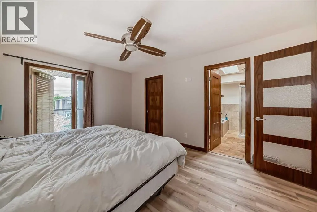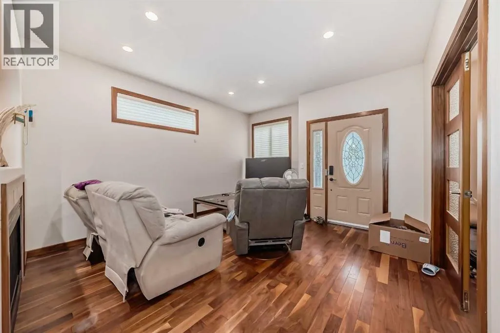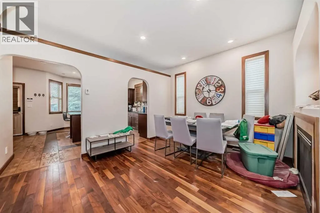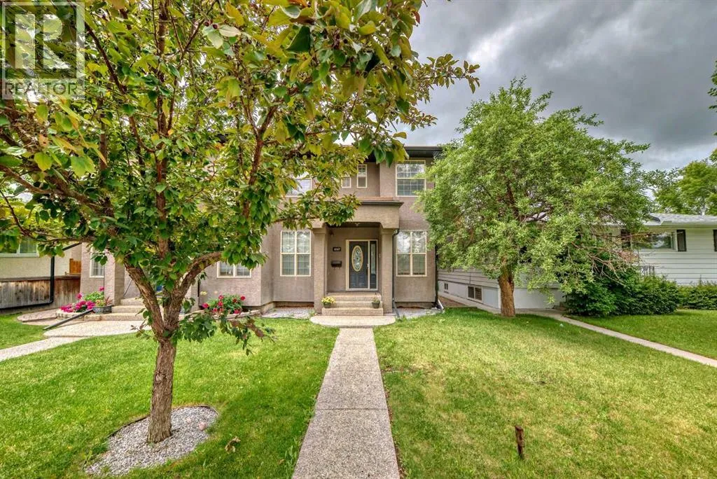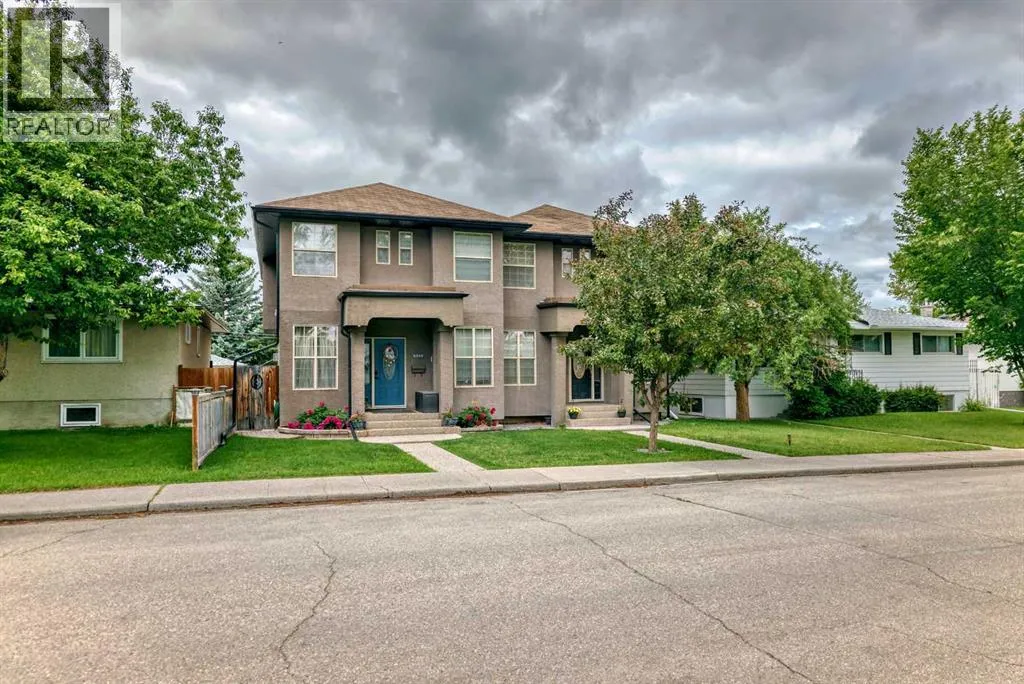 Here is your chance to own this duplex with No condo fee. Nestled in the heart of a quaint suburban neighborhood of Highland Park, this charming property exudes timeless elegance and modern comfort.Upon entering, the gleaming hardwood floors and abundance of natural light create a welcoming atmosphere. The living room, adorned with a two-sided fireplace, provides a cozy space to unwind, while French doors lead to a versatile flex room, perfect for a home office or children's play area. The dining room, adjacent to the fireplace, sets the stage for elegant gatherings, complemented by an expansive kitchen designed for culinary enthusiasts. Featuring a large center island, gas stove and double-door refrigerator, and plenty of counter space, this kitchen is both functional and stylish. An enclosed pantry adds extra storage convenience.Upstairs, a curved staircase leads to the master suite, a tranquil retreat complete with a custom walk-in closet, private balcony with sunset views, and a luxurious 5-piece ensuite featuring a skylight, double vanity, soaker tub, and separate shower. Two additional bright and spacious bedrooms share this level, along with a conveniently located laundry area. The finished basement offers additional living space with a rec room for movies and games, a fourth bedroom, another full bathroom, and ample storage. Outside, the west-facing backyard is perfect for enjoying sunny days on the full-width deck, surrounded by mature trees and a fenced grassy yard ideal for family activities. An insulated double detached garage provides parking convenience. Close to School, transit, shopping easy access to Centre street and 4th Street. Call to view before it's gone!. (id:27476)