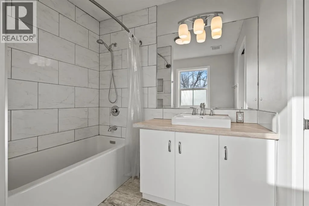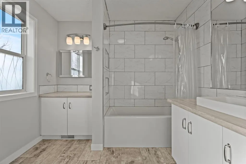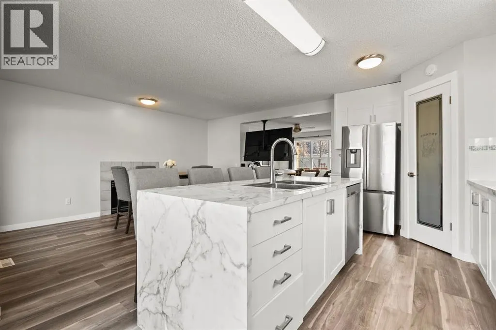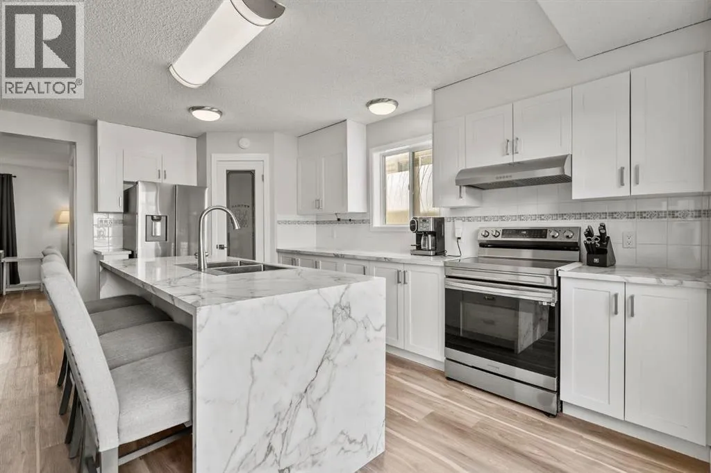 This home is perfectly situated on a tree lined street in the highly sought after community of Mckenzie Towne. As you approach you will notice the great curb appeal, with a welcoming front porch and a fully fenced front and backyard. The main floor offers a functional floorplan with fresh paint, and durable new hard surface flooring throughout. A redone gourmet kitchen is a focal point with timeless white cabinets that reach to the ceiling, an expansive island with waterfall counter and a corner pantry for additional storage. This looks onto a spacious dining room accented by a gas fireplace. Adjacent is the large living room. Off the back of the home is a full width deck, large green space including firepit, a hot tub and a detached double garage. As you head to the upper level you will notice the contemporary railing and new carpet. There are two well sized bedrooms, an updated 4pc bath, and the primary with a gorgeous redone ensuite plus walk in closet. The spa inspired ensuite has a large soaker tub shower combo, separate sink and makeup area. The fully completed lower level has a 3 pc bath and expansive rec room/ gym. This home has a lot to offer and is a must see. This home is the complete packageâlocated close to parks, schools, transit, shopping, the path systems along the pond and the vibrant charm of McKenzie Towneâs High Street. Schedule your private tour today. (id:27476)