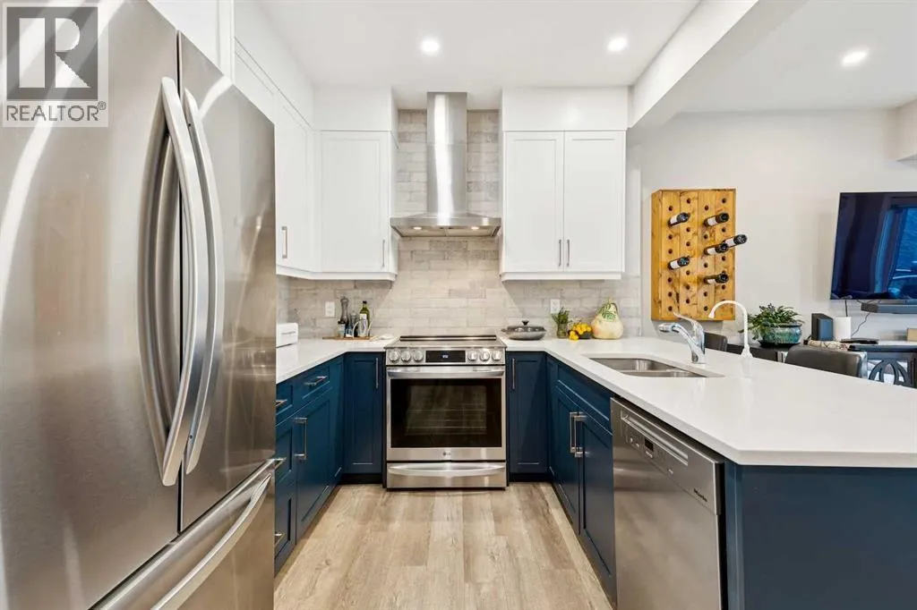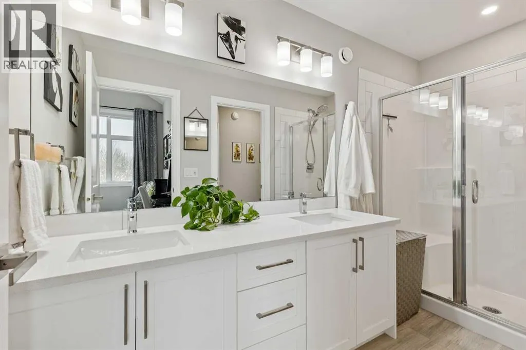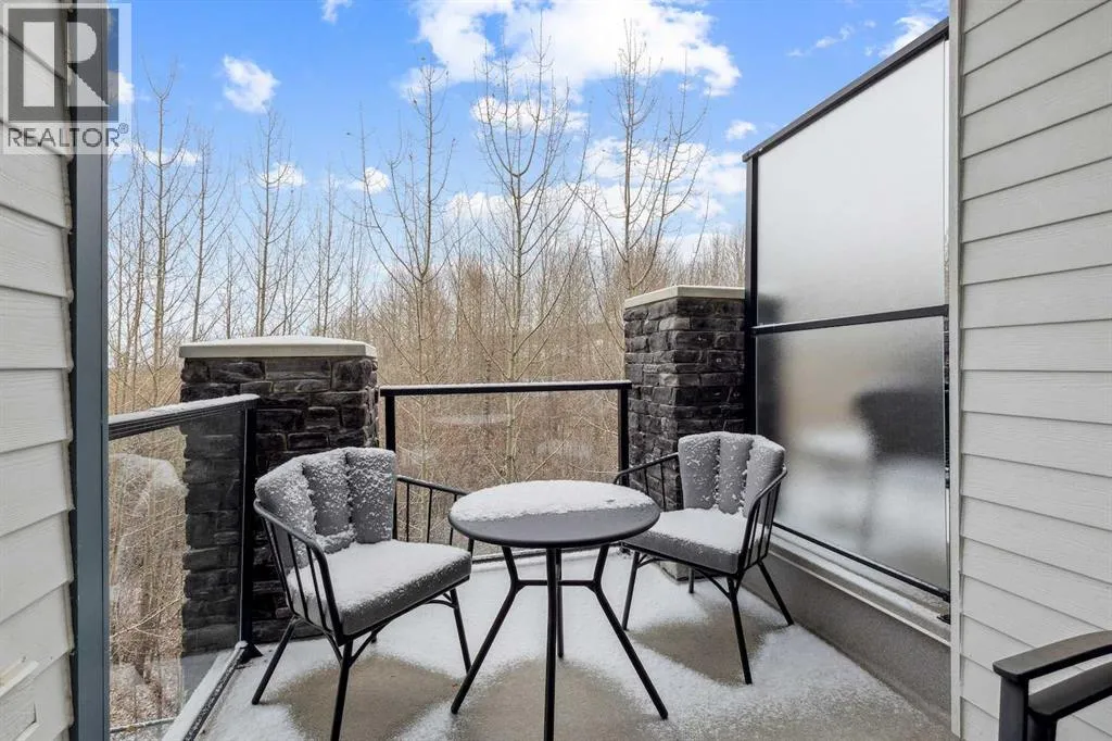 Discover Townhouse 132 at Crestmont West, a beautifully appointed, modern home with a walkout basement backing onto the trees with no neighbours behind, aside from the occasional wildlife visitor. Here are 5 things we LOVE about this home (and weâre sure you will too): 1. A FLOORPLAN MADE FOR REAL LIFE: As homes across the city trend smaller and smaller Townhouse 132 is a breath of fresh air. Offering nearly 2100 SqFt of refined and functional living space over three levels, 3 bedrooms, 3.5 bathrooms and an attached garage, this is a full-size home! The main floor is the prime example of contemporary comfort with 9â ceilings and oversize windows to take in the serene view. The kitchen is truly the heart of this home with an upgraded appliance package, including Miele dishwasher, quartz counters and chimney-style hood fan while opening onto a well-proportioned dining area. The living room easily accommodates your furnishings while a large picture window frames your view perfectly, a daily work of art that changes with the seasons and fills the space with natural light. Upstairs the king-sized primary bedroom is stunning with vaulted ceilings, a large window to take in the views, custom designed walk-in closet and 4-piece designed ensuite. Two other good-sized bedrooms share the 4-piece main bathroom while laundry is conveniently located in the hall. The developed walkout basement doesnât feel like a basement at all with 9â ceilings, oversize windows, private patio and 4-piece bathroom. 2. THE MOST SOUGHT-AFTER LOCATION IN THE COMPLEX: Typically, in newer Calgary suburbs the prime walkout lots are reserved for estate-level detached homes and million-dollar budgets. Not the case here, Crestmont West Phase has secured one of the best locations in the community with Townhouse 132 backing directly onto the trees with no neighbours behind, aside from the occasional wildlife visitor. 3. ALL THE EXTRAS: From 9â ceilings and 8â doors to LVP flooring, that beautifully appoint ed kitchen, central AC, tankless water heater, BBQ gas line on the balcony and Kinetico water softener/purification system this home is ready for its next owner. 4. RARE WALKOUT BASEMENT: Townhouse basements are often dark, dreary or even non-existent; not the case here! Featuring a fully developed, walkout basement with 9â ceilings, oversize windows, private lower patio and 4-piece bathroom making it a spacious rec room, private guest suite or a perfect teenage retreat 5. A WELL-MAINTAINED & MANAGED COMPLEX: Crestmont West is a modern townhouse development built by Partners Development Group, completed in 2021 and offering numerous floorplans ranging from villas to 3-storey units. Residents enjoy beautifully kept grounds along with ample visitor parking and reasonable condo fees in an idyllic Crestmont location (id:27476)