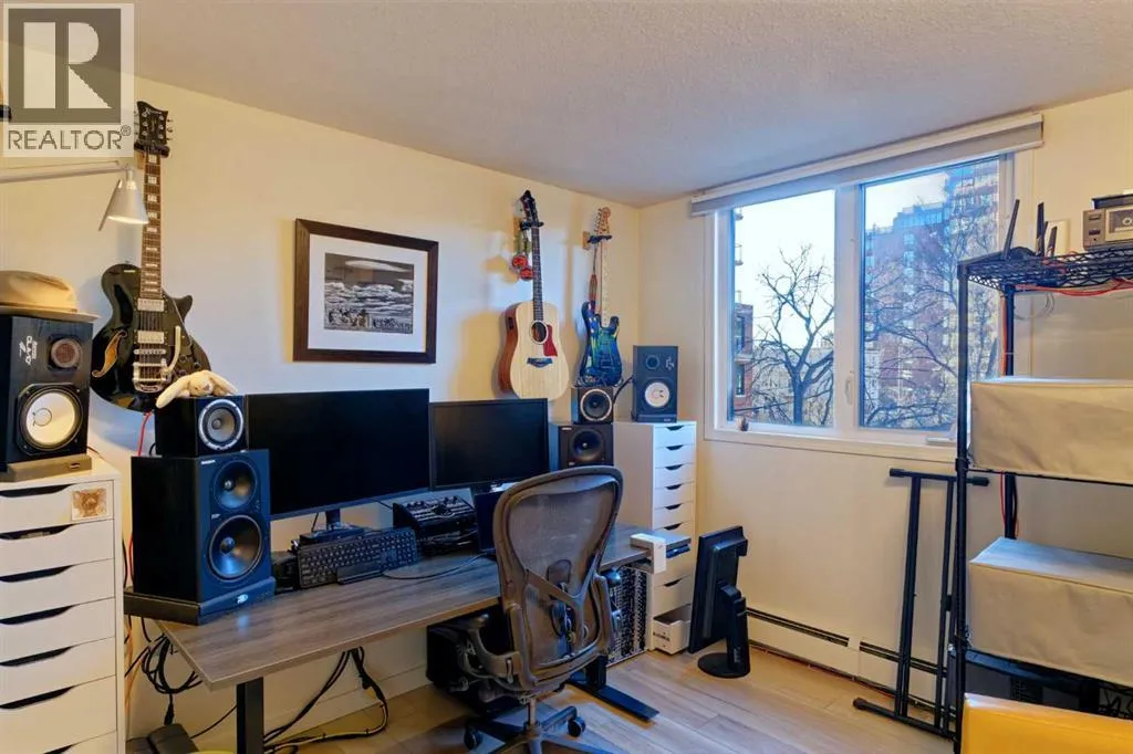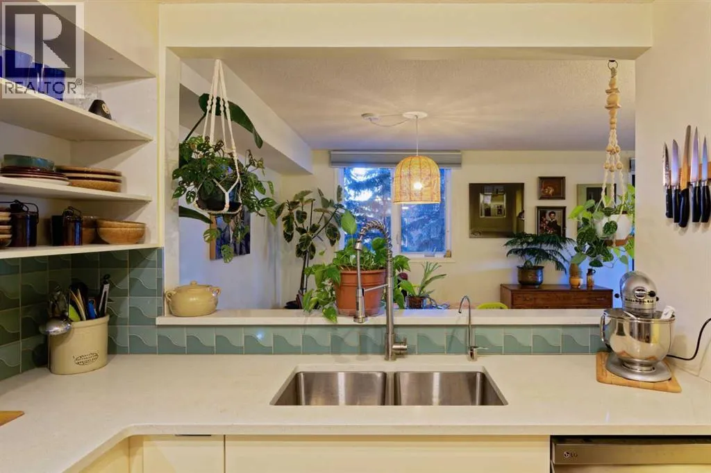 Check the 3D TOUR! One of Calgaryâs most vibrant communities is home to this generously sized, sought-after CORNER UNIT in the fabulously refreshed CLASSIC Riverscape Condominiums. This 2-bedroom, 2-bath abode offers just under 1,100 sq. ft. of stylish, feel-good living space. Redesigned in 2023, it features a designated modern kitchen with white cabinetry, quartz countertops, and sleek stainless steel appliancesâa dream setup for anyone who loves to cook. Overlooking the dining area, the layout flows nicely into a spacious living room that opens onto an immense wrap-around balcony tucked among the treesâperfect for morning coffee, evening liqueur, or those quiet, special moments in between. Wide-plank vinyl flooring runs throughout. The primary suite feels wonderfully spacious, with a walk-through closet leading to a 4-pc ensuite featuring a striking Travertine marble countertop. Down the hall, a second 4-pc bath with matching finishes complements the additional bedroom. A surprisingly large laundry/storage area adds welcomed convenience. This unit includes one assigned underground parking stall and separate storage. Residents enjoy a fitness room adjacent to a shared outdoor patio, while landscaped grounds lead to the Elbow River pathways and the lively 4th Street corridorâhome to cozy cafés, brunch spots, restaurants, and boutique shops. With nearby transit, river pathways, and quick access to 4th Street, 17th Avenue and Downtown, this location truly has it all ( get yer steps in!). Experience living in one of Calgaryâs most iconic and walkable communities. Donât miss thisâthe VIBE is real. :) (id:27476)