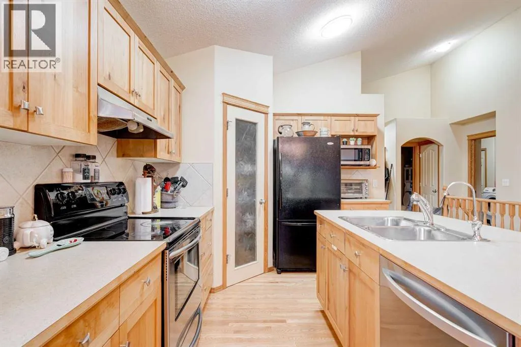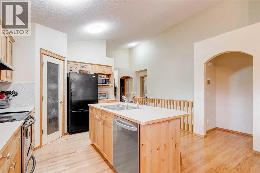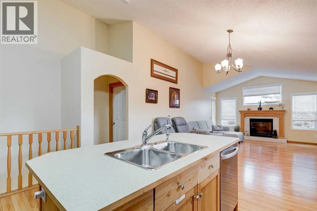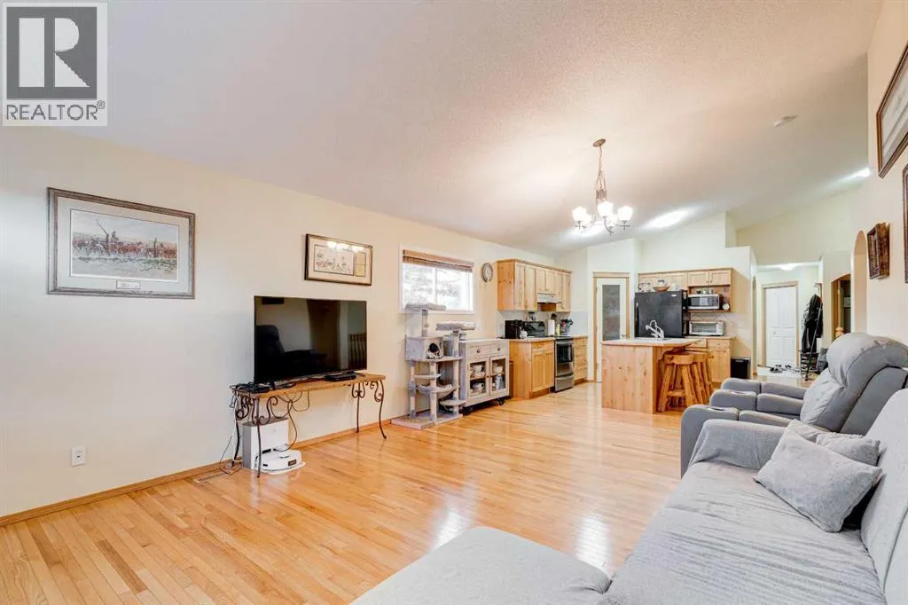 Former Morrison Homes showhome backing onto serene green space in the heart of Silverado. This semi-detached bungalow offers an exceptional blend of comfort, style and convenience without the burden of condo fees. Soaring vaulted ceilings and an open-concept design create a bright, airy atmosphere ideal for daily living and entertaining. Warm hardwood floors flow through the main level, connecting the inviting living room with its cozy gas fireplace and surrounding windows to a generous dining area perfect for family meals or hosting friends. The well-appointed kitchen inspires culinary adventures with knotty pine cabinetry, a large island with breakfast bar seating, corner pantry for ample storage and a garburator for added practicality. A quiet front den offers a comfortable workspace or reading nook tucked away from the main living areas. Retreat at the end of the day to the spacious primary bedroom featuring updated LVP flooring, a private ensuite with an indulgent jetted soaker tub and a large walk-in closet. A conveniently located powder room completes the main level, providing privacy and function for guests. The professionally finished basement expands the living space with a huge recreation room ideal for movie nights and games nights. 2 generously sized bedrooms and a stylish 3-piece bathroom complete the level. Step outside to a west-facing backyard designed for relaxation and connection, enjoy the large deck for summer barbeques, a fenced grassy yard for kids or pets to safely play and peaceful views of the green space and walking path behind. Additional features include central air conditioning for year-round comfort and a double attached garage for easy parking and extra storage. Perfectly situated within walking distance to schools, parks and Silverado Shopping Centre and surrounded by over 10 km of scenic pathways that weave through the community. Minutes to Spruce Meadows, Sirocco Golf Club and Fish Creek Park, this location offers the best of both urban convenience and outdoor living! (id:27476)