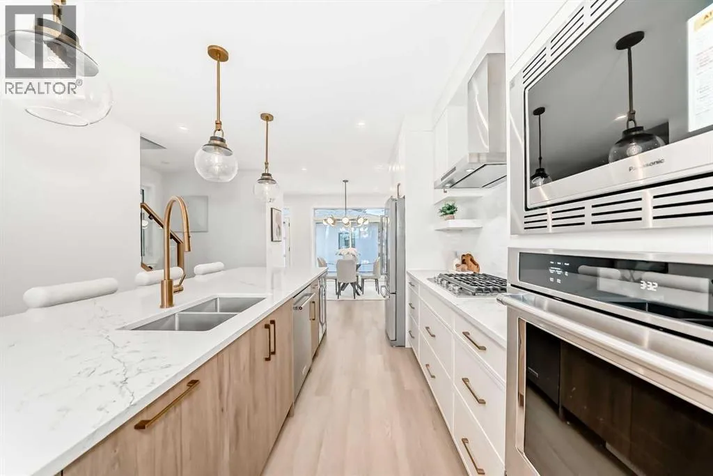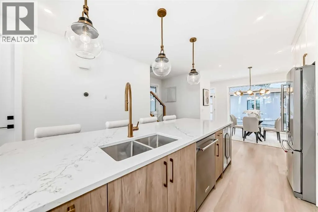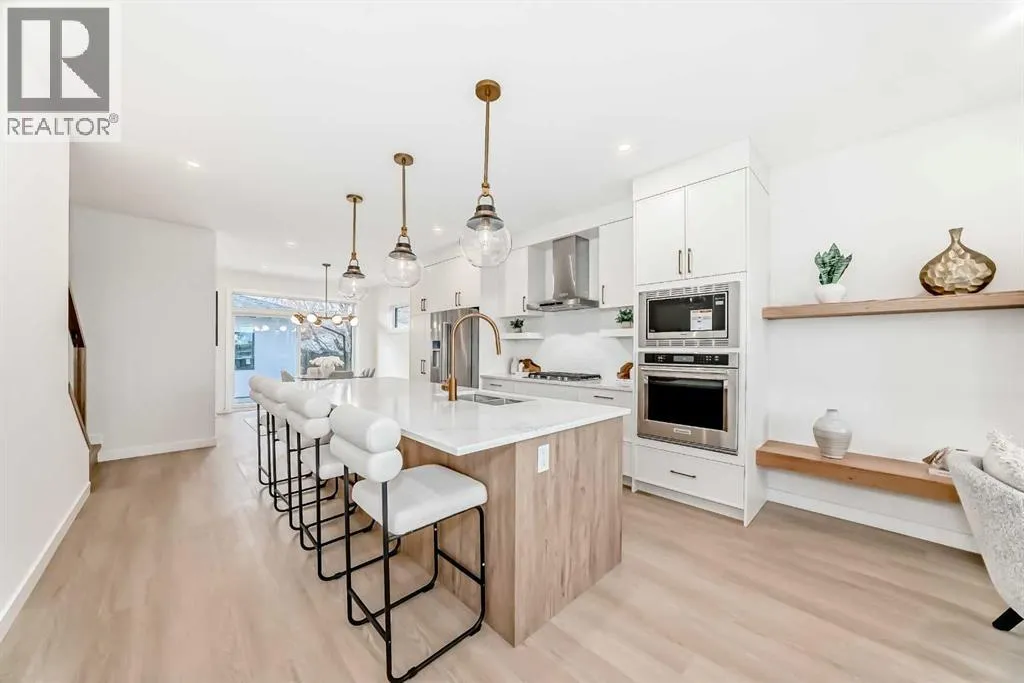 Experience unmatched luxury and flexibility in this stunning residence in Winston Heights, offering over 2,700 sq. ft. of beautifully developed living space with breathtaking views. Step into the elegant living room, centered around a warm gas fireplaceâan inviting space to host unforgettable gatherings. The gourmet kitchen, a true chefâs dream, features premium finishes and is ready to inspire your next culinary creation. The 2nd floor boasts a versatile layout with a serene primary retreat complete with a spa-like 5-piece ensuite, along with two additional bedrooms ideal for family, home offices, or quiet study. Ascend to the third-floor sanctuary, where a master bedroom opens to a private patio with captivating viewsâperfect for summer evenings. Also features a generous 5-piece luxury ensuite. Every detail reflects quality craftsmanship, from gleaming hardwood floors to sleek quartz countertops. The fully developed basement expands your living space with a recreation area with a wetbar, two additional bedrooms, and a full bathroomâideal for hosting guests. Nestled in the vibrant Winston Heights community, youâll enjoy nearby parks, golf courses, and effortless access to downtown. (id:27476)