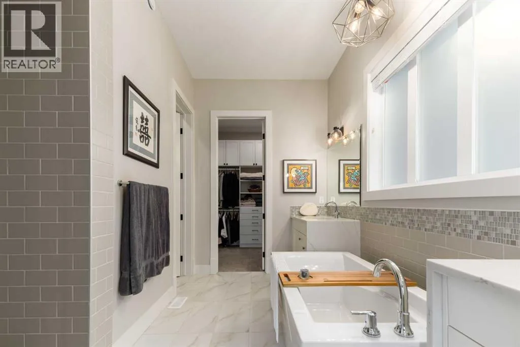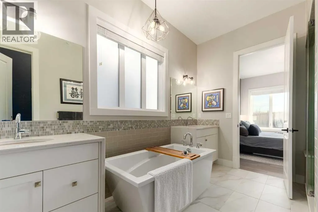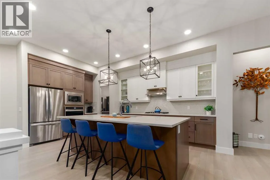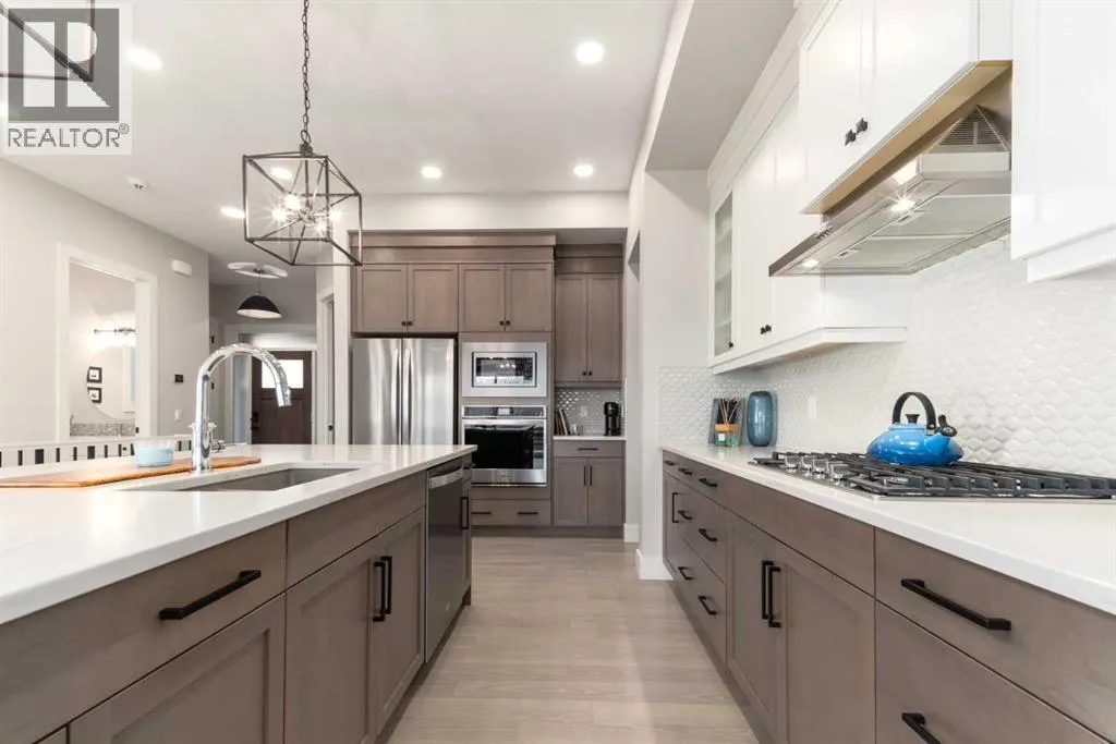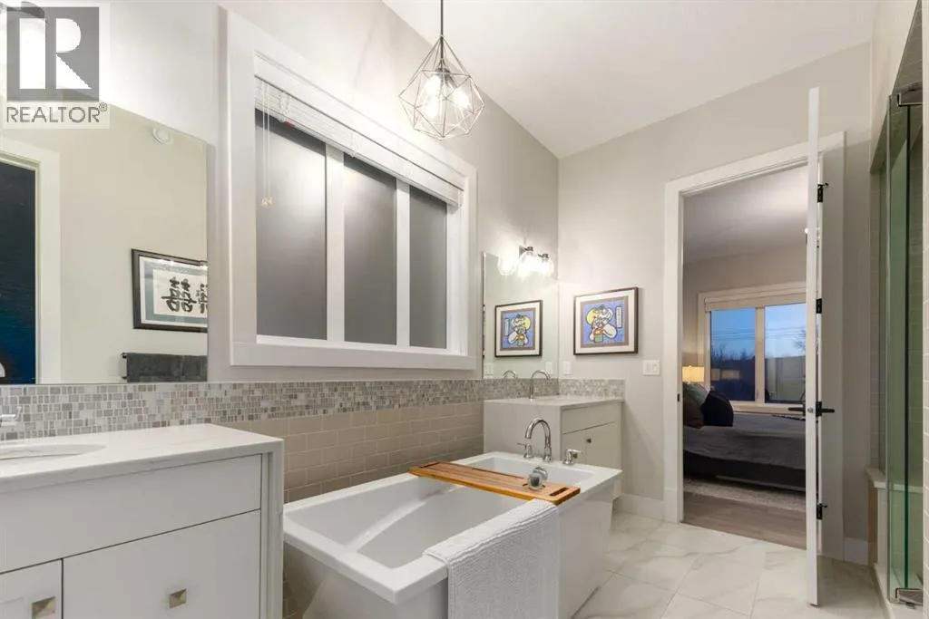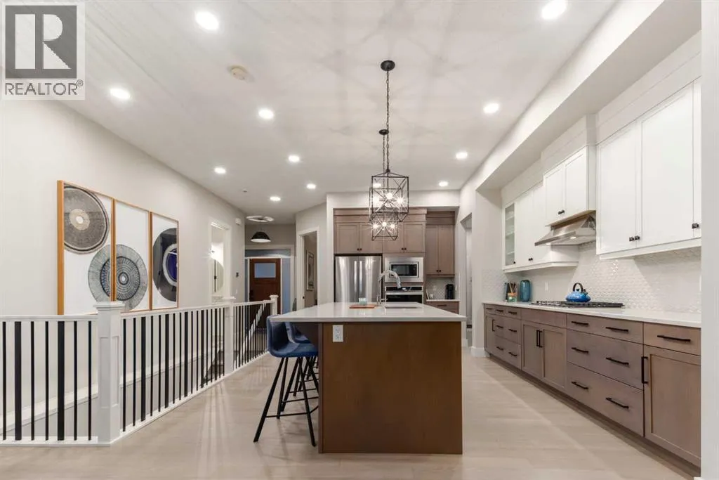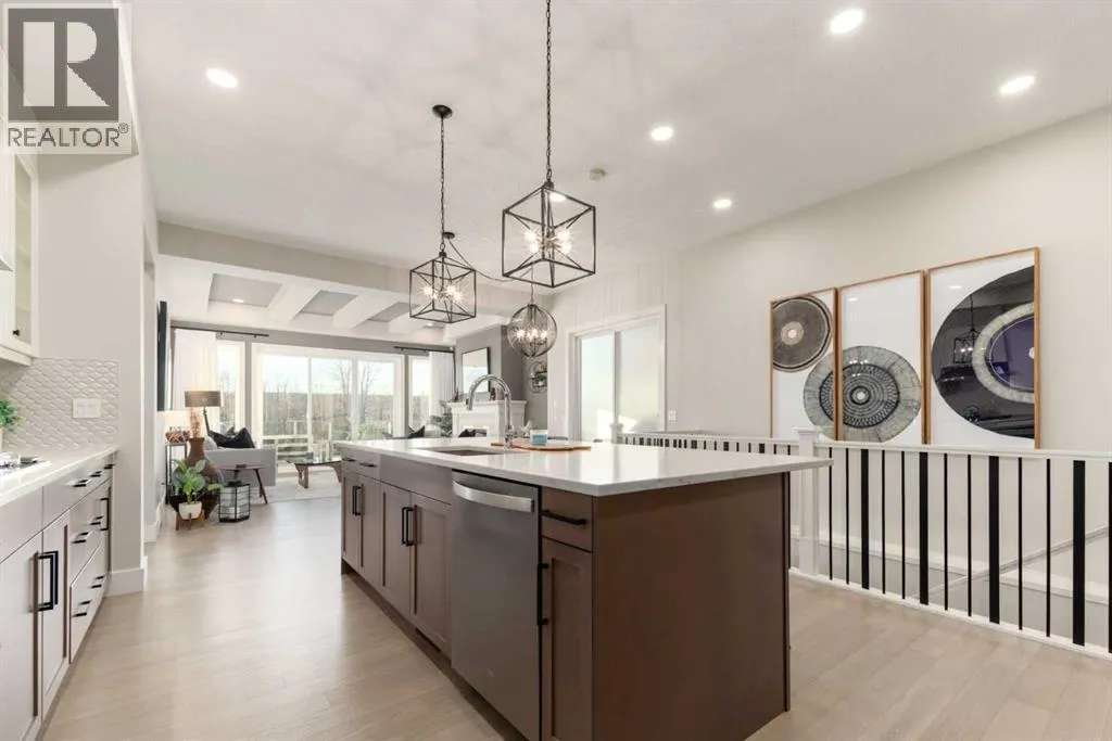 Designed without compromise & backing onto a protected reserve, this rare & beautifully upgraded 4-bedroom walk-out bungalow brings together timeless design & a quiet connection to nature. Located in the newest area of Discovery Ridge on a quiet & exclusive cul-de-sac, this home offers sweeping views of treed hillsides from the moment you walk in the front door. With 2 bedrooms on the main level & over 2,400 square feet of finished living space, all thoughtfully considered, offering warmth & effortless livability. Soaring 10-foot ceilings on the main level paired with light hardwood flooring creates openness throughout. A well-appointed kitchen anchors the home with quartz countertops, an oversized island, stainless steel appliances featuring a 5-burner gas cooktop, & a dedicated pantry for everyday function. Flowing effortlessly between the dining and living space, the layout frames peaceful forest views that shift beautifully with the light and seasons. The main living area profiles beamed ceilings and a warm fireplace adding depth & character. Walk out to your south facing wrap-around deck that extends the living space to the outdoors offering mountain glimpses. Glass panel railings keep the views open, while a retractable motorized awning provides shade. Around the corner is a BBQ space w/separate side entrance connecting to your dining area. Settle into the primary suite, with oversized windows drawing in the forest views. This quiet retreat offers a sense of privacy between the bedroom & ensuite, with dual waterfall quartz vanities, a freestanding soaker tub, separate spacious shower, & a custom walk-in closet by California Closets. A second bedroom currently being used as an office is unusual in a typical bungalow design and offers easy access to a 4-piece bathroom creating an ideal setup for a young family or an aging parent. Daily living is enhanced by the laundry room on the main floor that includes a sink, linen closet, drying space, & window. A well-plan ned mudroom, designed for seasonal storage & everyday life, leads through to the double attached garage finished with epoxy flooring, high ceilings, & functional high-gloss cabinetry. The walk-out lower level continues the homeâs warmth & impeccable design with a custom fireplace feature & linear insert, installed in 2024, creating an inviting & elegant space. Finished with a wood mantle & tailored tile surround, this feature organically blends the lower level to the covered outdoor patio & large South-facing backyard. With its 9-foot ceilings, this level also offers two generous bedrooms and a 4-piece bathroom, as well as games or seating area. This space works well for a growing family & guests while the oversized storage/mechanical room can be customized to your personal needs. Enjoy walking paths behind the home that lead to Griffith Woods, & proximity to all the amenities in Westhills. Central A/C, nearly $100K in thoughtful upgrades and exclusive location define this exceptional home. (id:27476)