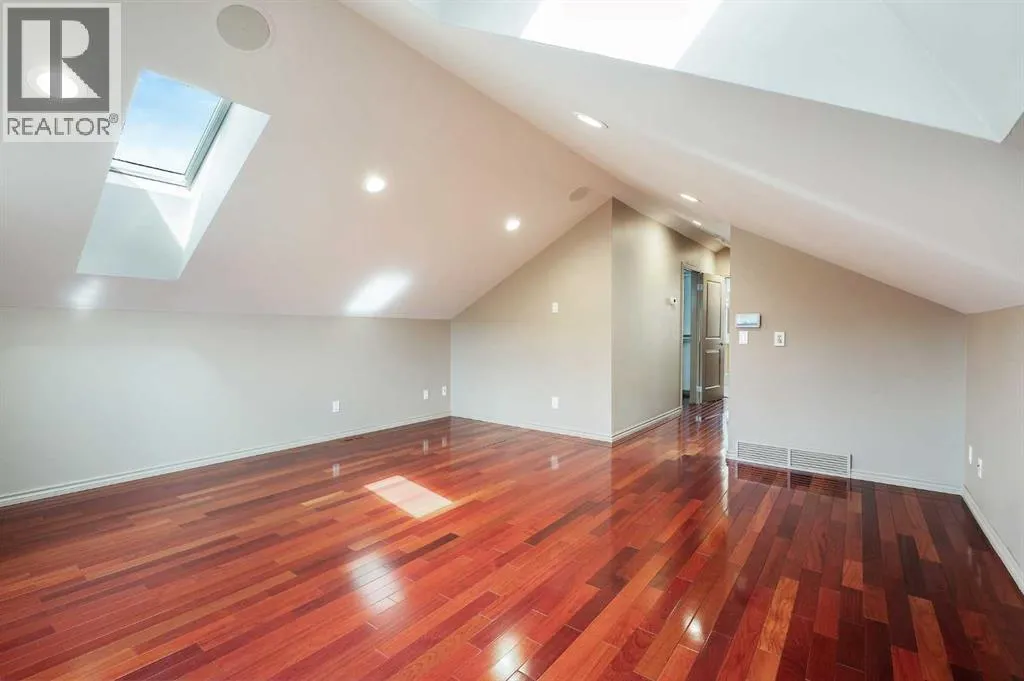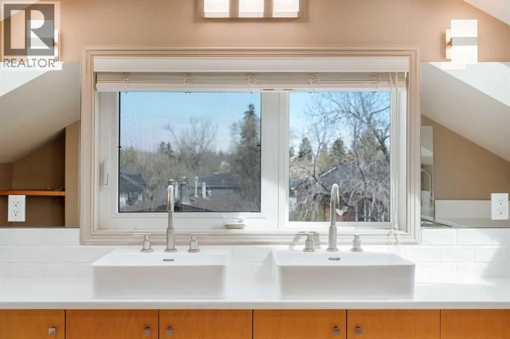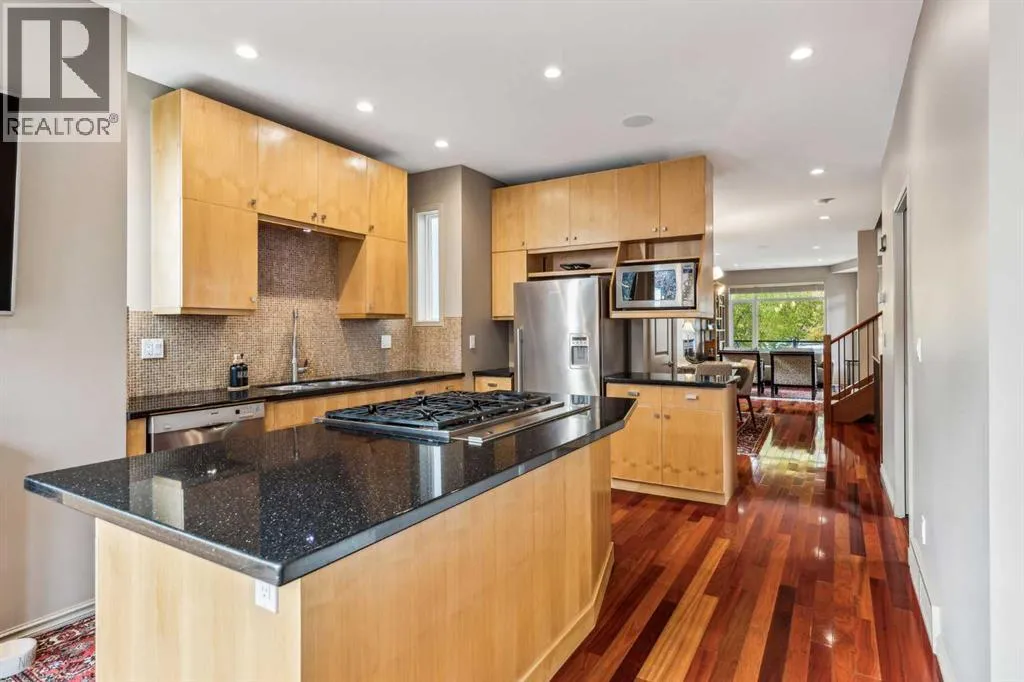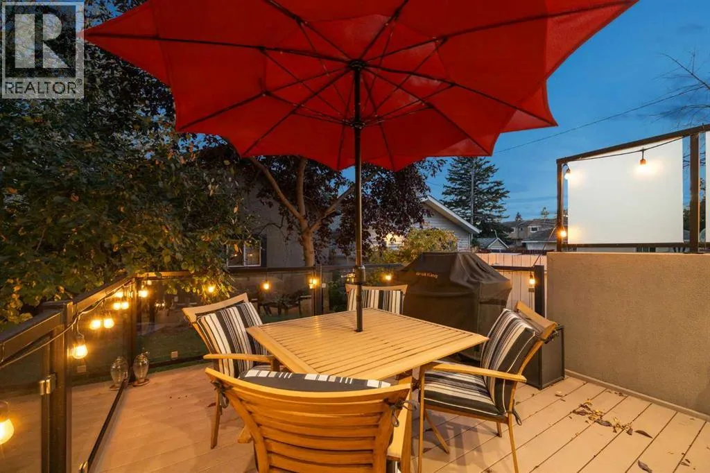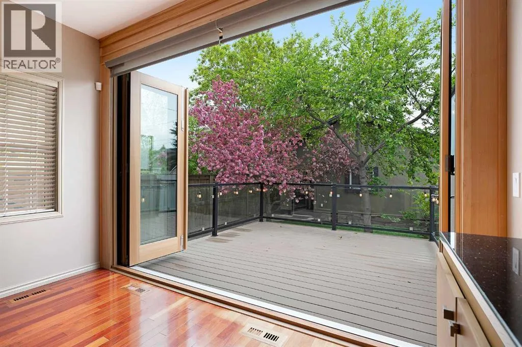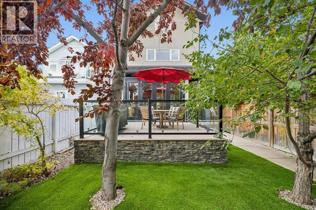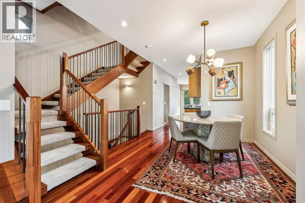 OPEN HOUSE SATURDAY, NOVEMBER 15TH FROM NOON - 2 PM. Nestled on a quiet tree-lined street in the long-established community of Capitol Hill, this European inspired 3 bedroom home with private SOUTH FACING back yard offers over 2700 sq ft of developed living space. The main level presents glossy Brazilian cherry Jatoba hardwood floors, high ceilings & is illuminated with recessed lighting, showcasing the front living room with feature fireplace, dining area with stylish light fixture & gorgeous kitchen thatâs tastefully finished with solid wood hand build cabinetry, island, granite counter tops, top of the line stainless steel appliances, cozy breakfast nook & folding Tesoro door system opening to the south facing, private composite deck. A 2 piece powder room completes the main level. A custom staircase with auto LED lighting leads to the second level (also adorned with Jatoba hardwood) that hosts 2 spacious bedrooms, a 4 piece bath with Fiat steam shower & laundry room with sink. The newly renovated primary suite encompasses the entire third level & is a true private oasis. Features include a huge bedroom with vaulted ceiling & skylights, to-die-for walk-in closet & opulent ensuite with programmable heated tile floors, dual sinks, coffee bar with sink, beverage centre & filtered water station, a walk-in shower, heated air tub with remote & skylights. Basement development comprises of a recreation/media room with custom millwork, porcelain tile flooring, 2 built-in entertainment centres & electric fireplace. A large flex space with custom hand made closet could be used as a home gym area or studio. Other notable features include fresh paint throughout, upgraded LED lighting with Lutron touch dimmer switches, built-in ceiling speakers, tankless hot water tank, central air conditioning, newer modulating furnace, security system & 50 year rubber roof. Outside, enjoy the private south facing professionally landscaped yard with mature flowering trees, rundle rock garden & maintenance free astro-turf. Parking is a breeze with a heated, insulated, fully finished garage with new door & lift hardware. The prime location canât be beat â close to popular neighbourhood amenities such as Earlâs, Starbucks, Weedâs Café, Edelweiss Village, Confederation Park, two community centres, shopping, exceptional schools, public transit, SAIT & U of C & and whether youâre walking, taking transit or Uber, its an easy commute to the downtown core. Trendy Kensington with Riley Park, shopping & patios is also within walking distance. (id:27476)