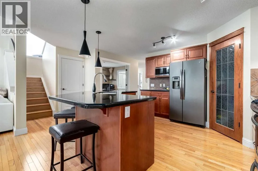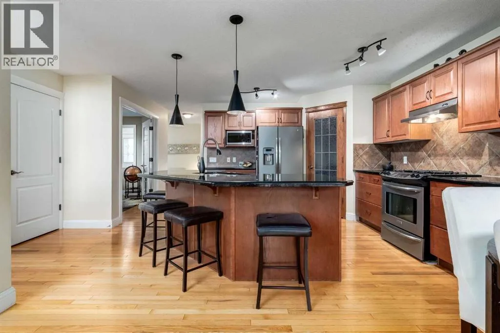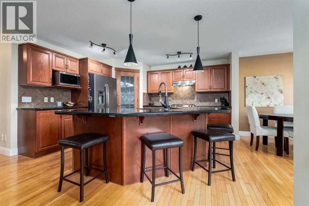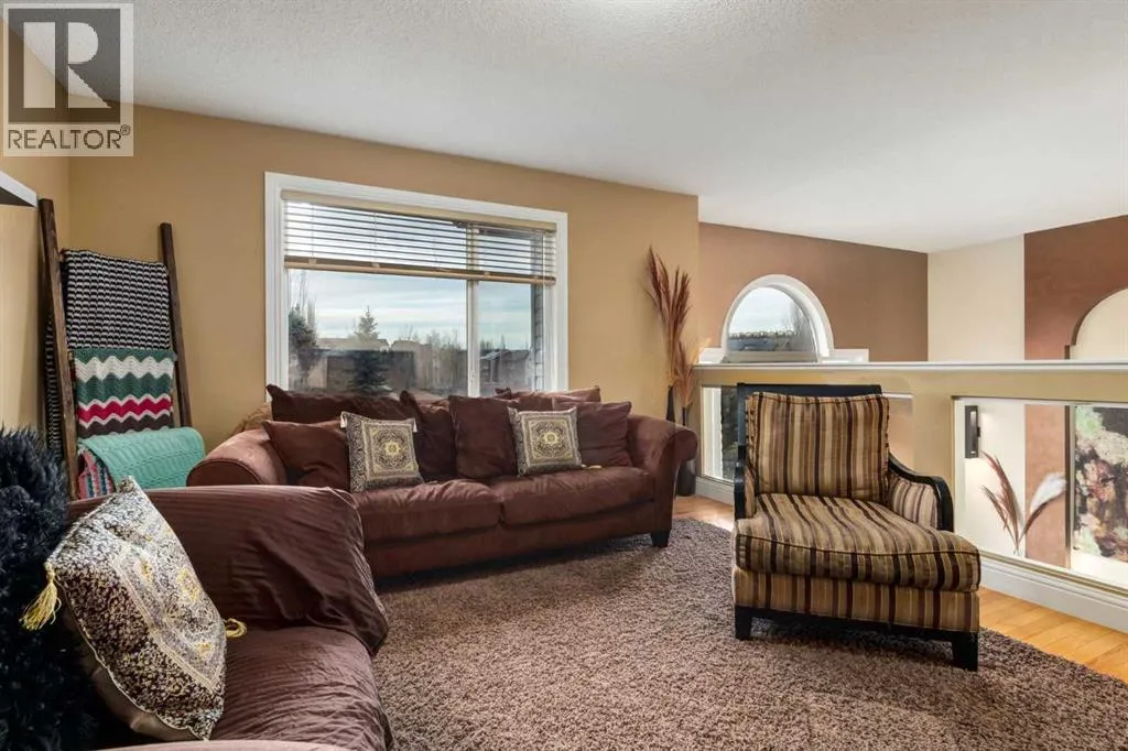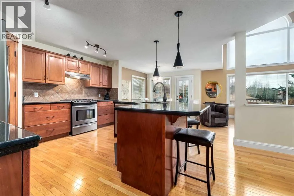 Stunning Family Home on Massive Pie Lot Backing Onto Ravine & Pathway in Tuscany!Welcome to this beautifully finished home tucked away on a quiet cul-de-sac in the highly desirable community of Tuscany. This exceptional property sits on a huge pie-shaped lot backing directly onto the ravine and pathway, just steps from parks, a pond, and minutes from schools, the Tuscany Market, Tuscany Club, and the C-Train. The open-concept main floor features a private den, a vaulted great room with a feature fireplace, and a gourmet kitchen with granite countertops, stainless steel appliances, a gas stove, and a large island with eating bar. The dining area opens onto a two-tiered deck, perfect for entertaining or enjoying the peaceful, expansive backyard. Beautiful hardwood flooring runs throughout the main and upper levels. Upstairs offers a spacious bonus room overlooking the great room, along with three generous bedrooms. The primary suite impresses with vaulted ceilings, a 5-piece ensuite featuring double vanities, a jetted tub, separate shower, and a 10' walk-in closet. The fully finished basement provides even more living space with a large recreation area, family room, fourth bedroom, and a full 4-piece bathroomâideal for guests or teens. The exterior is fully landscaped and fenced, featuring a massive private deck and direct access to the ravine pathwayâperfect for outdoor living and family fun. Recent upgrades include: new shingles (6 years ago), new washer and dryer (3 months old), new water heater, dishwasher, and microwave. This is an outstanding family home in one of Tuscanyâs most sought-after locationsâoffering comfort, style, and a beautiful natural setting. A must-see! (id:27476)