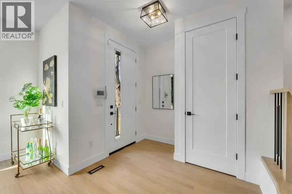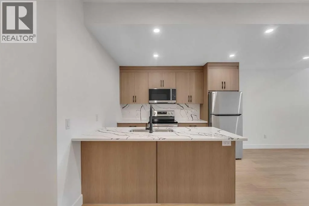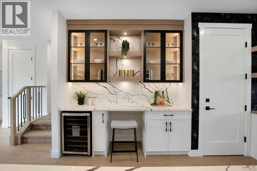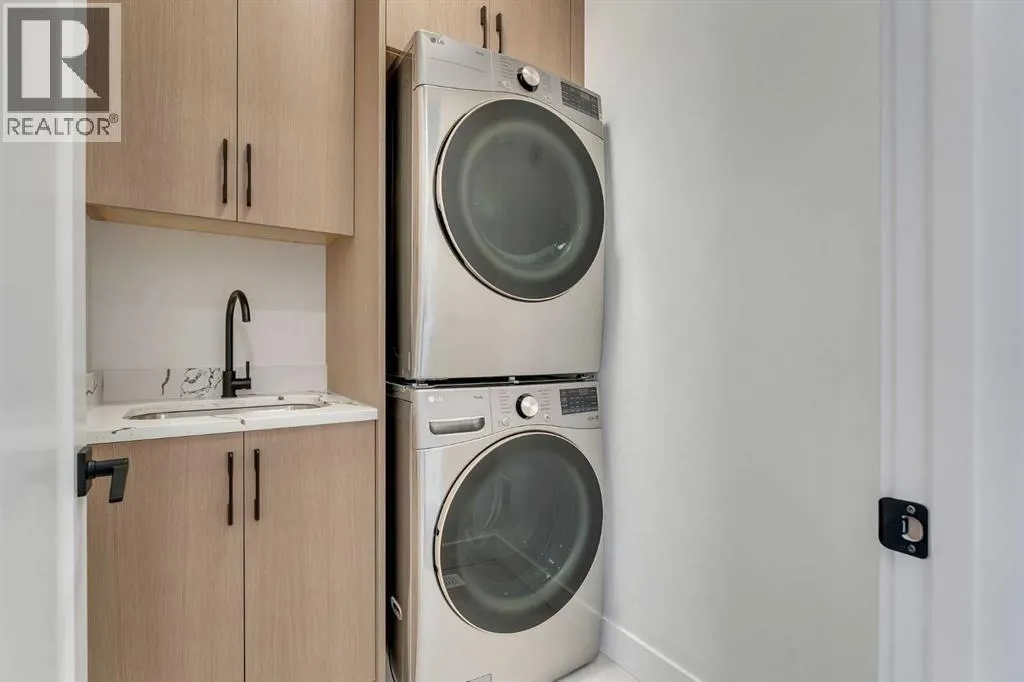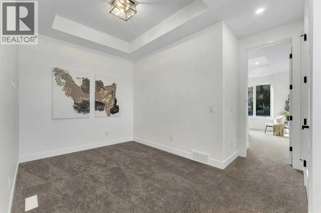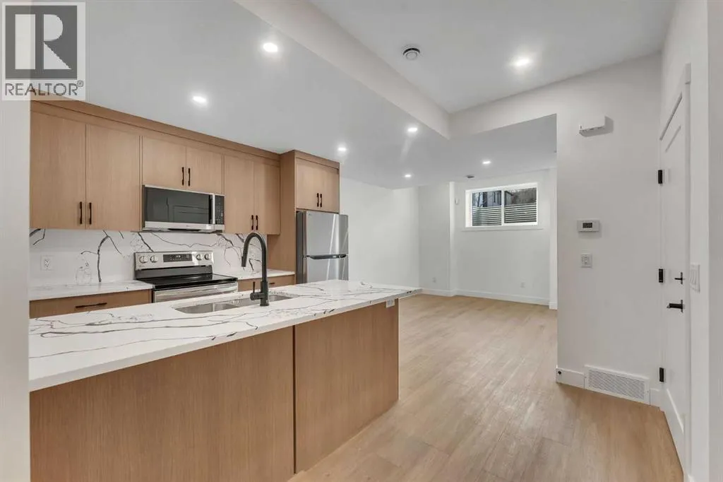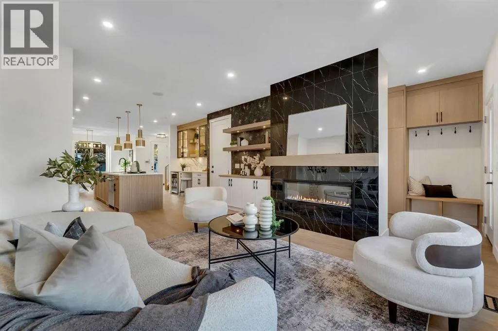 Discover the epitome of modern living in this impeccably located home! Nestled on a quiet street, steps from Bowness Park and next to a school, this 5-bedroom, 3.5-bath residence offers over 2800 sqft of luxury. The home showcases countless upgrades, including a CUSTOM UPGRADED QUARTZ BACKSPLASH throughout. The gourmet kitchen features a stainless steel KitchenAid package with built-in wall oven & microwave, double-door fridge with waterline, dishwasher, custom canopy hood fan, plus a large island with custom slat design and quartz waterfall, pantry, pull-outs, quartz counters, under-cabinet lighting, and custom cabinetry. The main floor also includes a formal dining area, living room with custom built-ins & fireplace, and a designer mudroom with bench & storage. Upstairs, youâll find two spacious bedrooms, a laundry room with sink, a full bath, a bonus room with 10ft tray ceiling, and a luxurious master retreat with 10ft tray ceiling, a vast custom walk-in closet, and a spa-inspired ensuite featuring a freestanding tub, double vanity, and custom-tiled shower. The fully developed LEGAL basement suite offers spacious open-concept living with a bright living room enhanced by a large window, a dining area, and a custom kitchen complete with quartz backsplash, microwave hoodfan, breakfast bar, and ample counter space. It also features two large bedrooms, stacked laundry, and a full bathroom with a tiled surround shower. Exterior highlights include custom concrete steps, walkways, and patio, full landscaping, new fencing, BBQ gasline, and a private backyard area designed for basement tenants to enjoy. Additional features: 9ft ceilings on all levels, 8ft doors, flat painted ceilings (main & upper), knockdown basement ceilings, smart home wiring, upgraded lighting, custom faucets, central vac rough-in, AC rough-in, and CAT 5 wiring. A true blend of craftsmanship and intelligent design, this home is a must-see. Donât miss this opportunityânext door unit 8718 is also availab le! (id:27476)