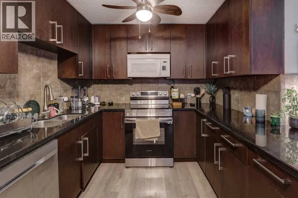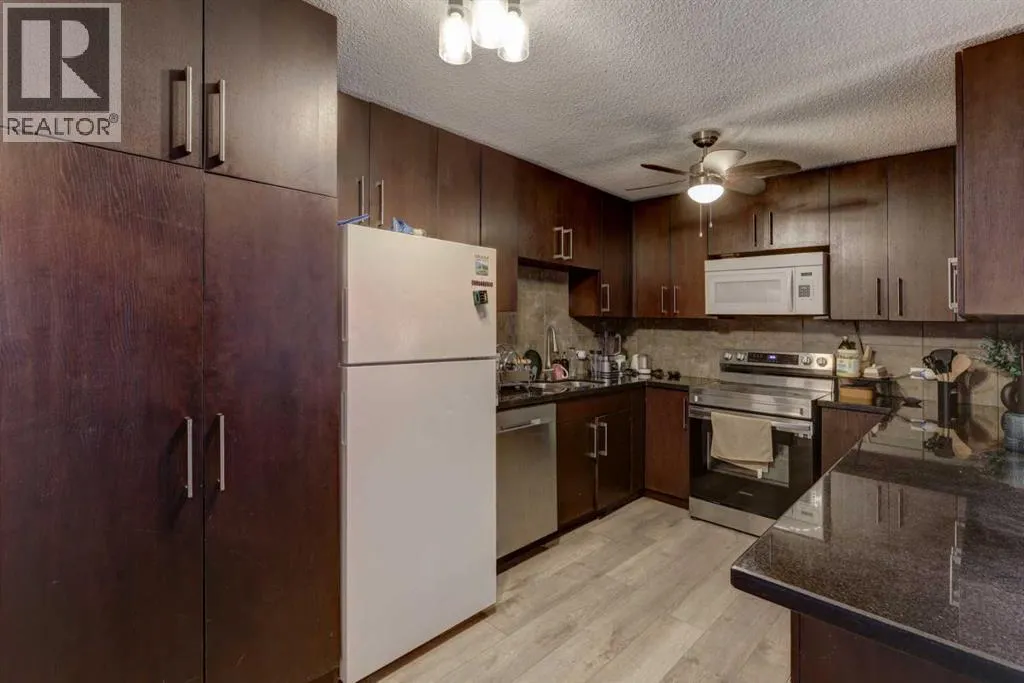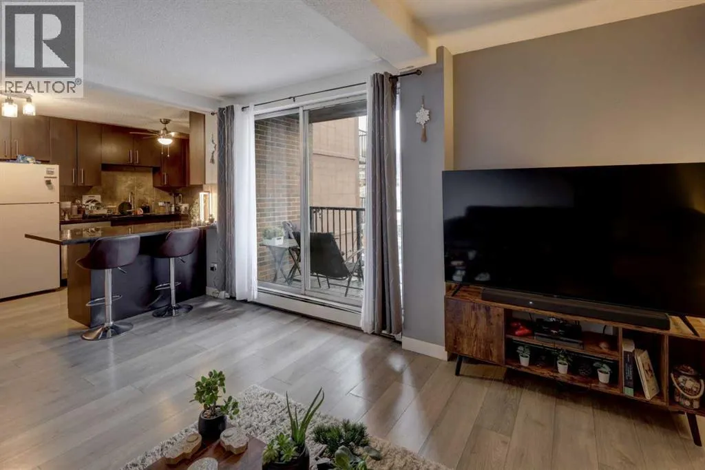 Welcome to your new home in the heart of Cliff Bungalow, one of Calgaryâs most desirable core communities! This 6th-floor, 2-bedroom condo perfectly combines modern comfort, unbeatable convenience, and an incredible view that looks right over the energy of 17th Avenue, as well as the Calgary Tower! Step inside and youâll love the open-concept layout â bright, airy, and designed for both entertaining and everyday living. The spacious rooms and laminate hardwood floors throughout create a warm, contemporary vibe, while the tile bathroom adds a sleek touch. The kitchen is equipped with a nearly new dishwasher, and youâll appreciate the in-suite laundry - a luxury not found in every unit in this building! Parking? This condo comes with 2! Enjoy your titled underground stall and an optional surface stall (just $75/month) if youâd like a second space. This pet-friendly (under 30 lbs) and non-smoking building means a comfortable, clean environment for everyone. Outside your door, discover the best of Calgaryâs urban lifestyle: trendy cafés, award-winning dining, boutique shopping, vibrant nightlife, and serene parks â all within walking distance. Whether youâre a first-time buyer ready to embrace city living or an investor looking for a property with an unbeatable location and rental appeal, this condo offers exceptional value thatâs hard to find anywhere else in the city. Donât miss your chance to see it â properties in Cliff Bungalow at this price donât stay hidden for long! (id:27476)