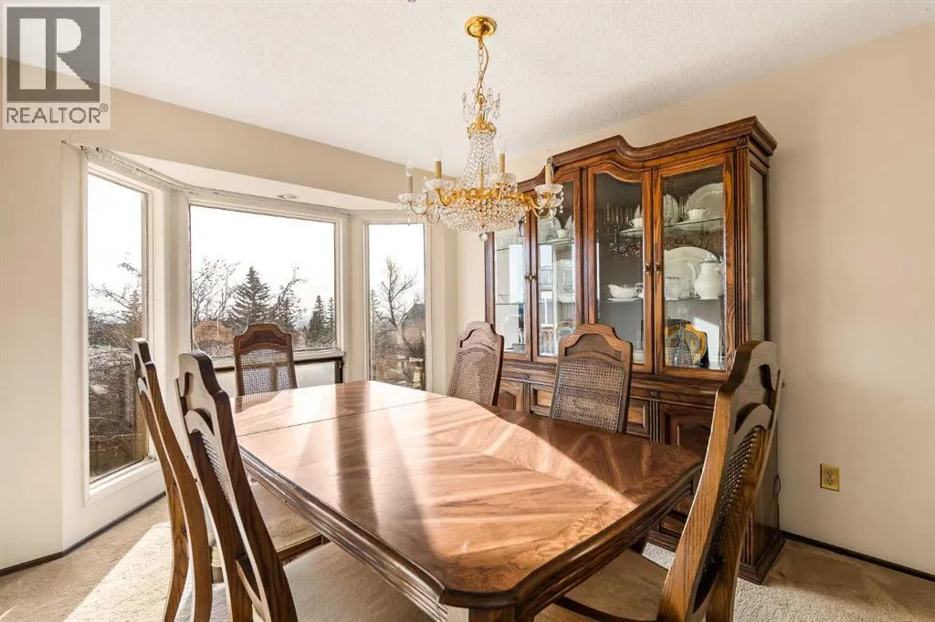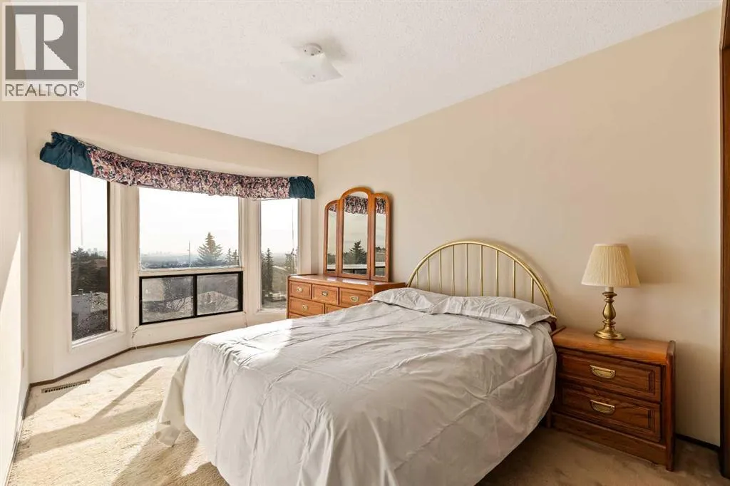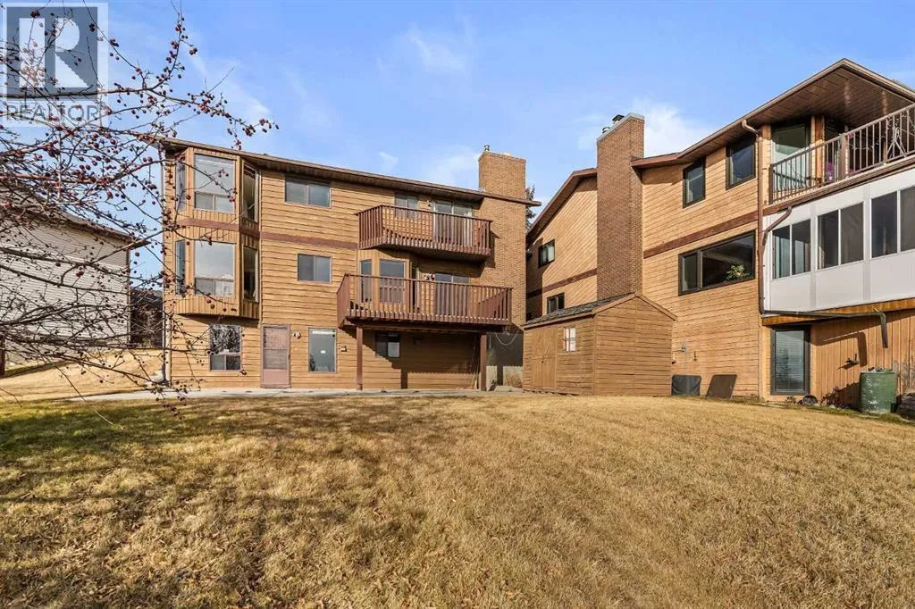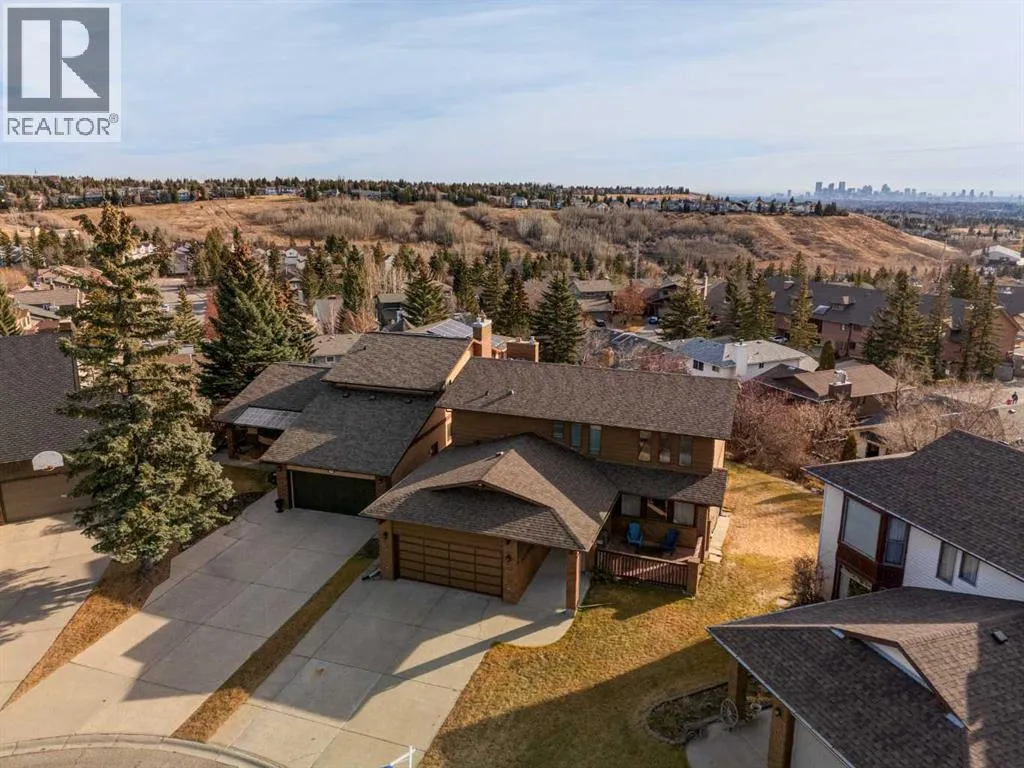 Welcome to 16 Edgeland Bay NW, a remarkable two-storey home in the prestigious community of Edgemont. Perfectly situated on a massive pie-shaped lot of over 11,100 sq. ft., this property enjoys a quiet cul-de-sac location and offers sweeping panoramic views of the city skylineâa true one-of-a-kind setting. The exterior showcases a timeless design with a striking blend of brick and wood siding, complemented by painted trim accents. A covered front porch creates a welcoming entrance and adds charm to the façade. Inside, the main level offers a thoughtful and spacious layout featuring a bright living area, a formal dining room, and a kitchen complete with appliances and plenty of cabinetry. Adjacent to the kitchen is a cozy nook and a family room highlighted by a classic brick wood-burning fireplace with a full mantel, creating the perfect spot for relaxing evenings. This level also includes a 3-piece bath, laundry room, and convenient access to the first balcony, where you can step outside to enjoy the breathtaking city views. Upstairs, the home provides ample family space with three bedrooms. The primary suite features its own 4-piece ensuite, walk-in closet, and a private balcony overlooking the city. While the second and third bedrooms are accommodated by a shared 3-piece bathroom. A spacious bonus room complete the upper level, offering multiple spaces to relax and enjoy the views. The walk-out basement extends the living space and is fully finished with a huge family/recreation room, a dining area, and a second kitchenâperfect for multi-generational living or entertaining. A 2-piece bath, plus an unfinished storage and utility room, provide both functionality and flexibility. Step outside to the concrete patio, an ideal setting for outdoor gatherings. The expansive backyard is beautifully maintained and features not one but two garden sheds for extra storage. With its size, privacy, and sweeping views, the yard is a true outdoor retreat. This home also features u pgrades such as a new hot water tank (replaced in 2021), new furnace (replaced in 2012) and a new water softener (replaced in 2012). Located in the highly sought-after community of Edgemont, residents enjoy top-rated schools, abundant parks and pathways, and easy access to shopping, transit, and major routes. Donât miss this rare opportunity to own a view property on an oversized lot in one of Calgaryâs most desirable communities. 16 Edgeland Bay NW offers space, character, and unmatched potentialâschedule your private showing today! (id:27476)