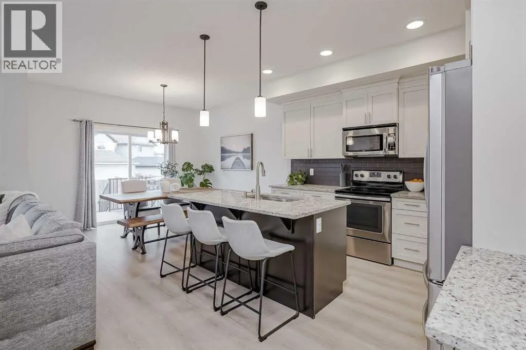 OPEN HOUSES SATURDAY 15 AND SUNDAY 16 1-3!! Now is your opportunity to move into this exceptional, family-friendly home on one of the most sought after cul-de-sacs in Copperfield. Close to the pond and walking paths, parks, great schools and shopping, this home is a true gem. Step inside to find 9 ft ceilings, and a welcoming foyer and lots of natural sunlight. The main floor offers a convenient powder room and an impressive kitchen with timeless neutral finishes, granite countertops, a large ISLAND for meal prep and snacks, tons of cabinetry and upgraded pull-out pots and pans drawers. This beautiful kitchen also has a newer refrigerator (2023) and dishwasher. There is also plenty of space for a family dining table, ready for your holiday gatherings! The convenient walkthrough pantry provides abundant storage and leads to the main floor laundry area. The bright living room features large windows, beautiful new flooring and a stunning floor-to-ceiling fireplace, perfect for cozy winter evenings. Rounding out the main floor, find the office or flex room adding the functionality every family needs.Upstairs, the expansive primary suite offers a relaxing retreat with a spa-like ensuite including a deep soaker tub, separate shower, double vanity, and a custom walk-in closet with incredible storage. Two additional bedrooms, a full bathroom, and a bright vaulted bonus room with large windows complete the upper level. The fully finished basement expands your living space with a rec room ideal for movie nights, a convenient wet bar and a versatile office or playroom. There is also an additional bedroom and a full bathroom for a larger family or guests.Step outside through sliding glass doors to a low-maintenance composite deck overlooking the wide, pie-shaped backyard-perfect for kids, pets, and entertaining. This home has been lovingly maintained and updated, featuring a newer hot water tank (2023), maintained furnace (2025), central A/C, newer roof (2020), refreshed e xterior paint, new flooring throughout the main floor (2023) as well as many updated appliances. Truly a move-in-ready home in an unbeatable location- just in time to celebrate the holidays with your family! Give us a call to book your private showing! (id:27476)