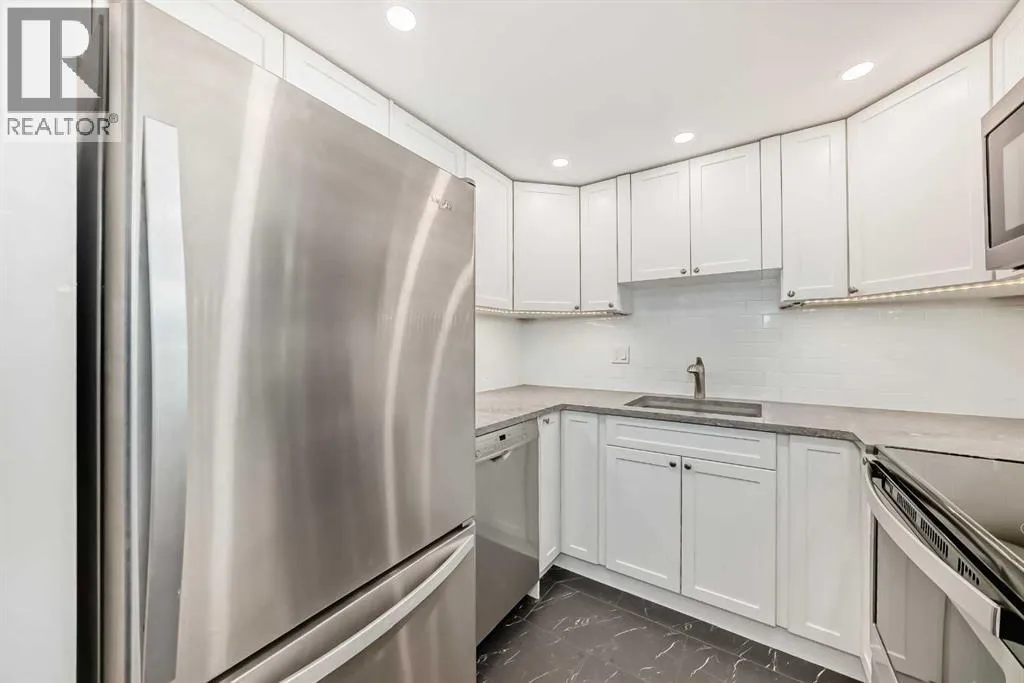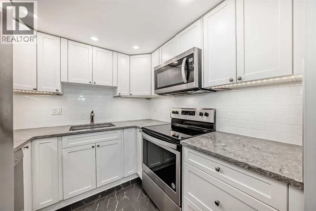 Welcome to this fully updated 1-bedroom, 1-bath condo in the highly sought-after Varsity community. Located in a well-maintained complex, this home features modern tile flooring throughout and thoughtful touches at every turn. The foyer offers built-in storage for convenience, while the kitchen impresses with stainless steel appliances, a microwave hood fan, and under-cabinet lighting. The living room showcases a stylish feature wall with a cozy fireplace, and the spacious bedroom includes a California closet organizer for optimal functionality. The bright 4-piece bathroom, plus in-unit storage, add to the homeâs practicality. Step outside to a quiet patio overlooking the peaceful courtyard, perfect for morning coffee or evening relaxation. A shared laundry room within the complex provides added ease. With a fantastic location near Market Mall and quick access to Shaganappi Trail and Crowchild Trail, this condo delivers comfort, convenience, and exceptional value. (id:27476)