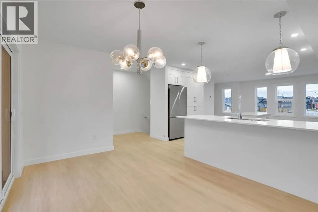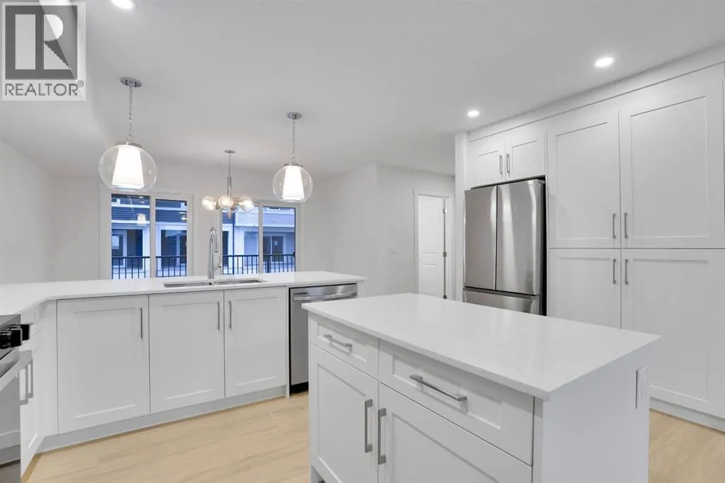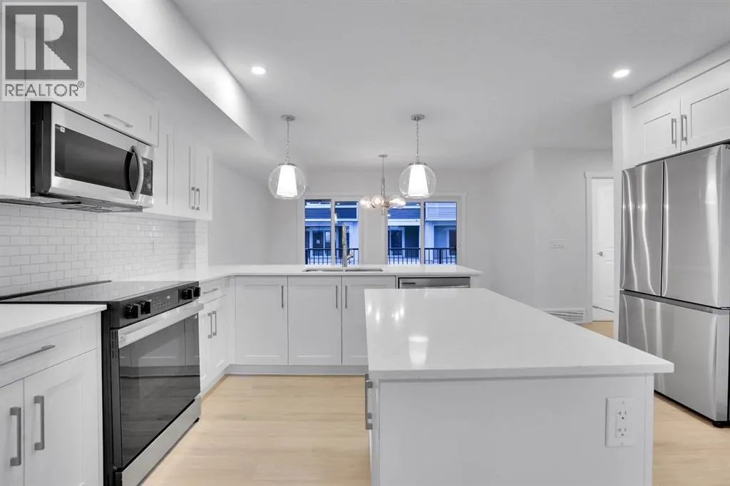 Welcome to your new home in the vibrant community of Belmont! This beautifully built townhouse combines modern design with thoughtful upgrades for comfortable living. The main floor features a double attached garage and a versatile office or flex room â perfect for a home workspace or hobby area.The second floor offers a bright, open-concept layout with a stunning kitchen featuring elegant finishes and ample counter space. The adjoining dining and living areas are perfect for gatherings, while a convenient 2-piece bath completes the level.On the top floor, youâll find two spacious bedrooms, a 4-piece bathroom, and a laundry area for added convenience. The primary suite includes a walk-in closet and a luxurious 5-piece ensuite, providing the perfect spot to unwind.Ideally located near MacLeod Trail and Stoney Trail, this home offers easy access to shopping, dining, and nearby parks. Stylish, functional, and ready for you to move in â donât miss the opportunity to make it yours! (id:27476)