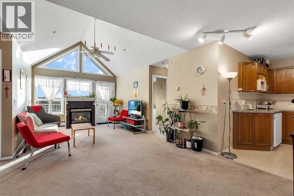 Welcome Home to this Bright and Spacious top floor South Facing unit that offers a very functional floor plan. As you step in the warm and cozy living room with a gas burning fireplace welcomes you. The large kitchen and designated dining room makes it pleasant to host friends and family gatherings. The Primary bedroom with a practical plan offers a Sunny South Window, a walk through closet and an en-suite. The good sized guest bedroom offers a Sunny South window as well and a decent size closet. This unit comes with an underground parking stall as well as a locker storage, both just steps away from the elevator access, for your convenience. You will appreciate the location of this property, being minutes away from all major amenities. Call today to view. (id:27476)