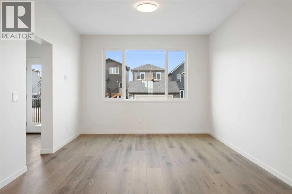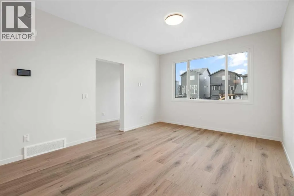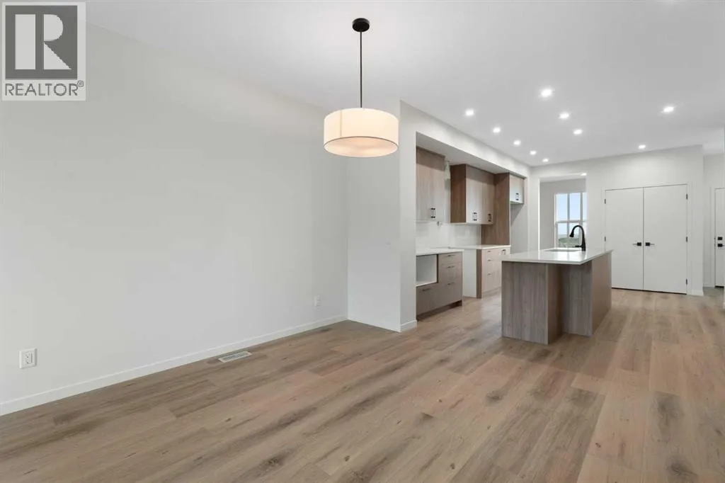 Welcome to Glacier Ridge where elevated design meets everyday comfort in this brand-new Cedarglen Homes semi-detached residence. This home is crafted for the rhythm of modern living - open, inviting, and effortlessly functional. Step inside and feel the flow immediately - a bright front foyer ushers you toward a sunlit flex room, ready to adapt to your lifestyle. Imagine a quiet home office for focused mornings or a cozy reading nook that soaks in the afternoon light. Beyond, the heart of the home unfolds - a stunning open-concept kitchen with a generous island, sleek quartz countertops, and rich walnut-style cabinetry that anchors the space in warmth and sophistication. Matte black finishes add a contemporary edge, while the seamless connection between kitchen, dining nook, and great room makes entertaining a joy. Whether itâs a lively dinner with friends or a relaxed Sunday breakfast, this is where moments naturally gather. Off the great room, the mudroom offers both practicality and charm - with a convenient half bath and access to the rear deck, perfect for summer BBQs or evening unwinds. Beyond the deck, youâll find a parking pad ready for your future garage - and a side entrance to the unfinished basement, a rare opportunity to customize or add a secondary suite down the line (subject to city approval and permitting). Upstairs, the thoughtful design continues. A central bonus room offers a casual retreat - movie nights, game days, or a play space that keeps the energy upstairs. The primary suite sits privately at the back, complete with a walk-in closet and a serene 4-piece ensuite where you can recharge in peace. Two additional bedrooms share a stylish full bath, while the conveniently placed laundry room keeps chores close at hand. Every detail here feels intuitive - designed to simplify daily life without sacrificing beauty. And the finishing touches? Luxury vinyl plank flooring on the main, quartz countertops throughout, LVT in baths and laundry, and a $4, 096 appliance allowance for your fridge and stove selection - ensuring the final look reflects your style. The microwave, range hood, and dishwasher are already chosen for you, and youâll receive a $1,000 landscaping rebate when you complete your outdoor oasis within a year of possession. This is more than a new home - itâs a fresh start in one of Calgaryâs most exciting new communities. Glacier Ridge offers the perfect blend of modern architecture, community connection, and natural beauty - all waiting to be experienced. Make it yours and start building your next chapter in Glacier Ridge today. *Some photos are virtually staged.* (id:27476)