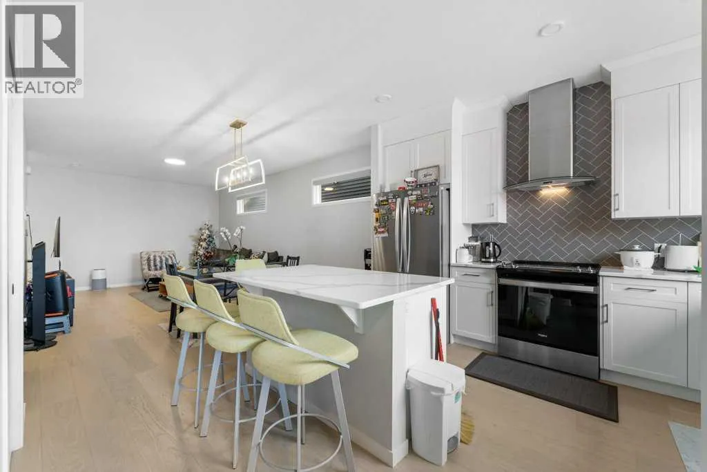 LEGAL BASEMENT SUITE! Amazing value and versatility in this beautifully finished duplex located in the highly sought-after, family-friendly community of Legacyâknown for its extensive pathway system, beautiful green spaces, schools, and convenient access to Macleod Trail and Stoney Trail. Offering a total of 2,645.09 sq. ft. of developed living space, a rare 4 bedroom above grade layout, a main-floor bedroom with a full bathroom, and a separate 2 bedroom legal basement suite, this home is a great opportunity for families or investors seeking dual streams of income. The main floor features an inviting open-concept design with a bright living area, a spacious dining room and a well-appointed kitchen complete with large windows, stainless steel appliances, quartz countertops, a central island, and abundant cabinetry, all finished in sleek white and a trendy tiled backsplash. A large main-floor bedroom paired with a full 4 piece bath creates ideal flexibility for guests, in-laws, home office needs, or aging family members. Upstairs, the second level offers a generous family/bonus room, upper laundry room, and 3 bedrooms. The primary suite features a walk-in closet and a private 4-piece ensuite, while the additional bedrooms share another full bathroom. Natural light, modern finishes, and functional layout make this floor perfect for growing families. The LEGAL 2-BEDROOM BASEMENT SUITE adds tremendous value, featuring its own kitchen, a bright rec/living area, full 4-piece bath, and 2 bedrooms. Outside, the home offers modern curb appeal, a covered front entry, and low-maintenance landscaping. All of this is located steps from parks, pathways, schools, and Legacyâs popular amenities. A rare opportunity to own a spacious, potential income-generating duplex with over 2,645 sq.ft. of living space in one of Calgaryâs most desirable master-planned communities. Book your showing today! (id:27476)