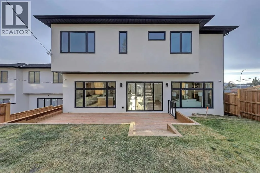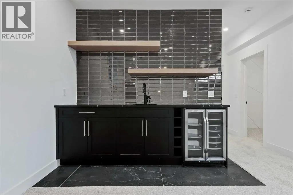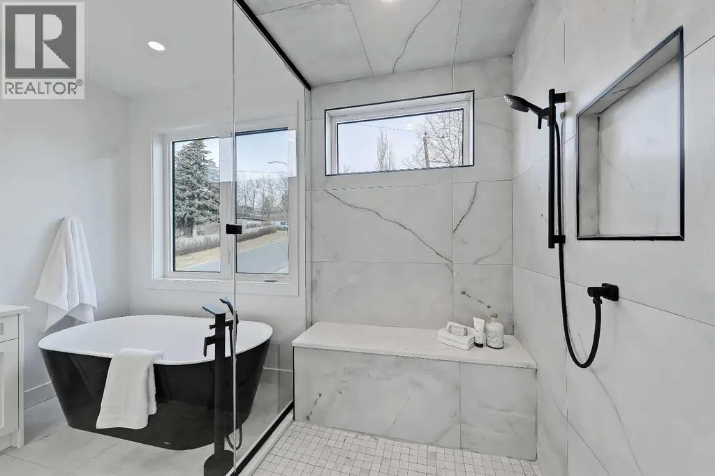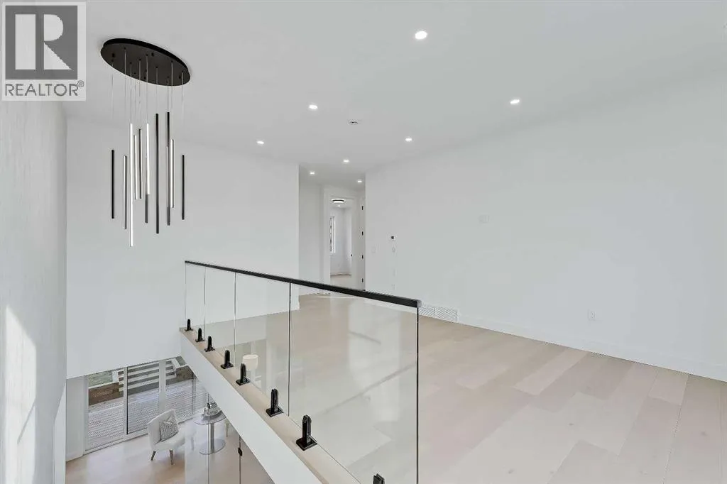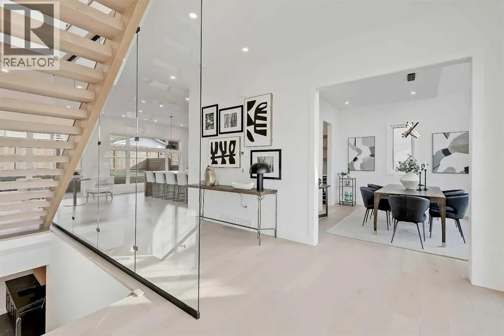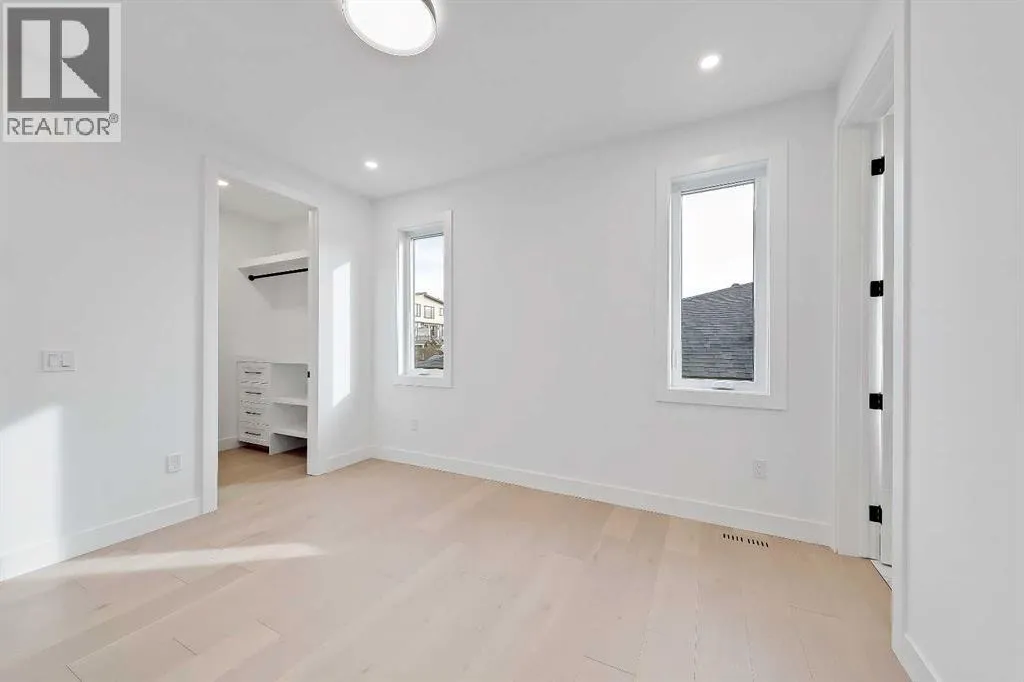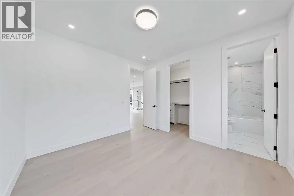 Perched high above the river valley in MONTGOMERY, this newly built estate home by NX HOMES blends bold architectural design with sweeping west-facing views and refined, contemporary comfort. Every detail has been thoughtfully curatedâfrom the striking arched windows that flood the interior with natural light to the custom oak staircase and the cohesive balance of texture, tone, and proportion that defines each space. This is a home that feels both commanding and sereneâa perfect match for its hillside setting just minutes from Market Mall, the University of Calgary, and the cityâs vibrant northwest core. Inside, soaring 10-foot ceilings and a gallery-style foyer set the tone for whatâs to come. The main level is anchored by a CHEFâS KITCHEN designed for gathering and performance, featuring waterfall-edge stone counters, high-end stainless steel appliances, and a large central island with seating for casual conversation. The BUTLERâS PANTRY offers extended prep and storage space, while the open-concept layout connects seamlessly to the dining area and a sunlit great room warmed by a modern gas fireplace. Oversized west windows frame mountain views, and double doors extend the living space outdoors to a generous upper deckâperfect for summer evenings and golden-hour sunsets. A front office, stylish powder room, and discreet storage complete this level with purpose and grace. Upstairs, three BEDROOMS WITH IN-FLOOR HEATED ENSUITES create private retreats for family and guests alike. The PRIMARY SUITE captures the west horizon with expansive windows and vaulted ceilings, a custom walk-in closet with built-ins, and a SPA-INSPIRED ENSUITE featuring a freestanding soaker tub, dual vanities, and an oversized glass-enclosed shower. A front-facing BONUS ROOM provides additional flexibility for a reading nook or play space, while the full-size LAUNDRY ROOM with sink keeps the upper level as functional as it is refined. The FULLY FINISHED WALK-OUT BASEMENT extends the homeâs li ving and entertaining potential. Here, a sleek WET BAR opens to a spacious recreation and movie areaâan ideal backdrop for game nights and gatherings. Thereâs also a fourth bedroom with a nearby full bath, a dedicated MUDROOM WITH BUILT-INS, and a rough-in for IN-FLOOR HEATING to keep every corner warm through Calgaryâs winters. Every element of this property reflects craftsmanship and quality, from the ENERGY-EFFICIENT SYSTEMS and superior insulation to the TRIPLE ATTACHED GARAGE with R/I for gas heater and the low-maintenance landscaped exterior. Outdoor lighting highlights the homeâs modern architecture, while the tiered front approach and private rear yard enhance curb appeal and usability. In a community prized for its views, parks, and proximity to downtown, this home stands apartânot just for its design, but for how it lives. Elegant yet welcoming, contemporary yet timeless, itâs the rare opportunity to own a truly ONE-OF-A-KIND CUSTOM BUILD IN MONTGOMERY. (id:27476)